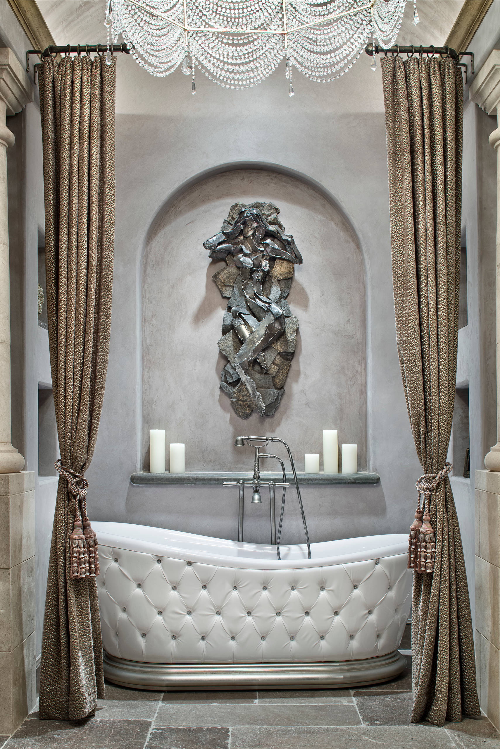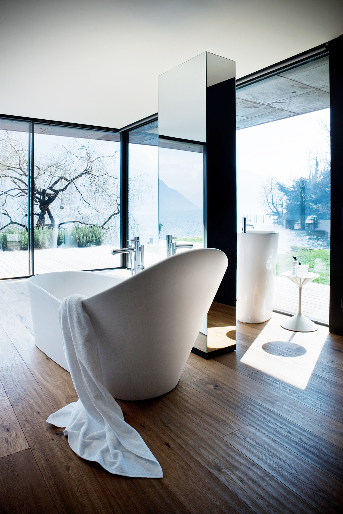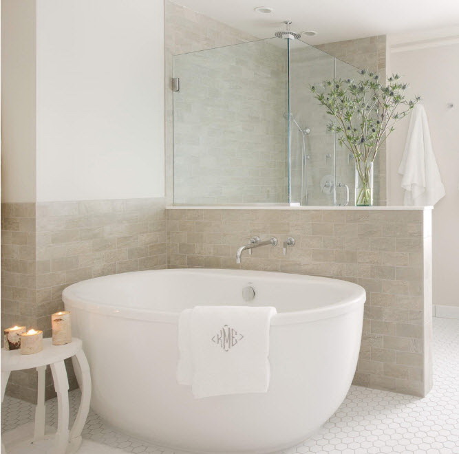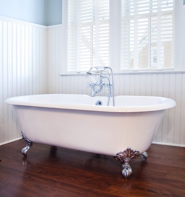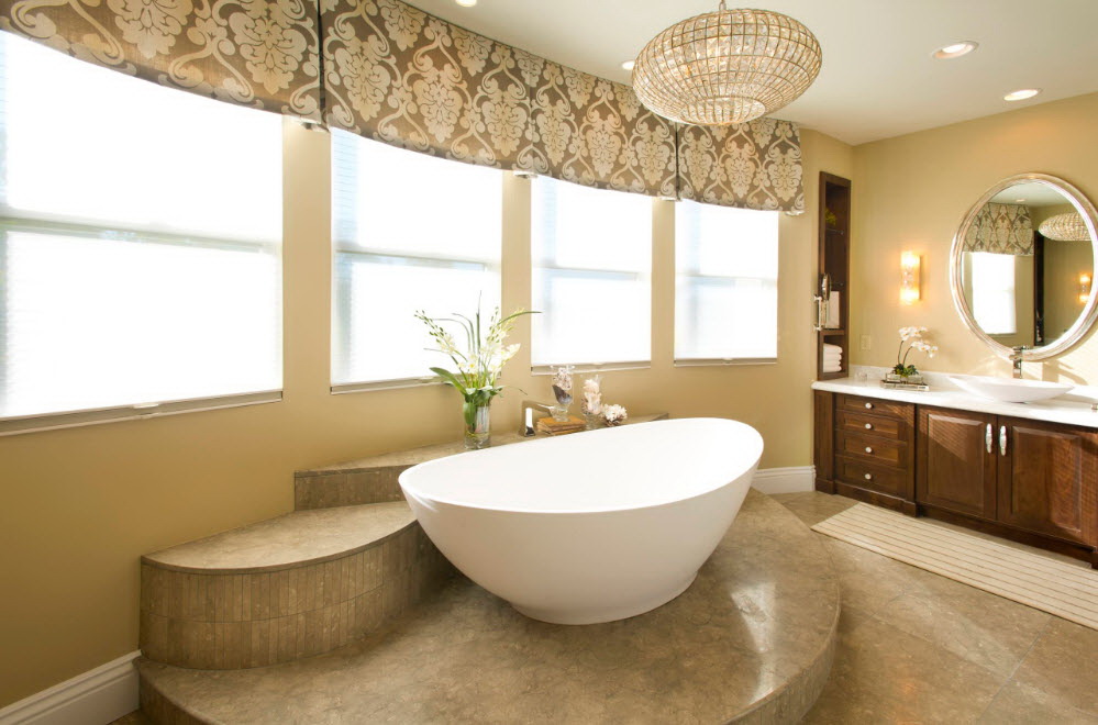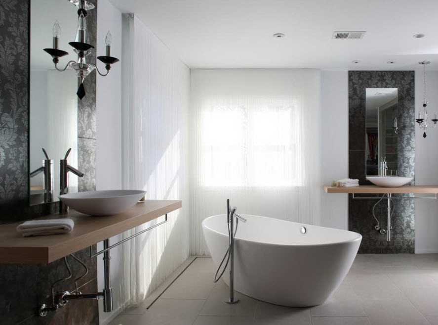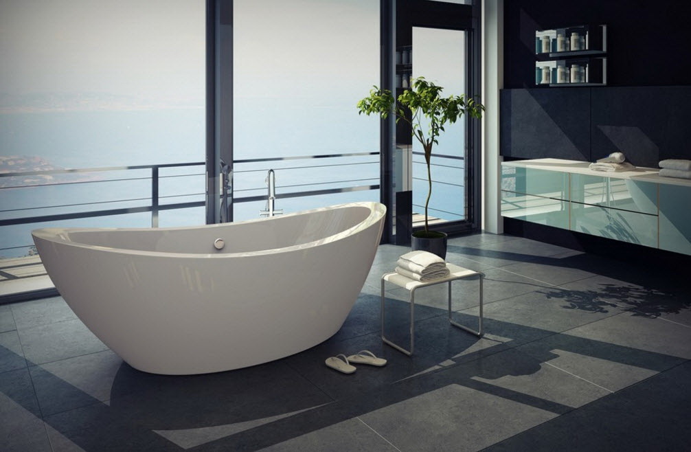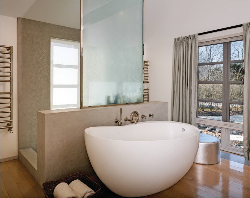 Curiosamente, o lado longo pode ser uma linha reta clássica e um semicírculo curvo, o que dá ao banho uma espécie de charme.