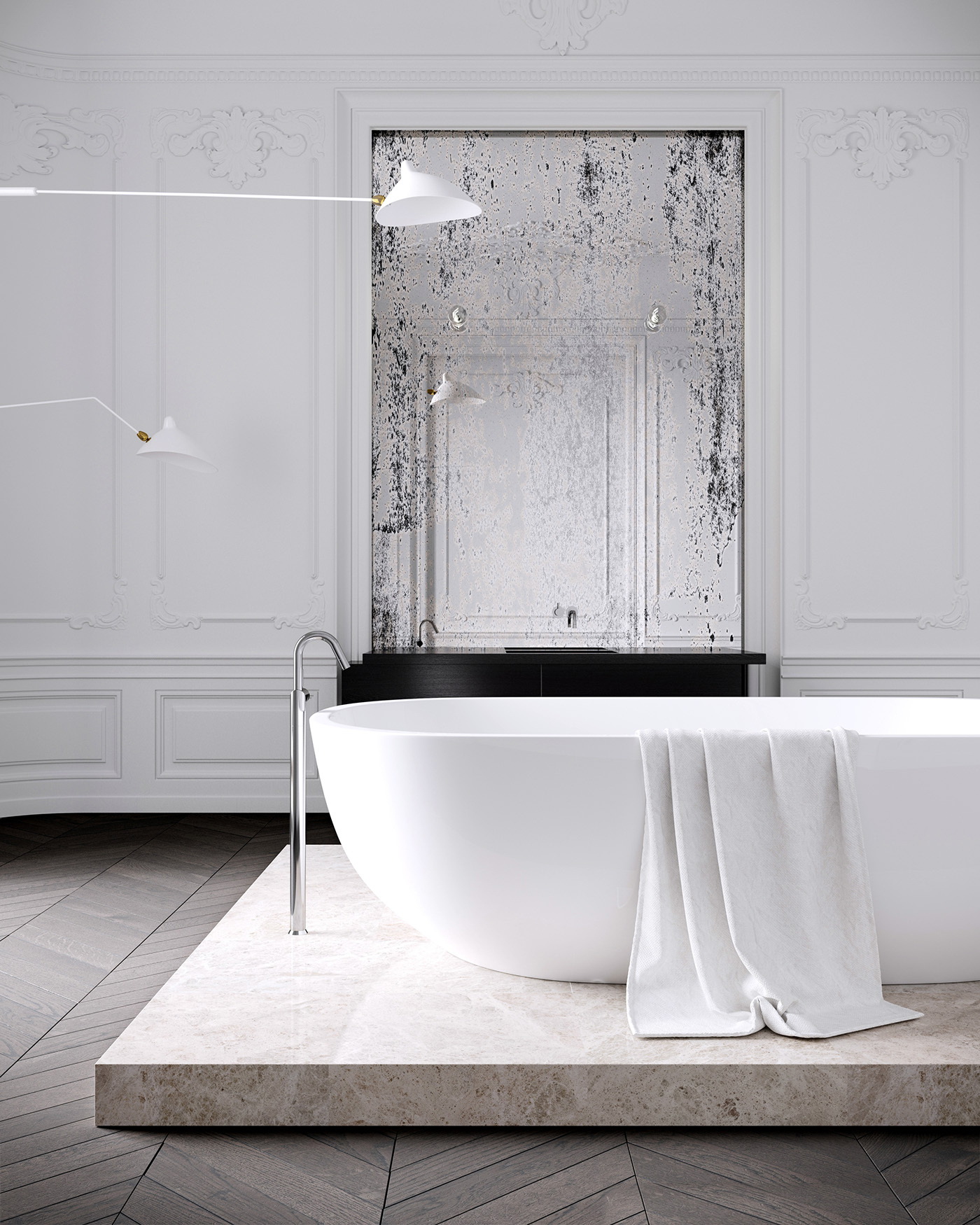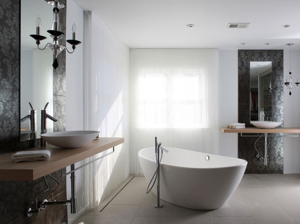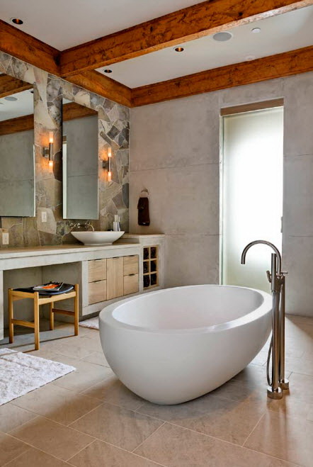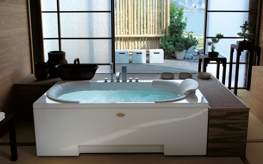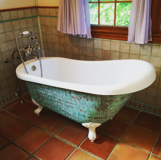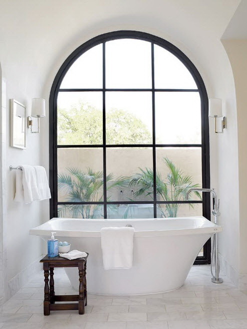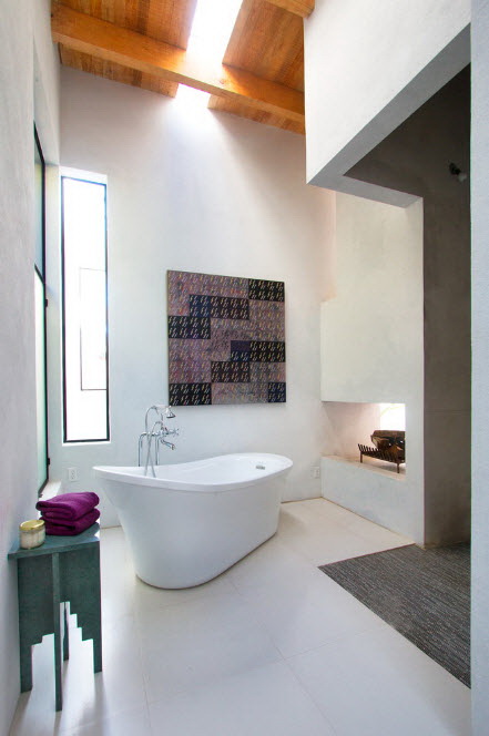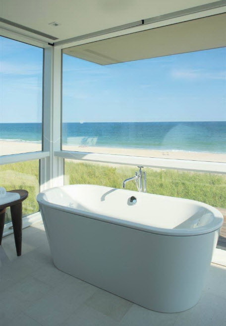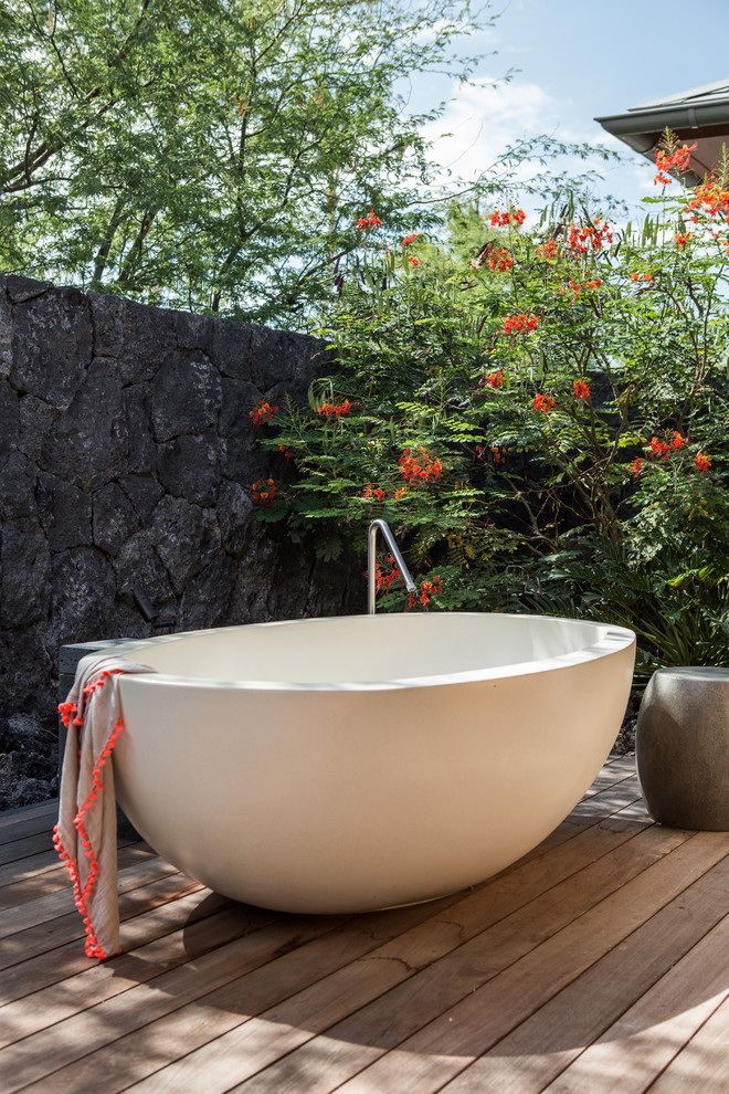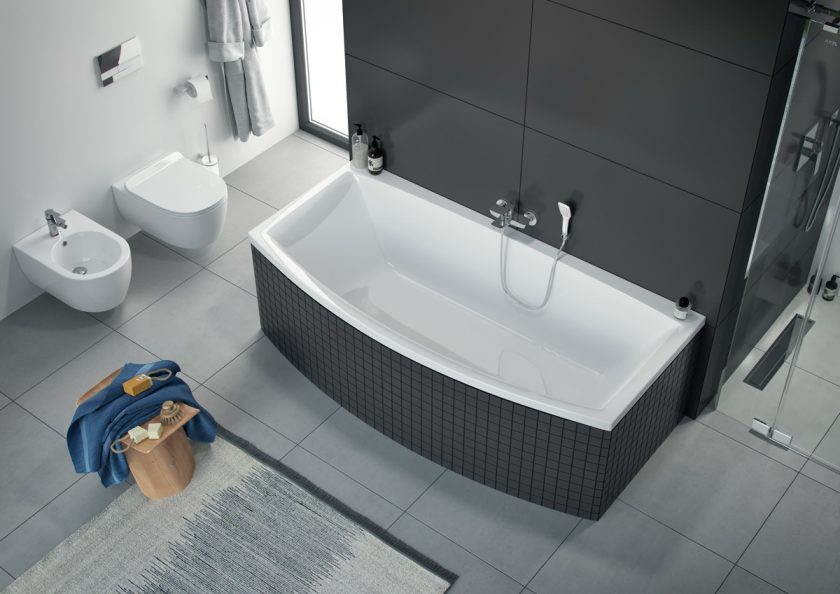 Curiosamente, o lado longo pode ser uma linha reta clássica e um semicírculo curvo, o que dá ao banho uma espécie de charme.
