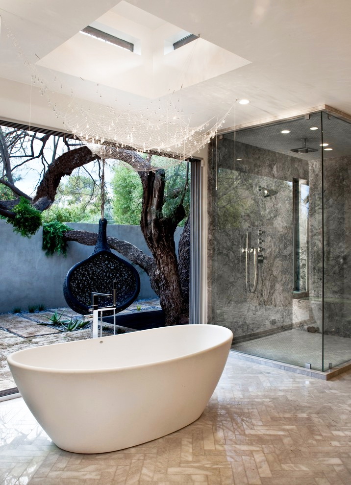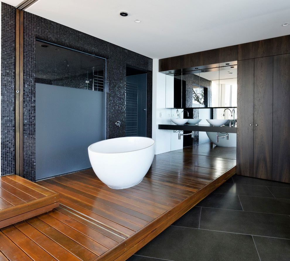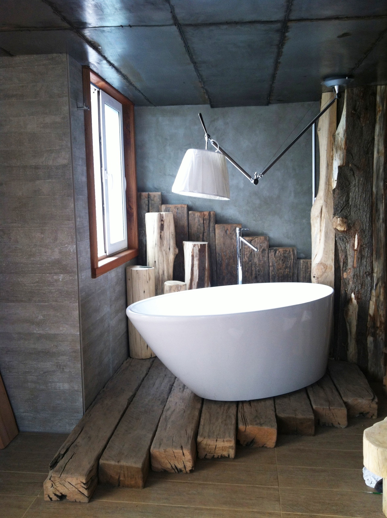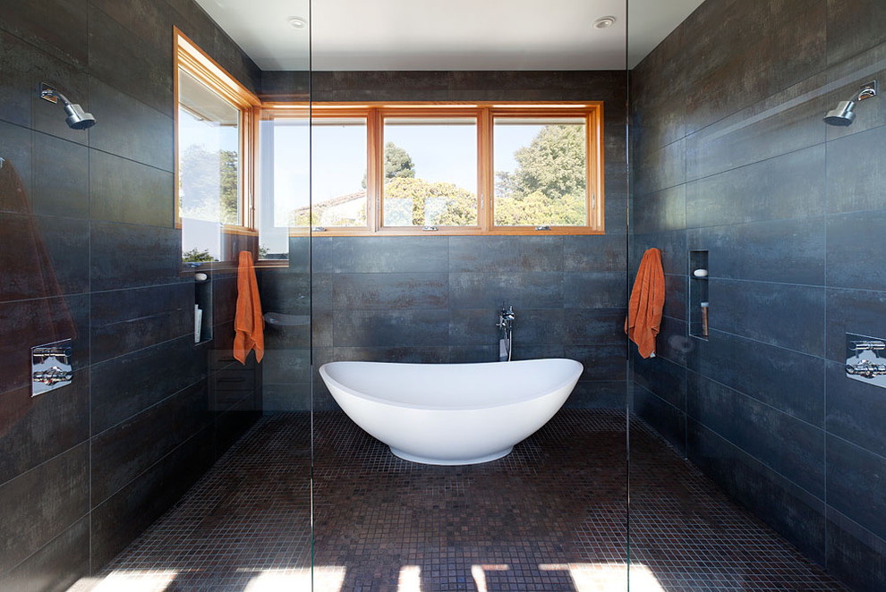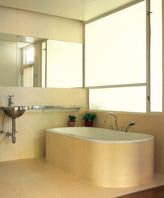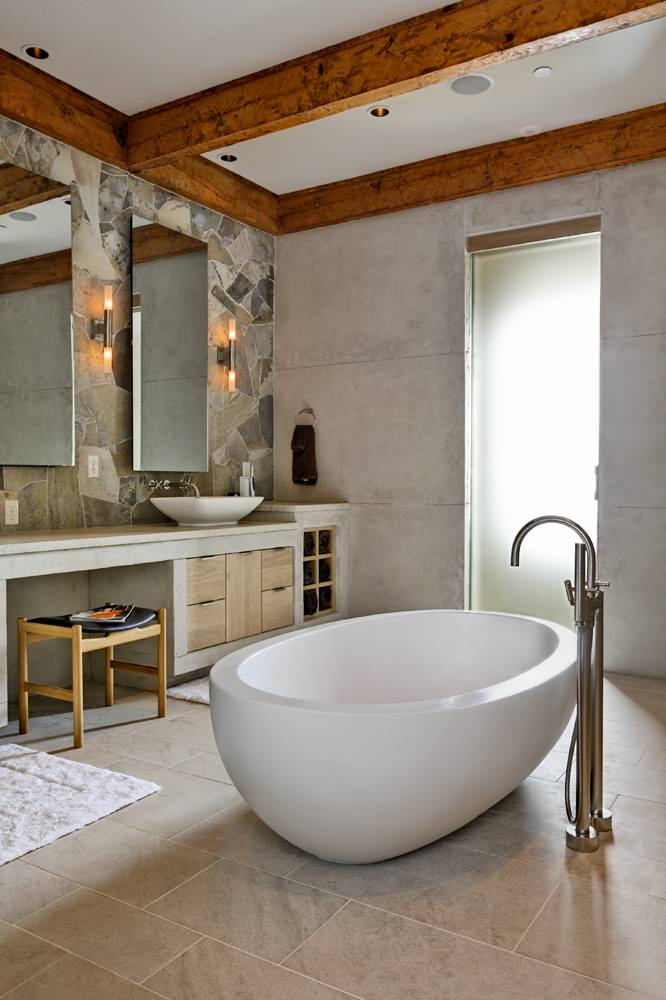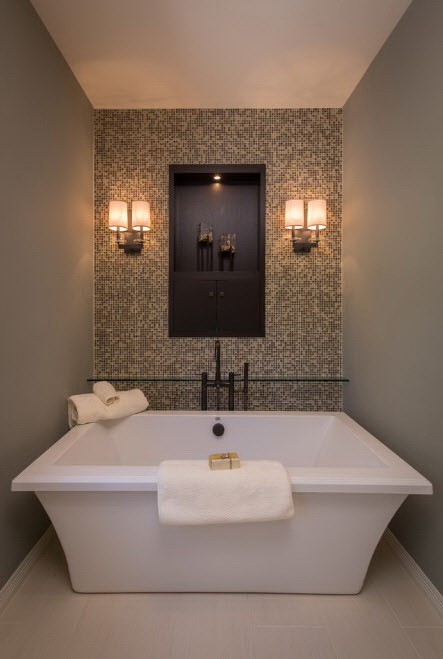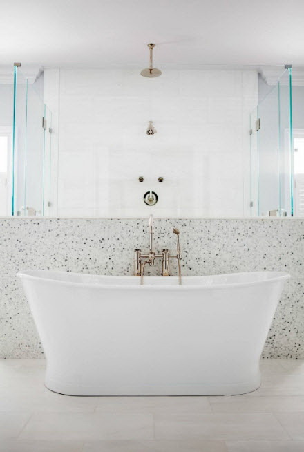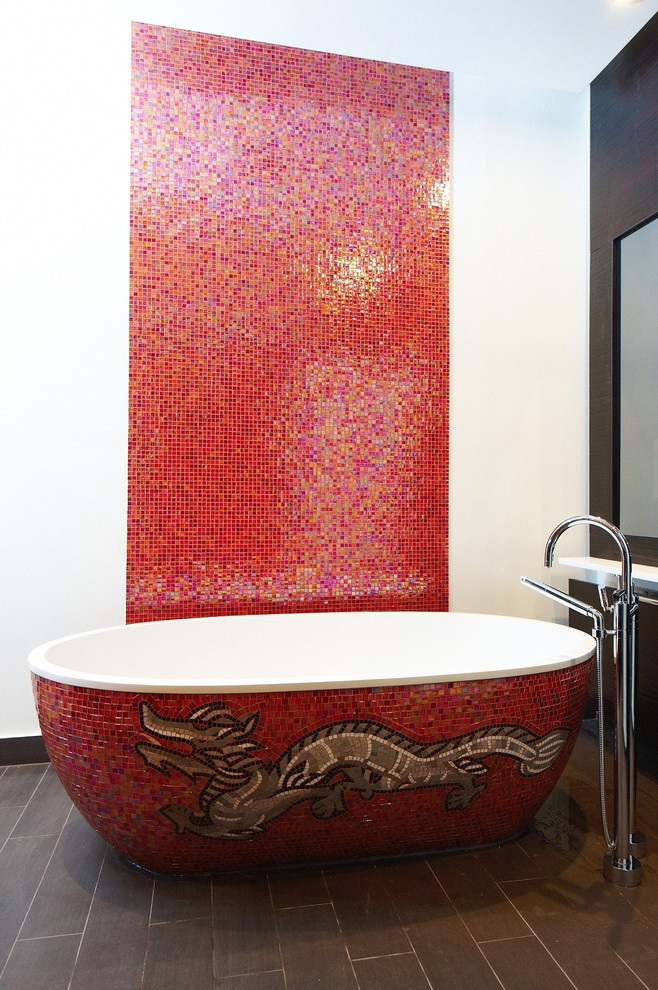Curiosamente, o lado longo pode ser uma linha reta clássica e um semicírculo curvo, o que dá ao banho uma espécie de charme.