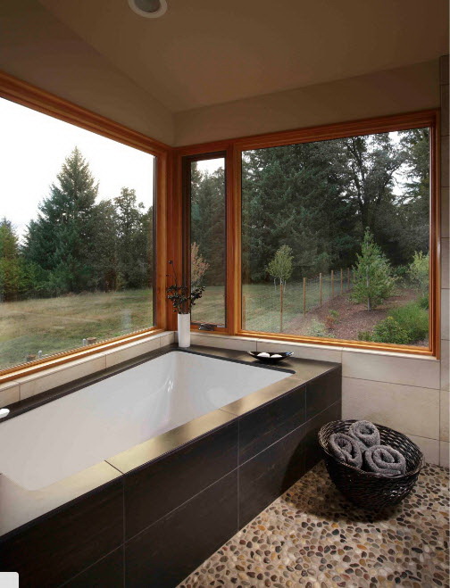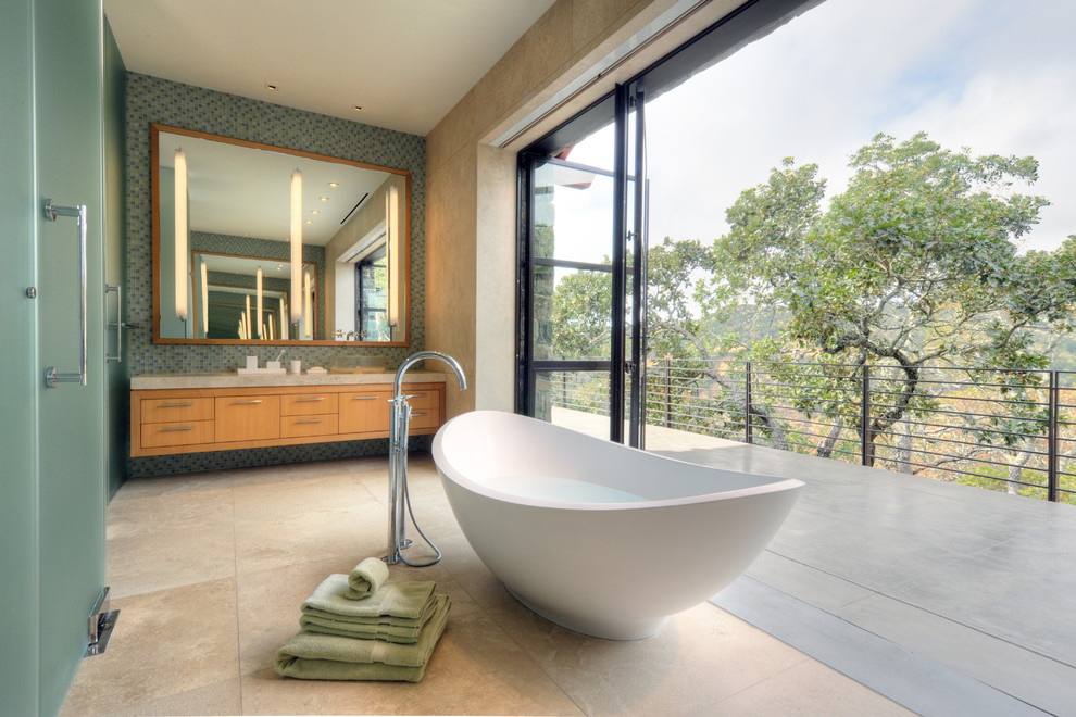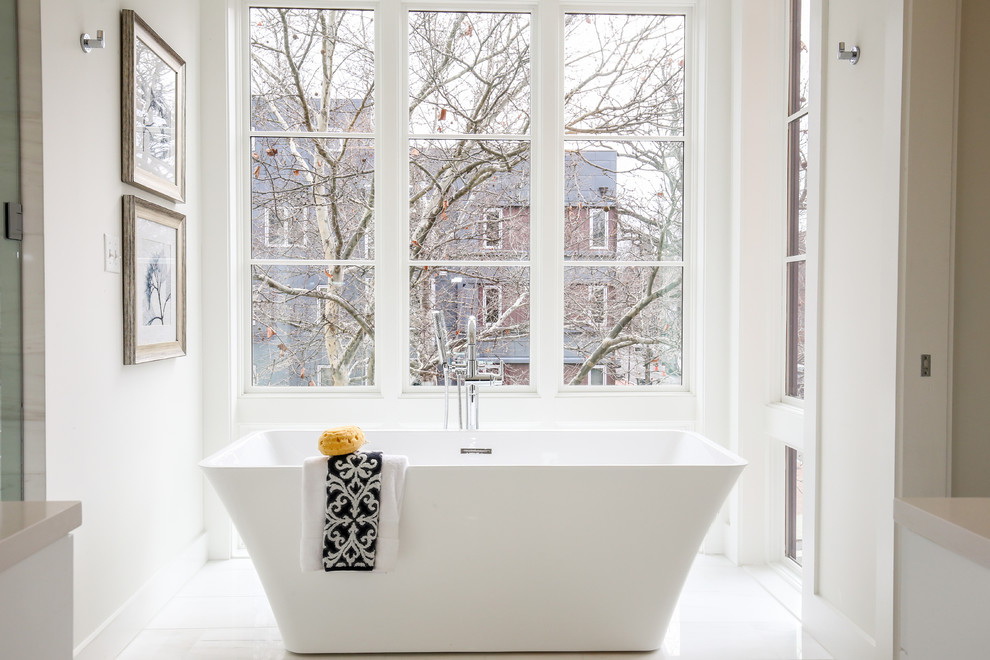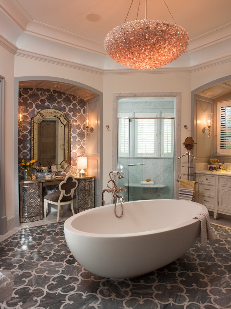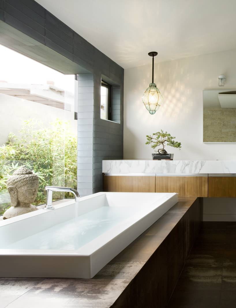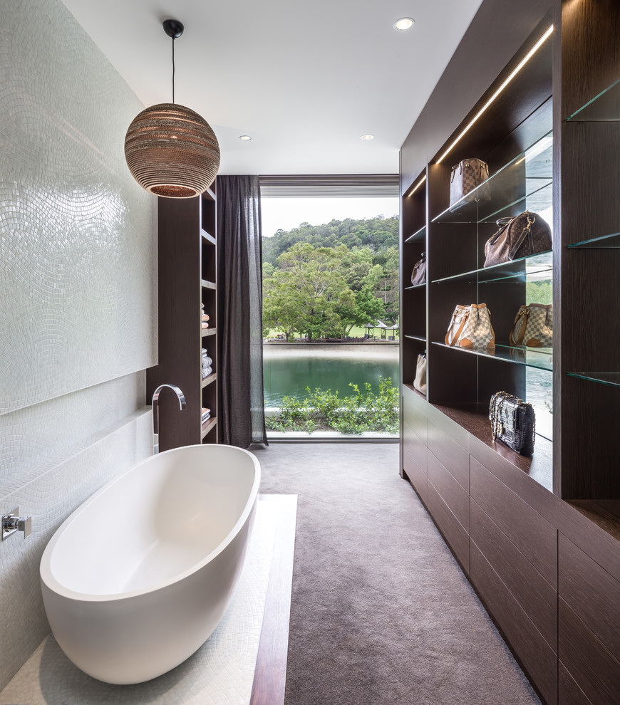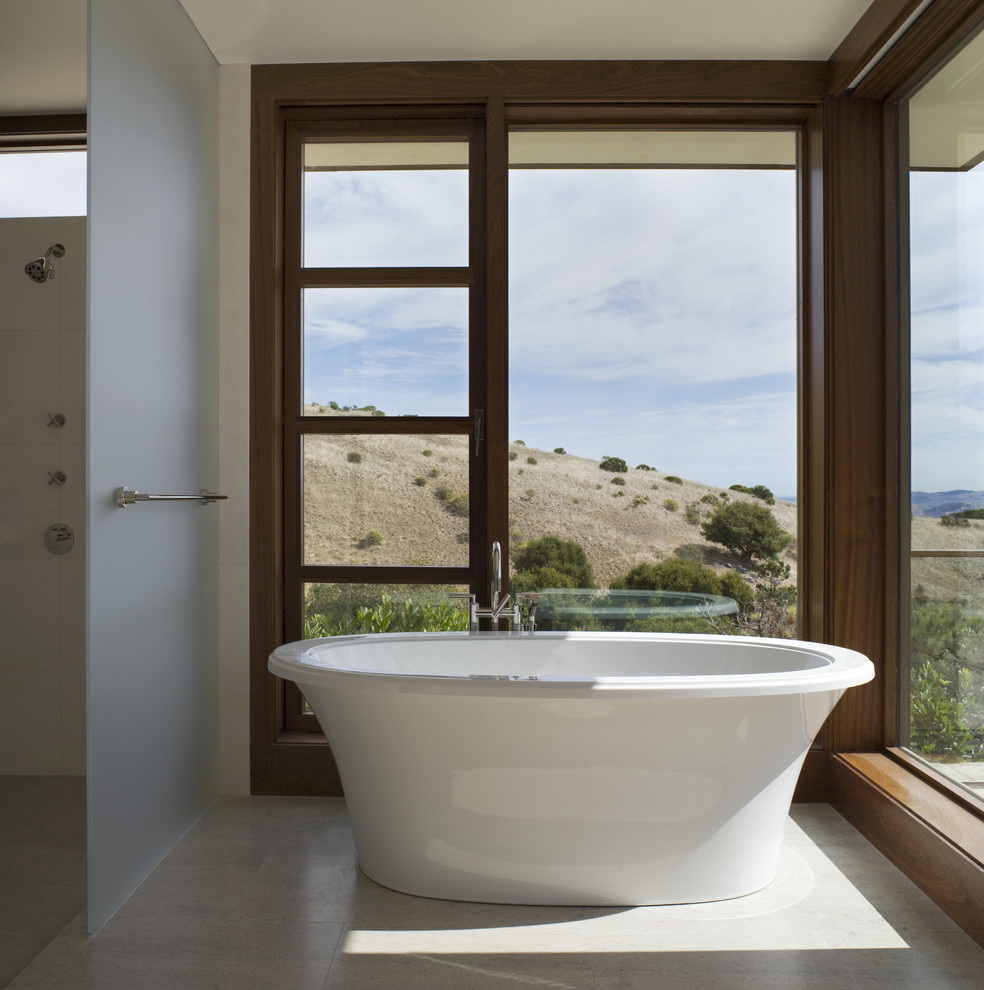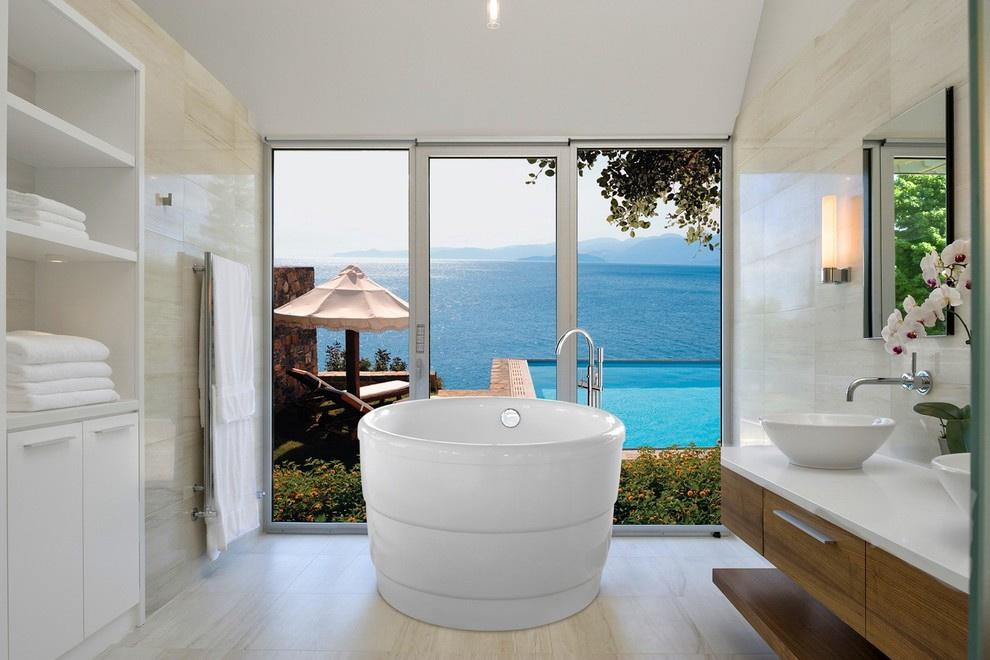 Curiosamente, o lado longo pode ser uma linha reta clássica e um semicírculo curvo, o que dá ao banho uma espécie de charme.