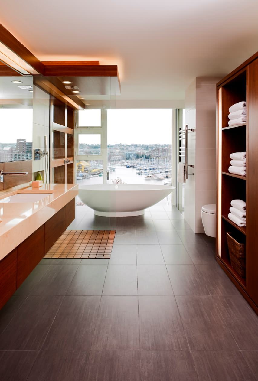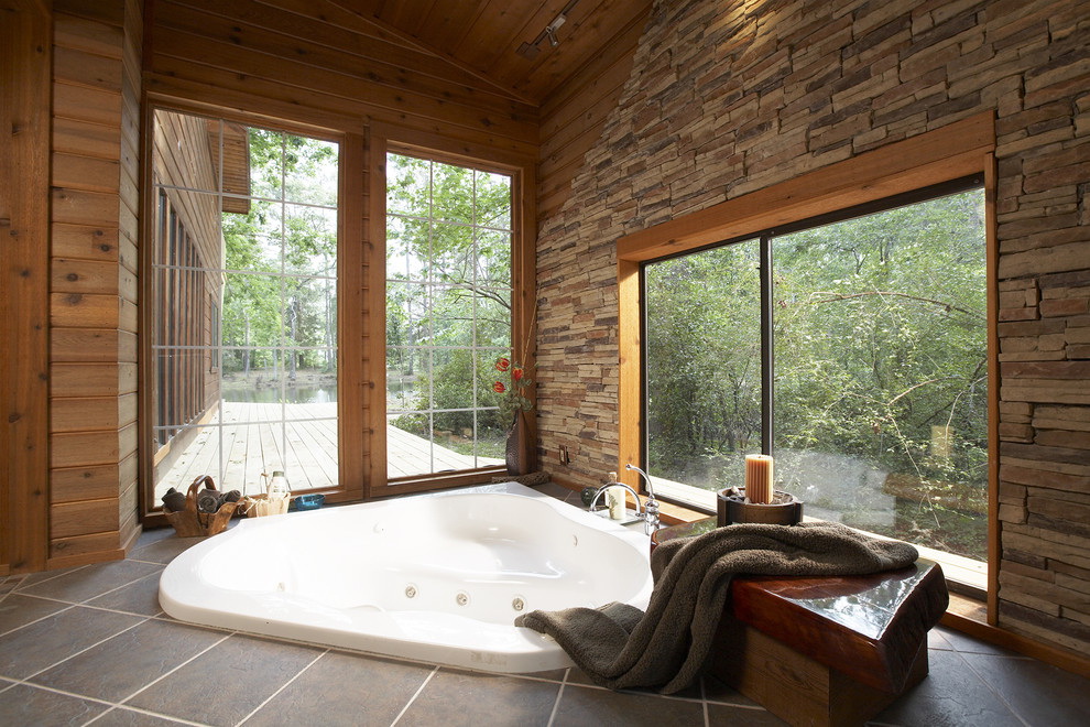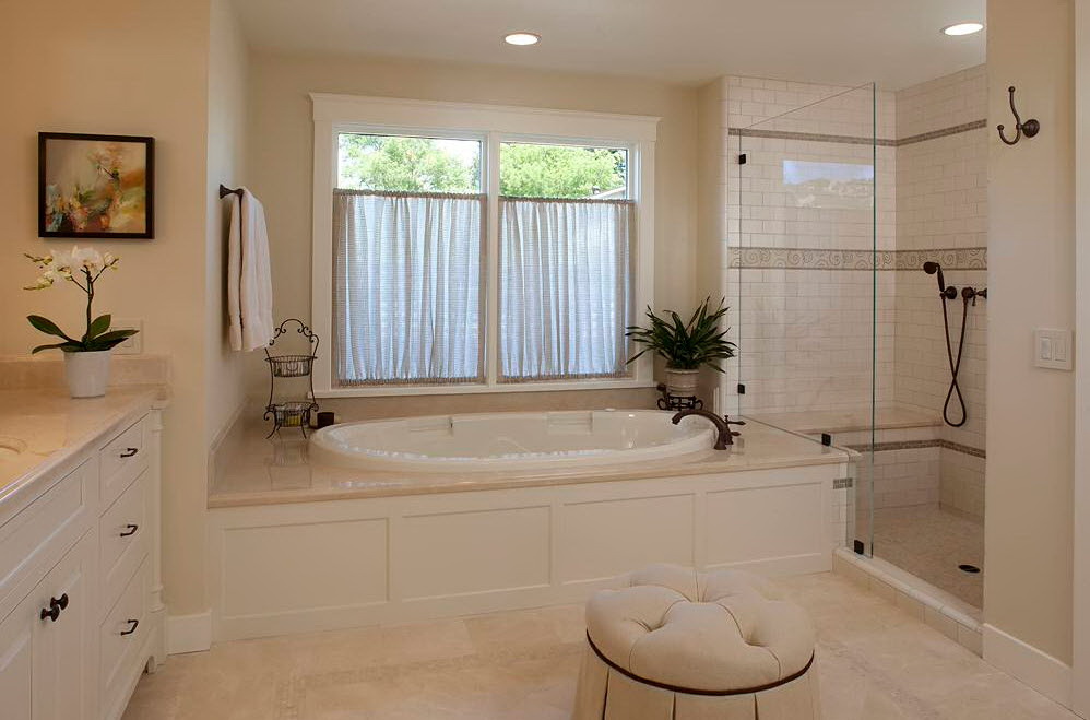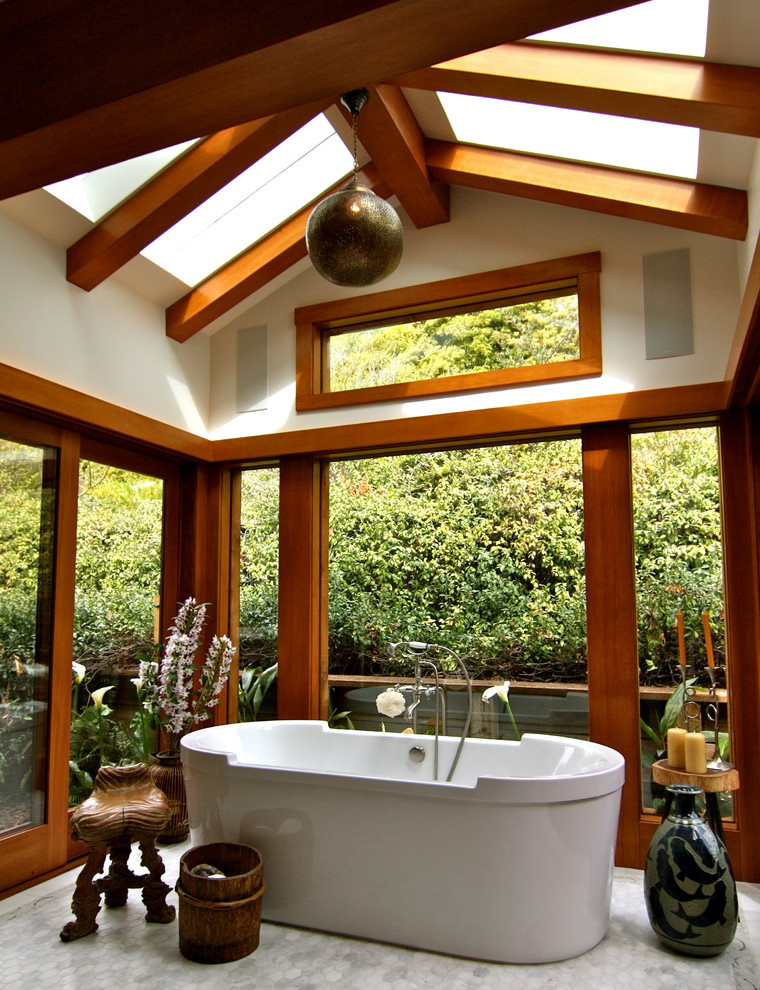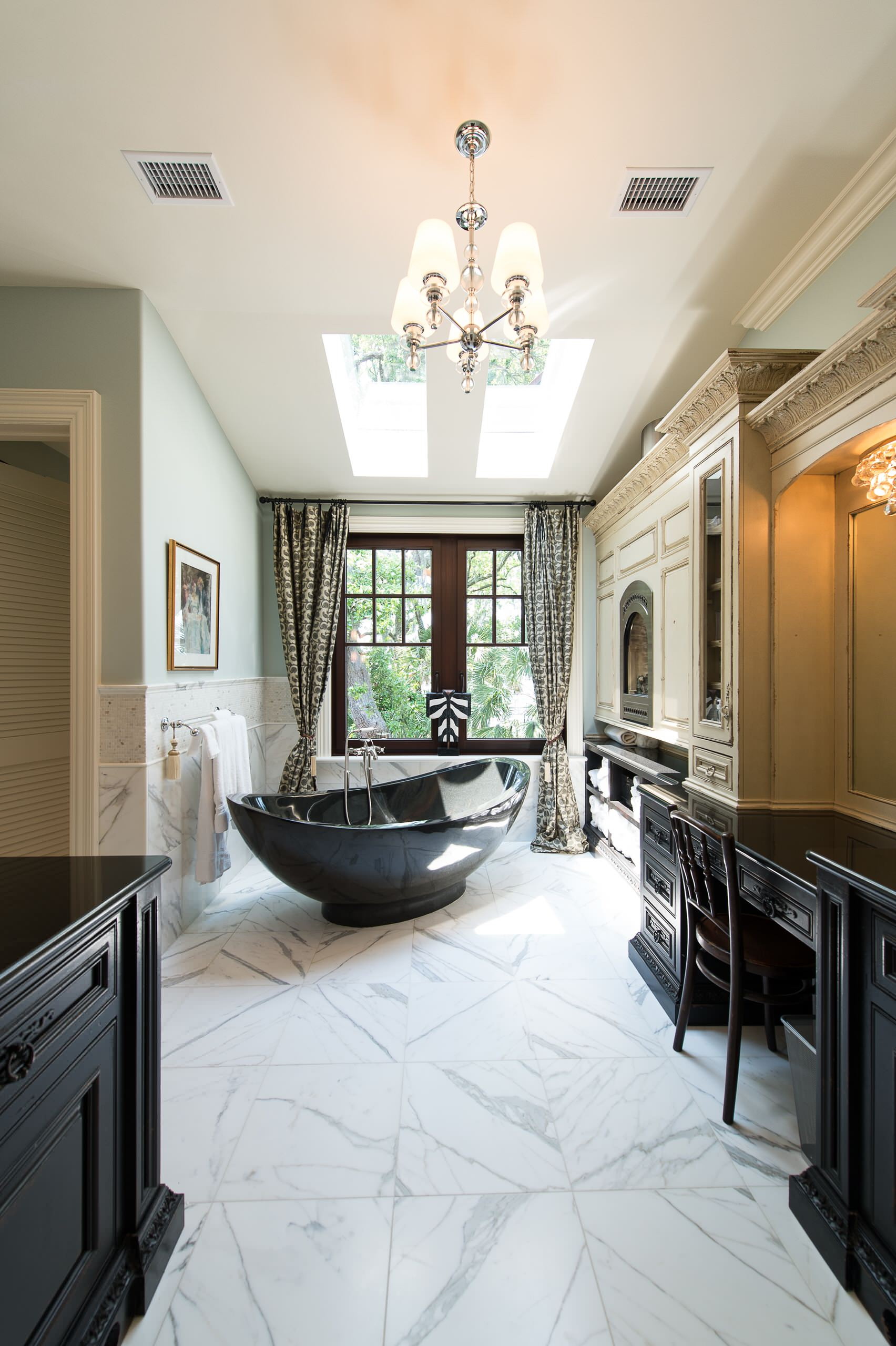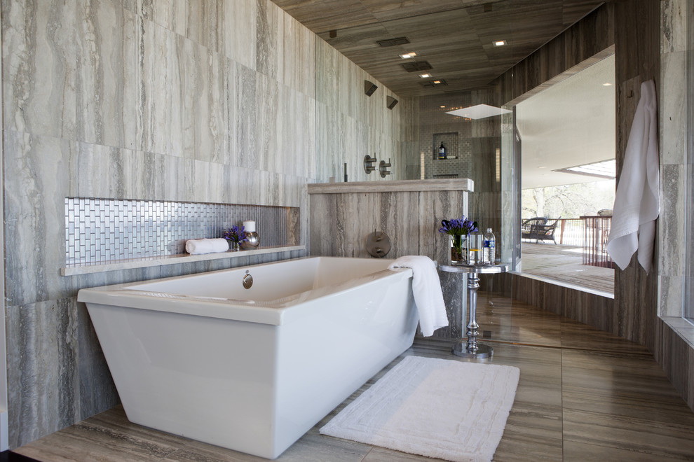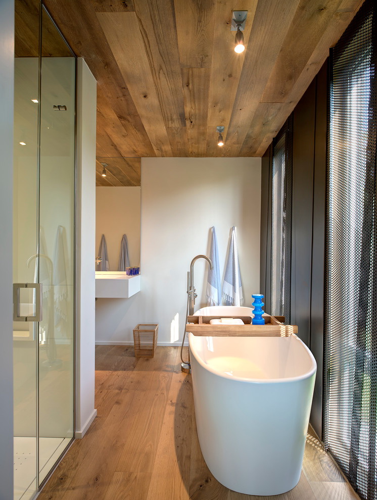 Curiosamente, o lado longo pode ser uma linha reta clássica e um semicírculo curvo, o que dá ao banho uma espécie de charme.