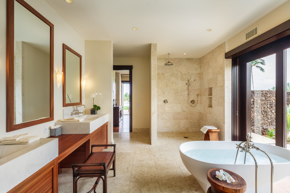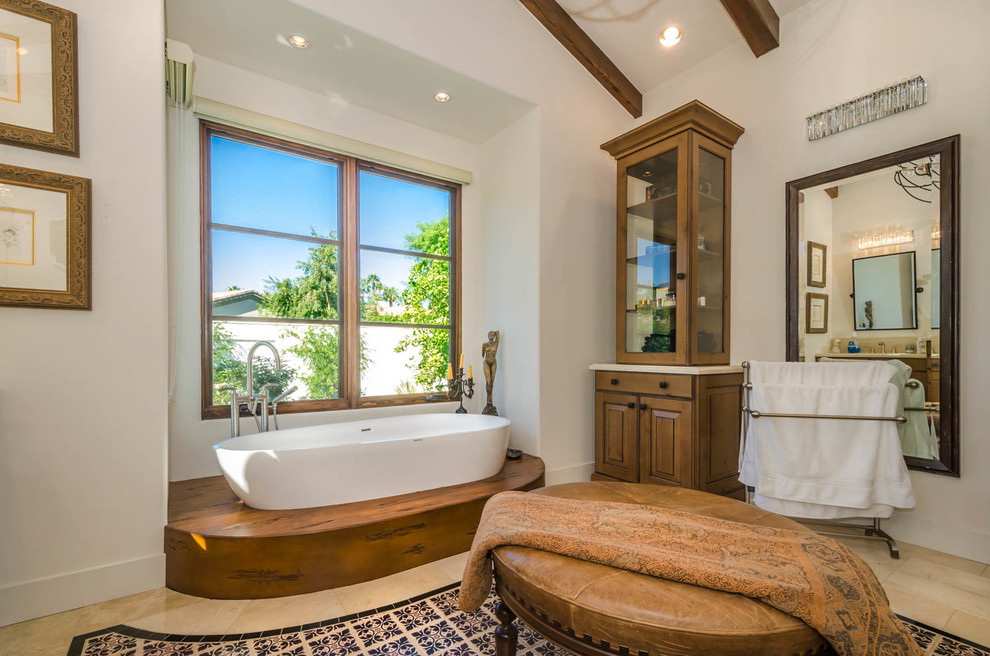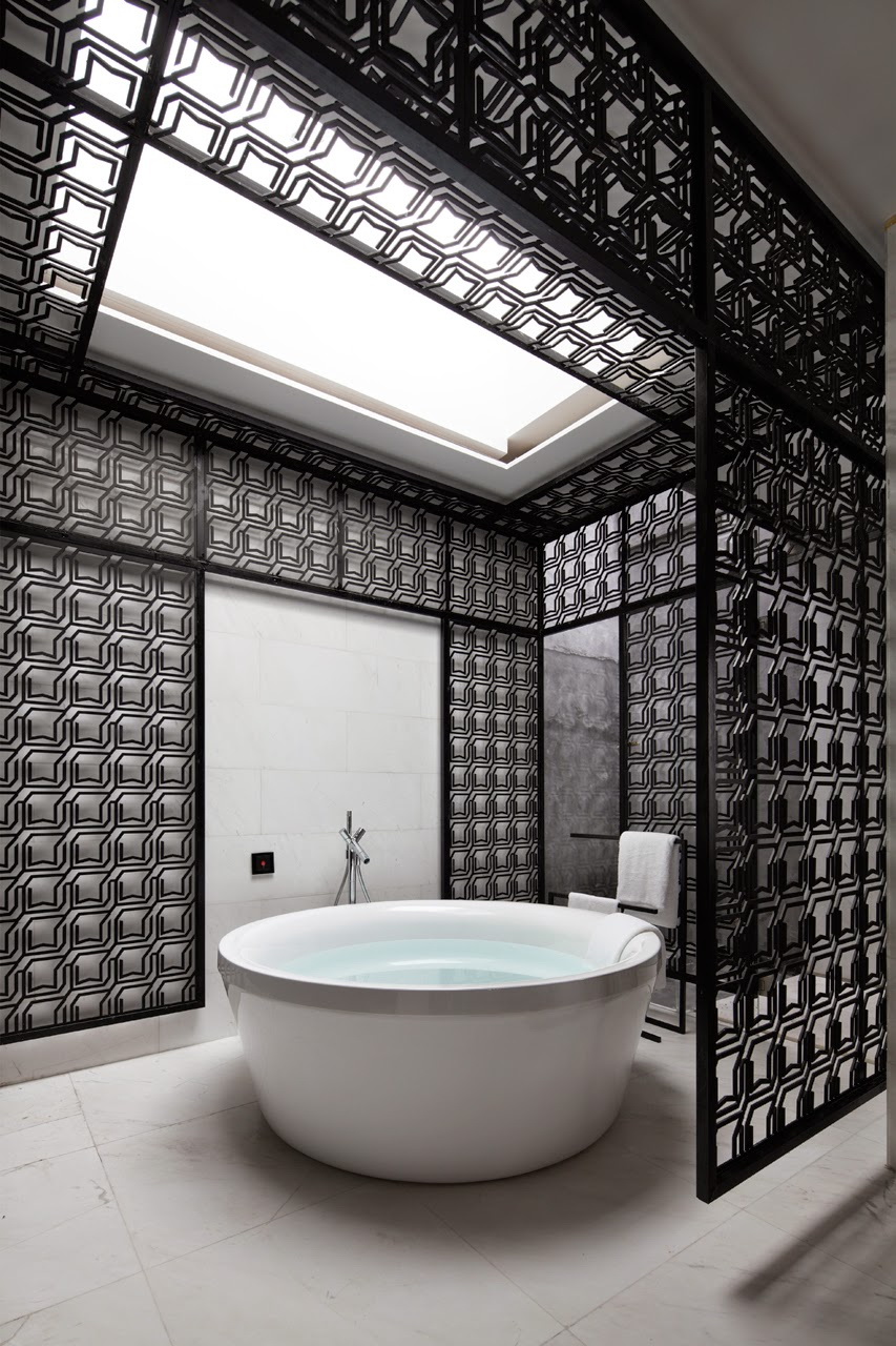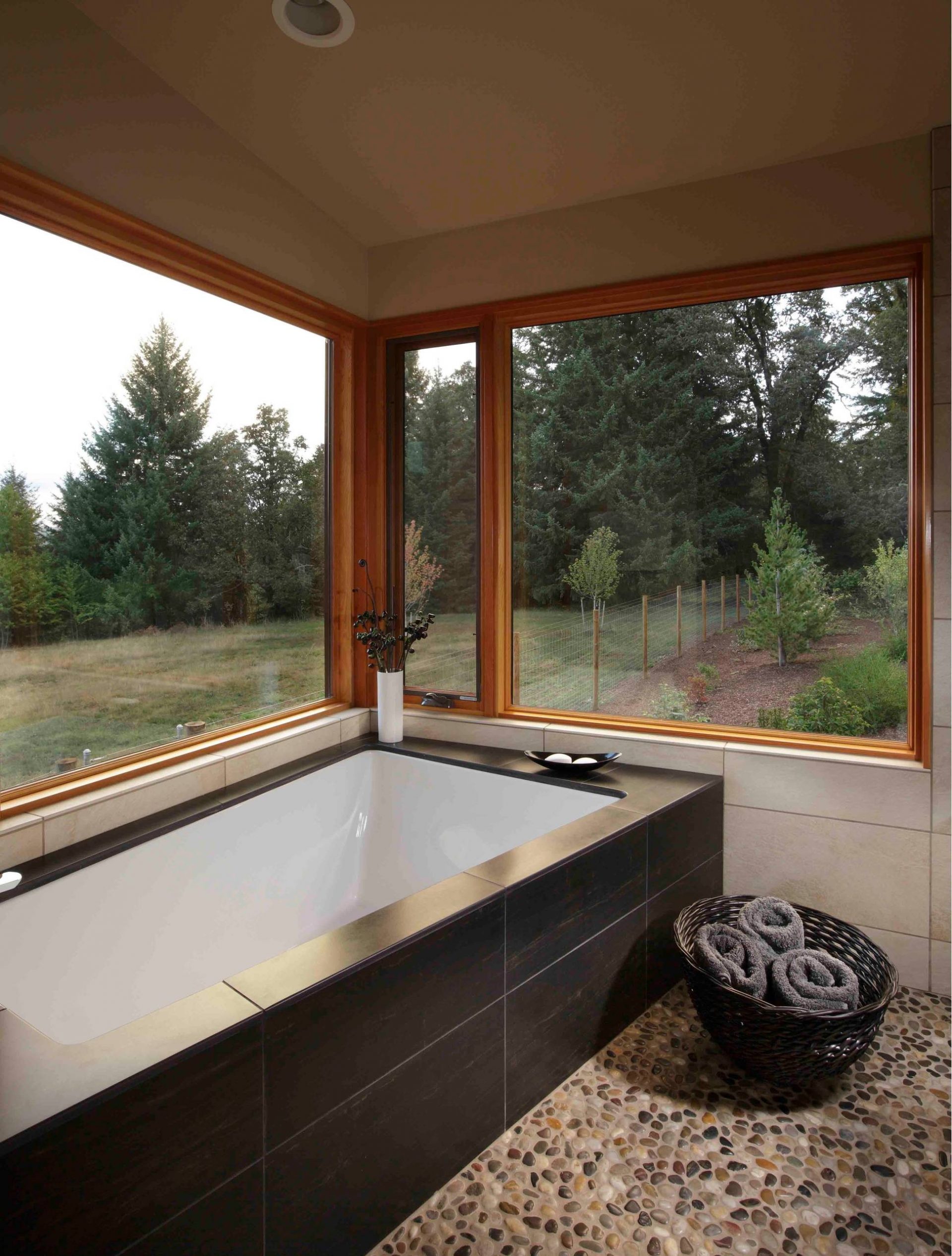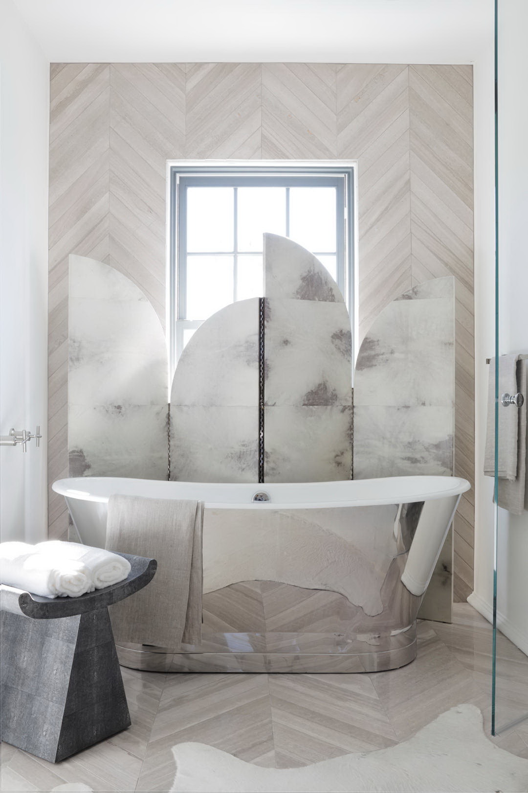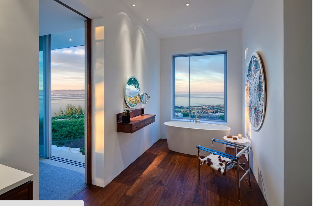 Curiosamente, o lado longo pode ser uma linha reta clássica e um semicírculo curvo, o que dá ao banho uma espécie de charme.