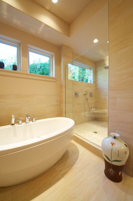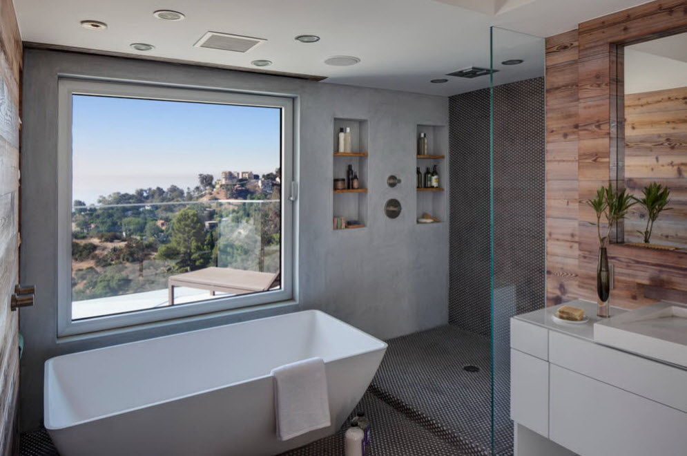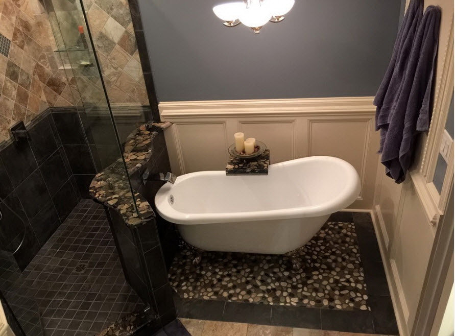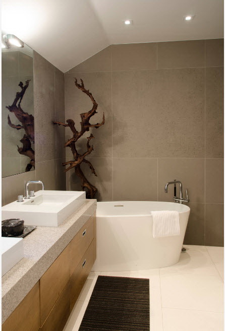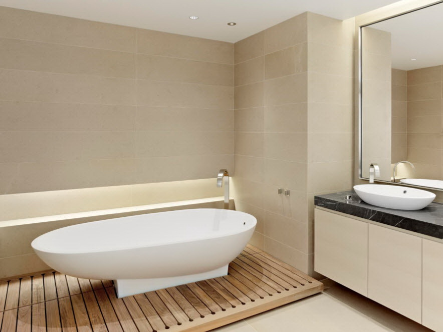 - Contraste. A solução que dá brilho à sala, unidade. O banho se destaca dramaticamente no centro das atenções, tornando o interior mais pronunciado e interessante. É muito importante, no entanto, escolher a cor para que ela se encaixe perfeitamente, e para isso use as tabelas de contraste da Internet.
