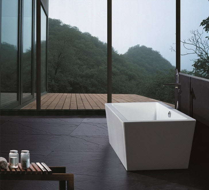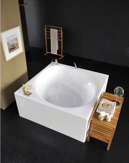 - Square. A variedade é retangular, mas parece completamente diferente. Original, elegante, parece interessante e incomum. Em tal banho (especialmente se você comprar com uma função de jacuzzi) você pode passar suas noites com sua amada.