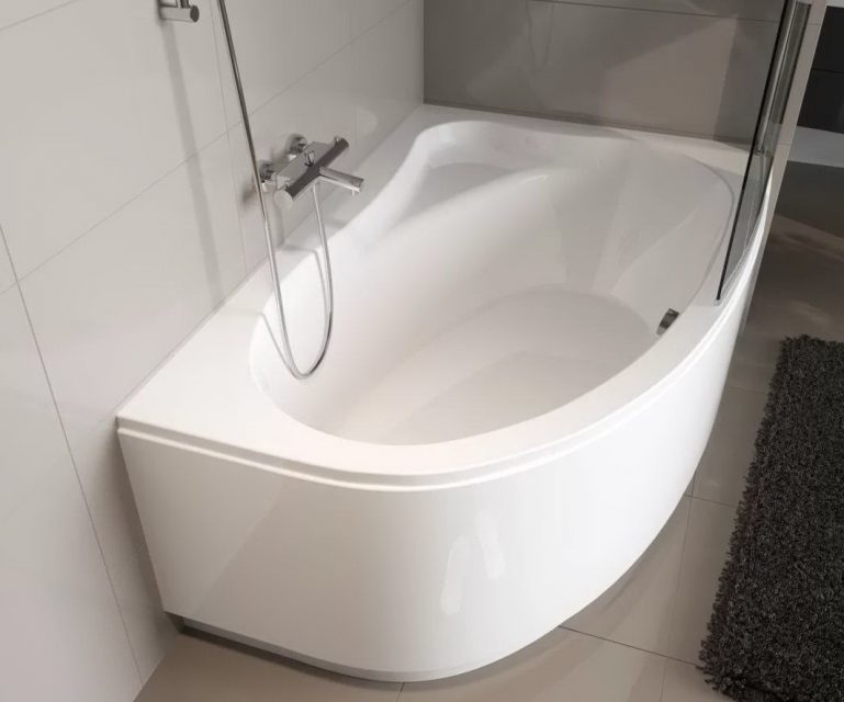 Os banhos de ferro fundido são sempre retangulares - isso é estabelecido por materiais e, em princípio, não muda. Mas com acrílicos tudo é muito mais interessante - eles podem ter qualquer forma, depende apenas do orçamento e da imaginação.