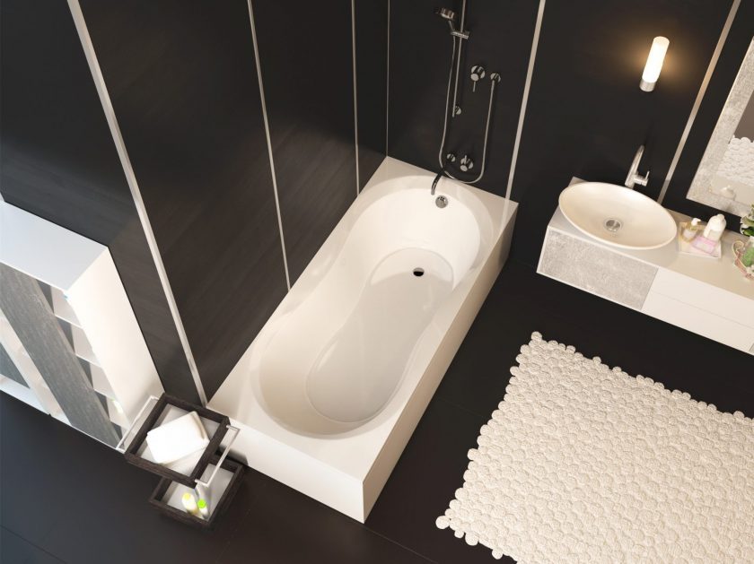 - Comprimento. Não há comprimento de banho padrão - tudo é muito individual aqui, depende das preferências. Vinte metros é sedentário, você não pode deitar nele, mas sente-se confortavelmente sentado.Além disso, um tamanho tão pequeno faz sentido em um banheiro pequeno. Medidor cinquenta - posição reclinada. Medidor setenta - uma pessoa de estatura média já pode deitar-se, com a cabeça ao lado. Medidor oitenta - pode esticar a sua altura total.
