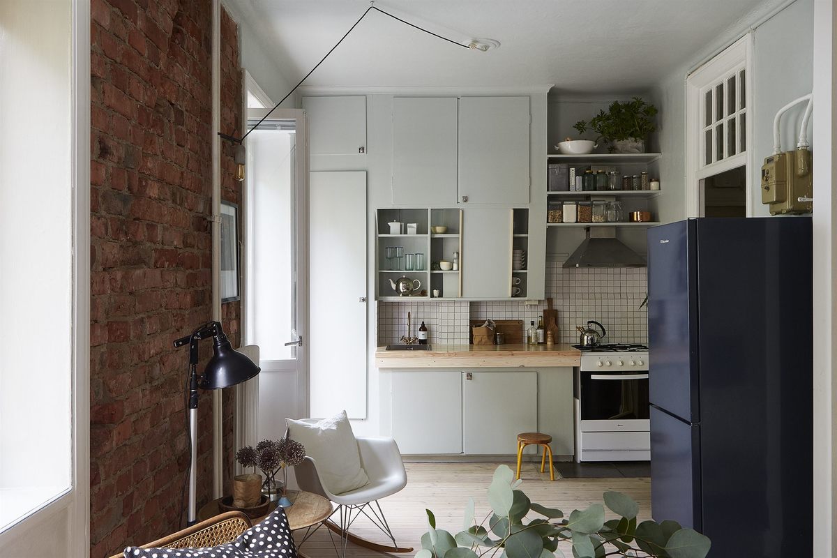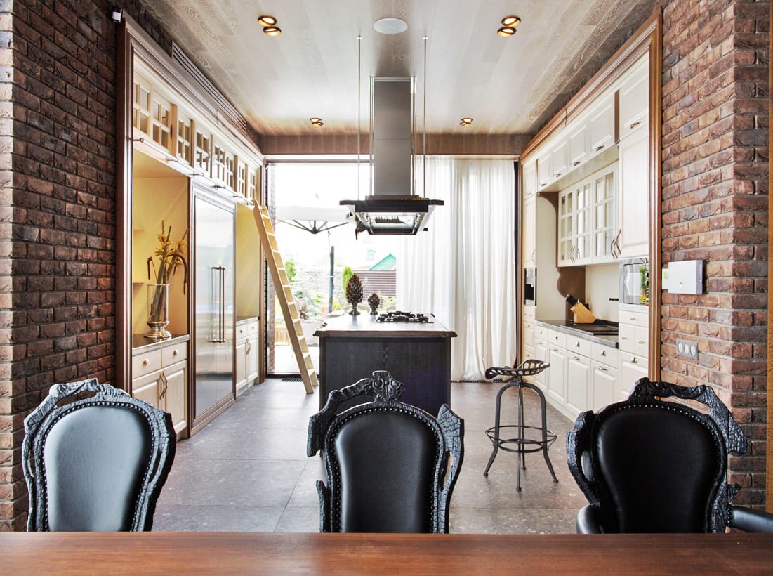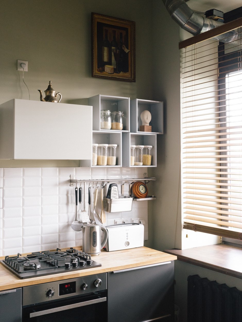 Na cozinha, os mezaninos podem ser usados para tais necessidades: