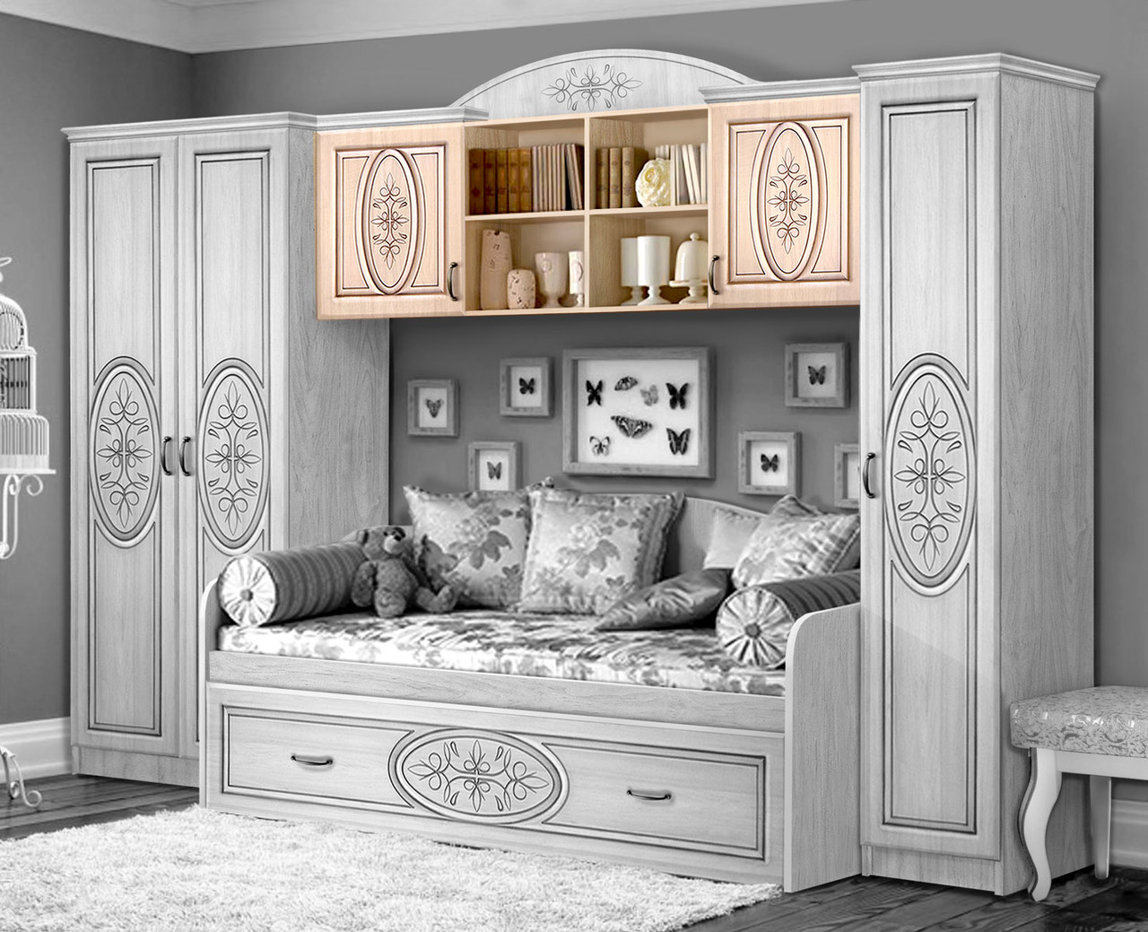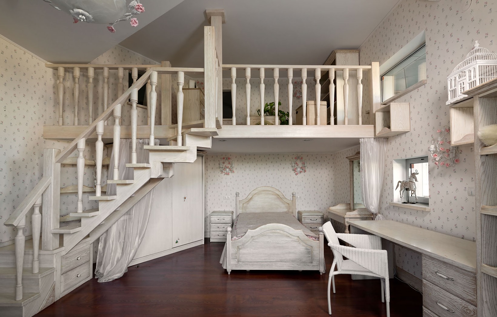 Mezanino organizado em segurança criança pode servir não apenas para armazenar coisas. Outra aplicação é a organização da cama de uma criança sob o teto. O design deve ser muito confiável e durável, com uma margem para suportar o peso da criança.