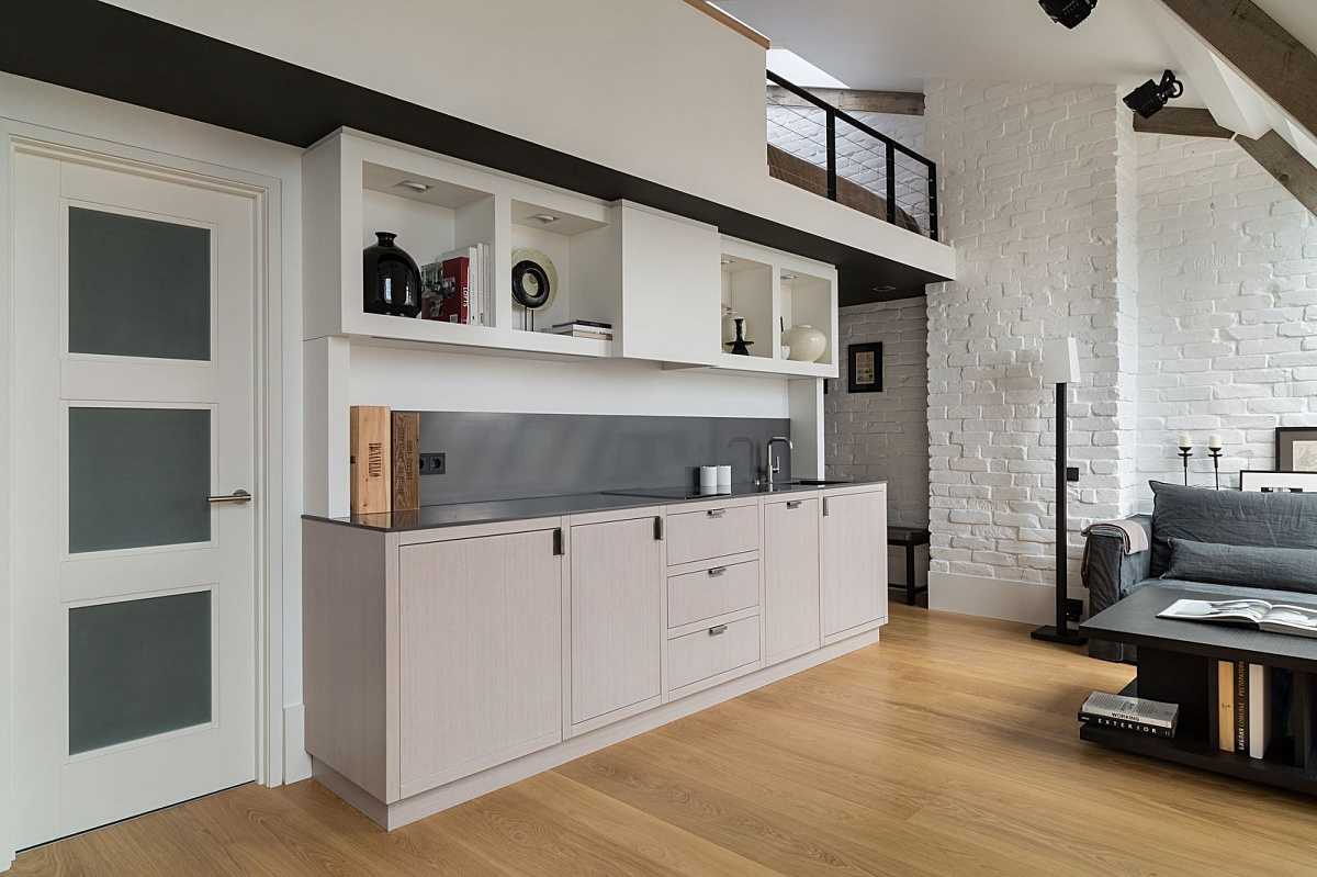 Para uma cozinha, especialmente uma pequena, o uso de espaço livre sob o teto é uma obrigação. A melhor opção é o mezanino, que forma uma única unidade com o fone de ouvido.