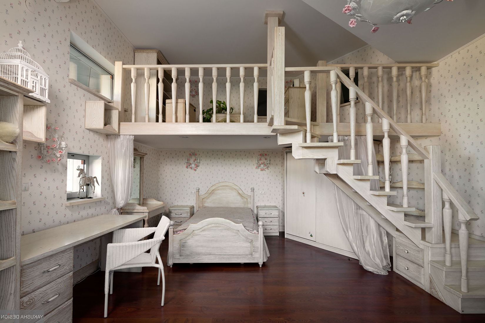 O mezanino tem poucas superfícies externas que precisam ser acabadas. E para construções abertas, o interior do espaço também é importante. No caso de instalar prateleiras adicionais acima do gabinete, a cor e o estilo da decoração devem estar o mais próximo possível do móvel.