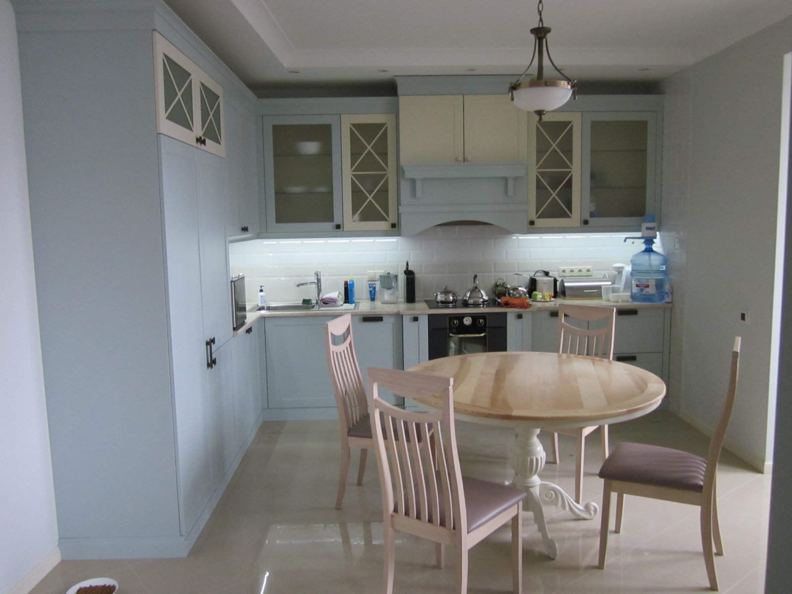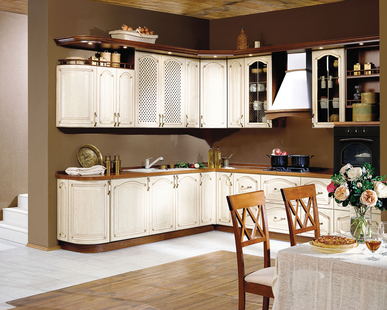 Para Provença a melhor escolha seria branco envelhecido e pastel. Prateleira sob o teto pode ser aberto, servir como um local de armazenamento para vários itens pequenos em cestas de vime.