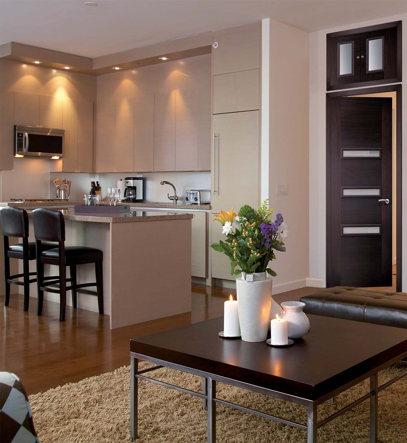 Nesse caso, eles se encaixarão da maneira mais orgânica possível. Além disso, o espaço acima da porta pode ser envolvido adicionalmente.