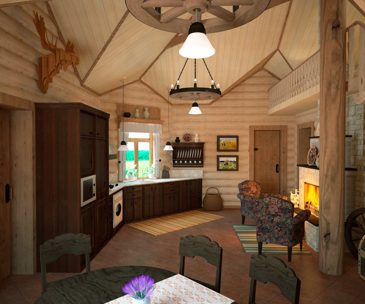 Música country-Direcções e eco-estilos são enfatizados com materiais naturais e tons claros. O país incorpora conforto e conforto no lar. Materiais naturais e cores simples são bem-vindos aqui. Tinta de tinta aceitável ou superfície de madeira tingida.