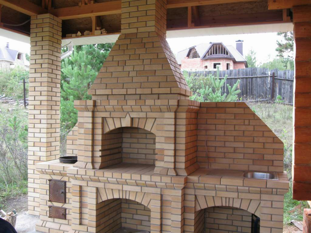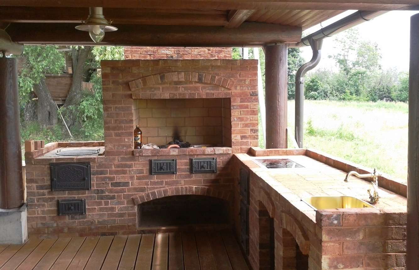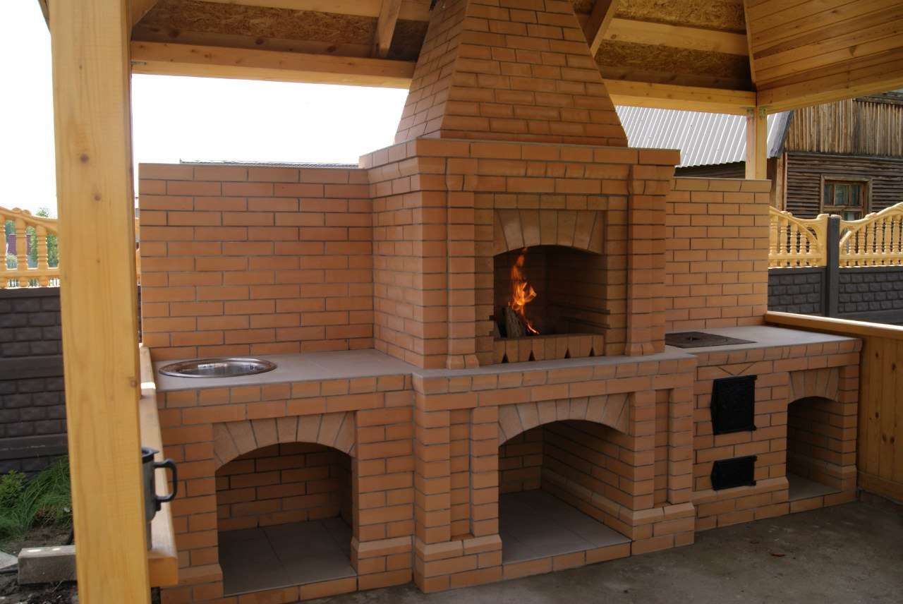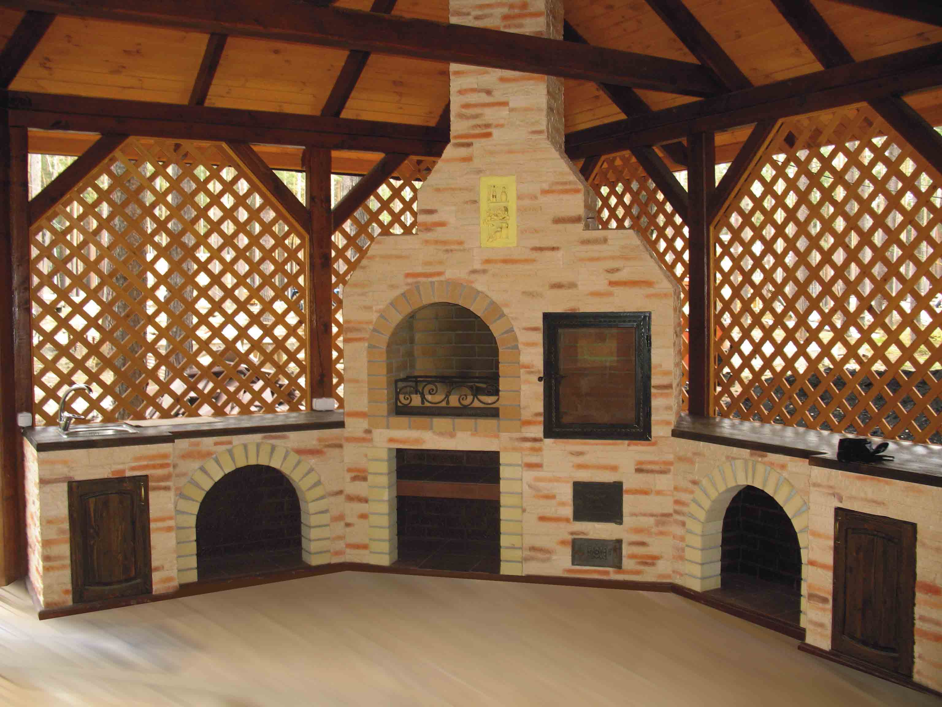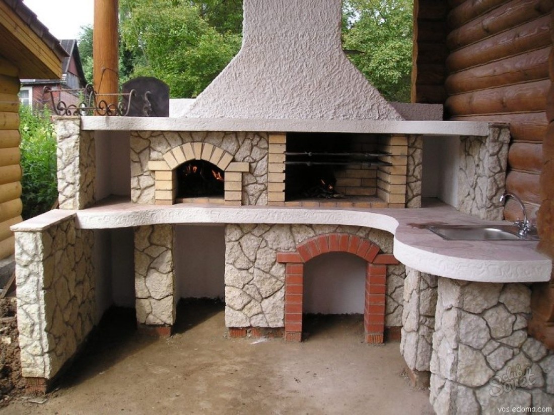 - Área de trabalho. Churrasco ou grill - muito simples, não faz sentido colocar um gazebo para eles. Mas a verdadeira lareira, fogão ou tandoor já é séria. Eles podem cozinhar não só carne, mas também pratos mais complexos. Se você tem um desejo, você pode até assar pão.