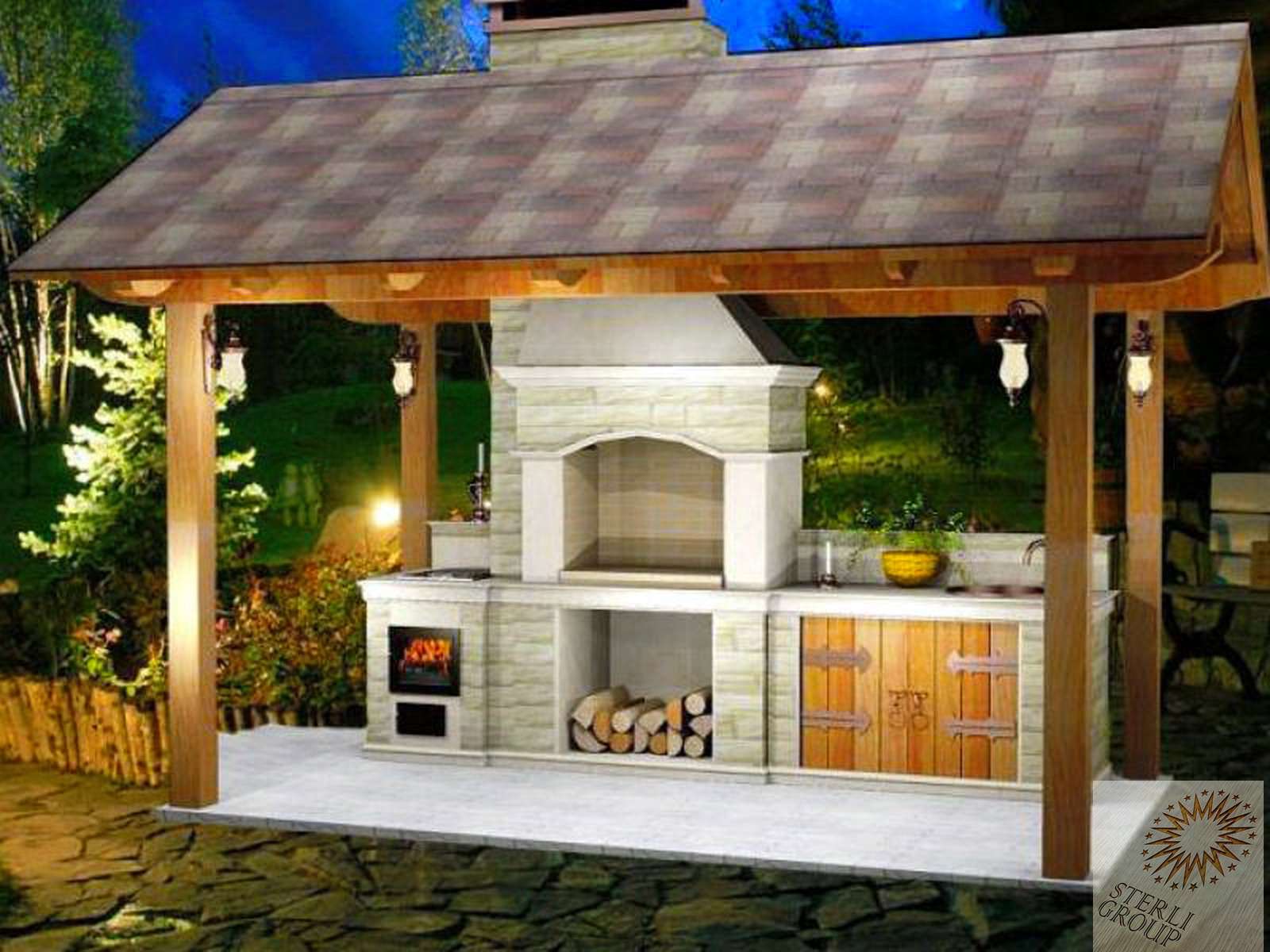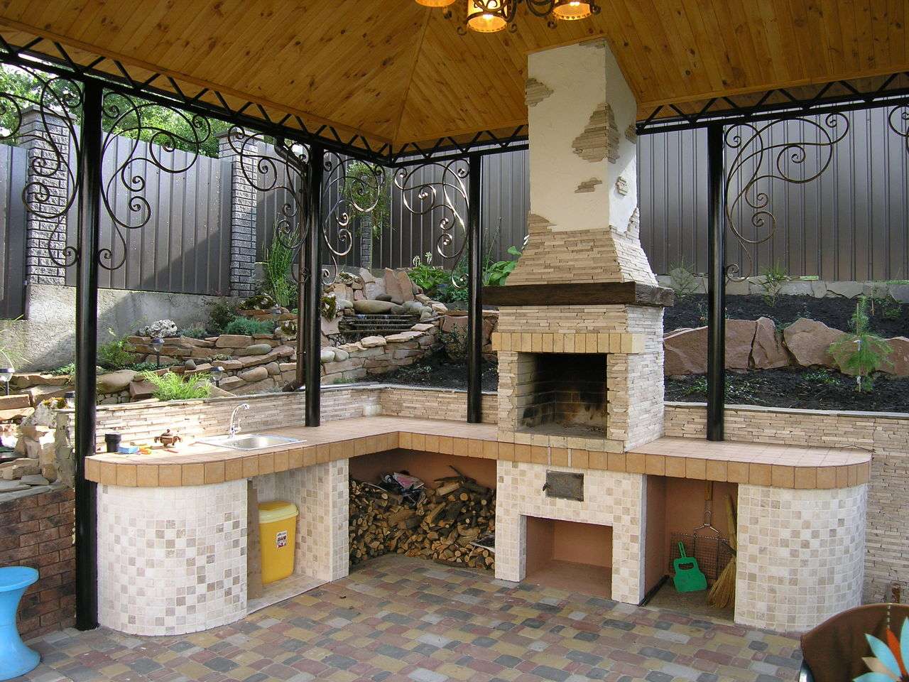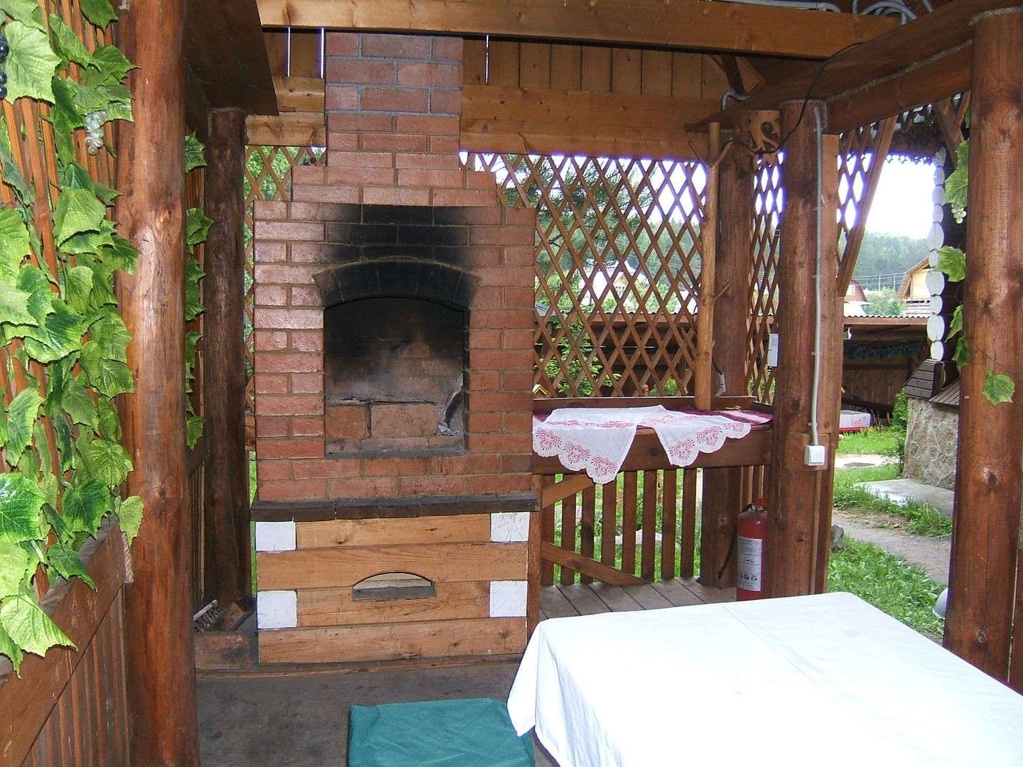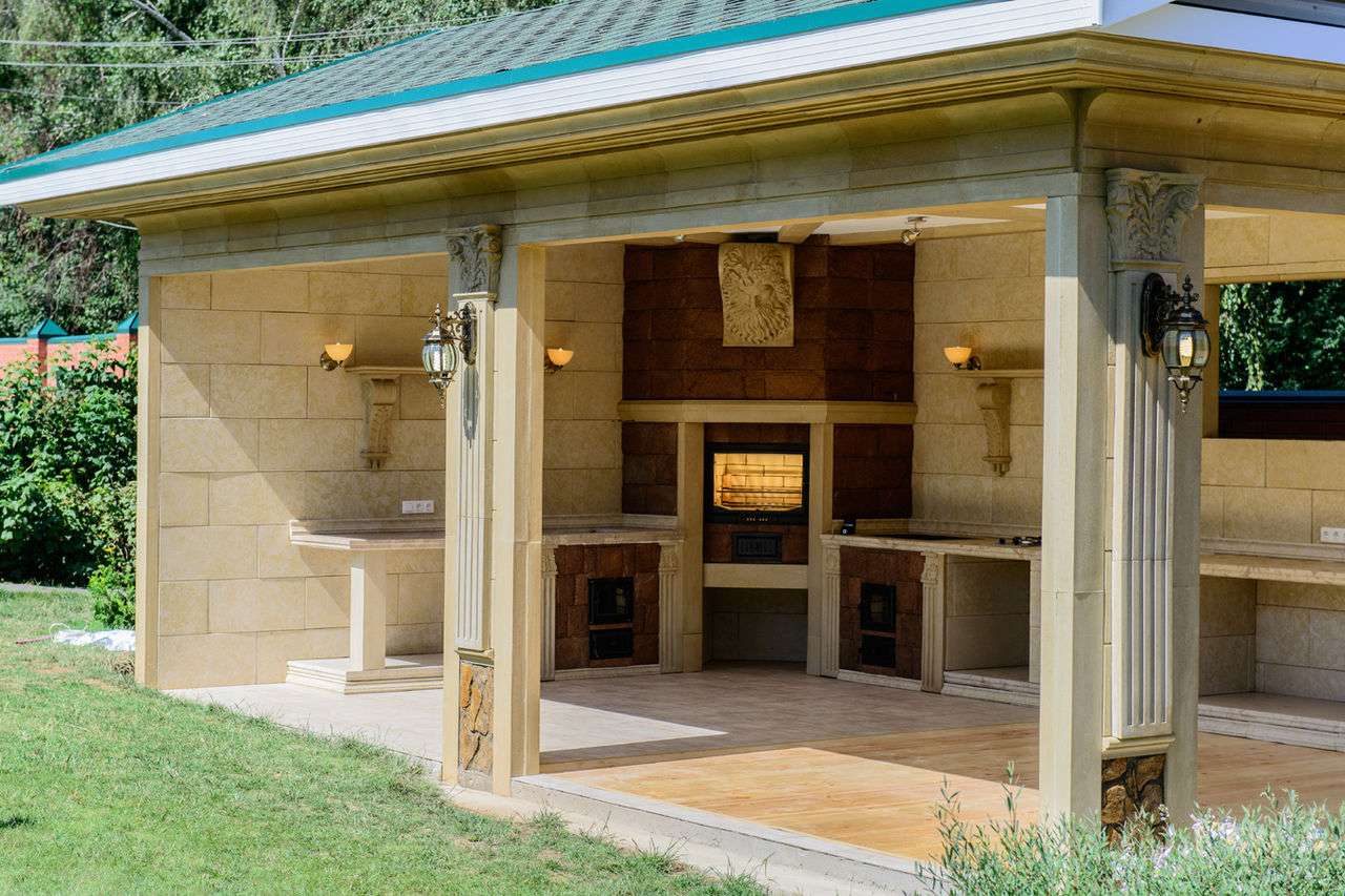 - Área de trabalho. Churrasco ou grill - muito simples, não faz sentido colocar um gazebo para eles. Mas a verdadeira lareira, fogão ou tandoor já é séria. Eles podem cozinhar não só carne, mas também pratos mais complexos. Se você tem um desejo, você pode até assar pão.