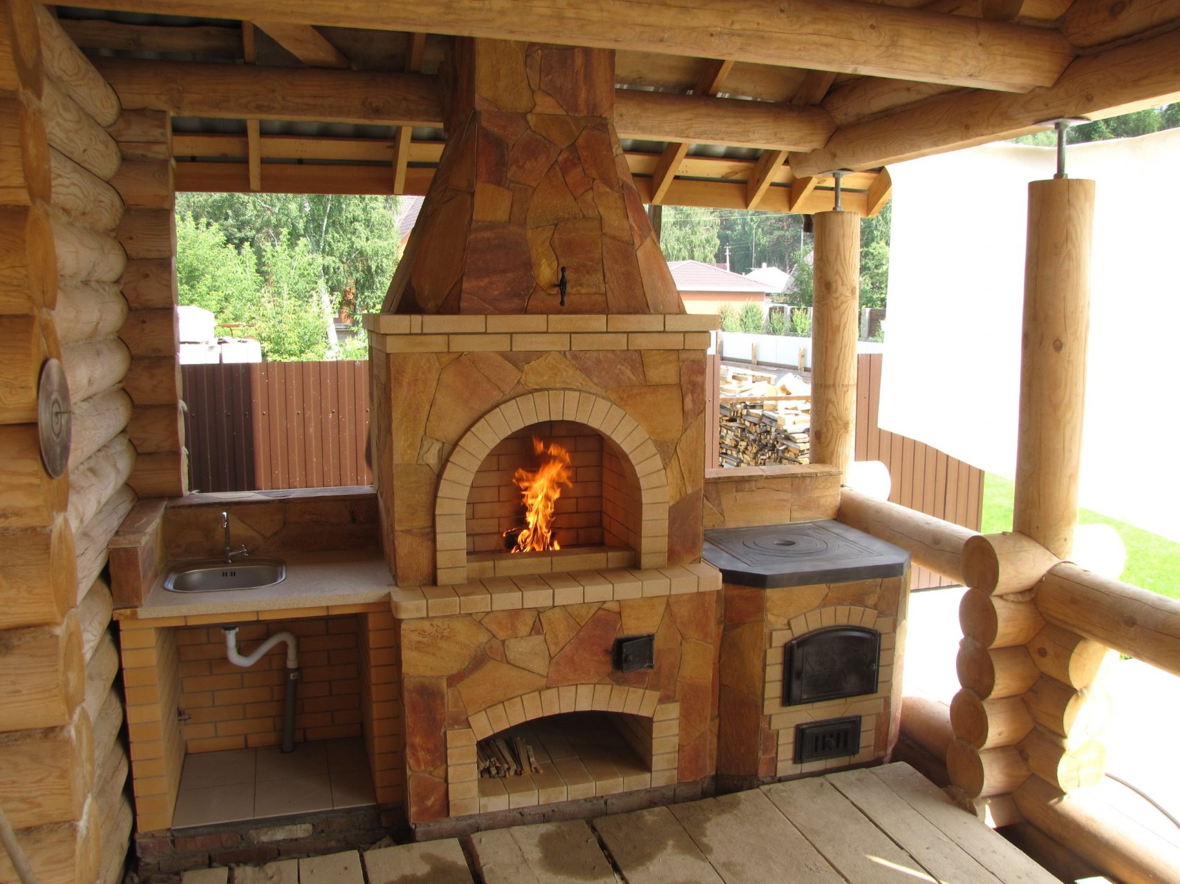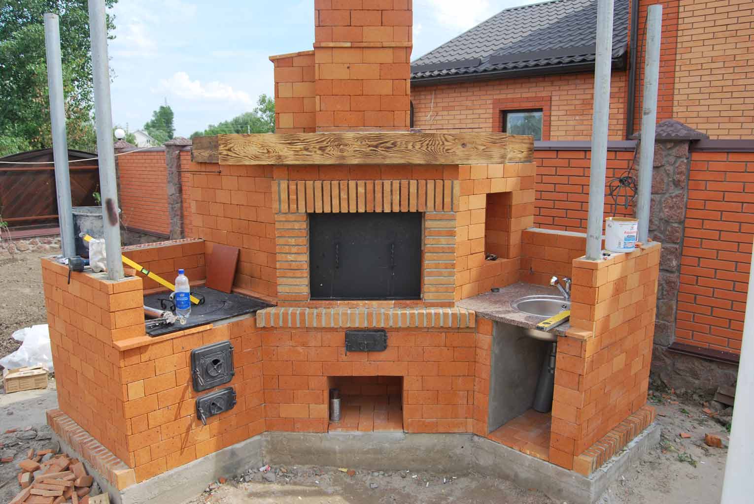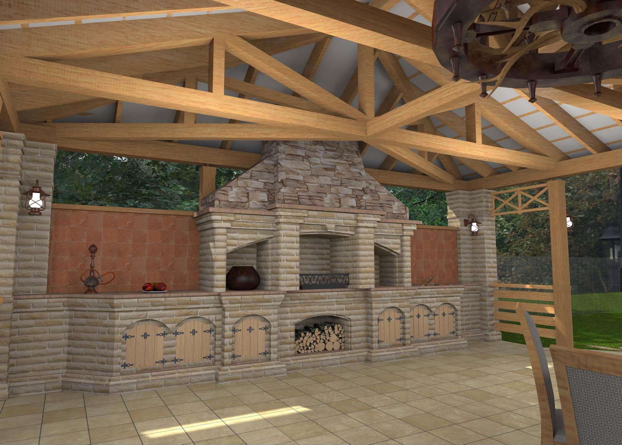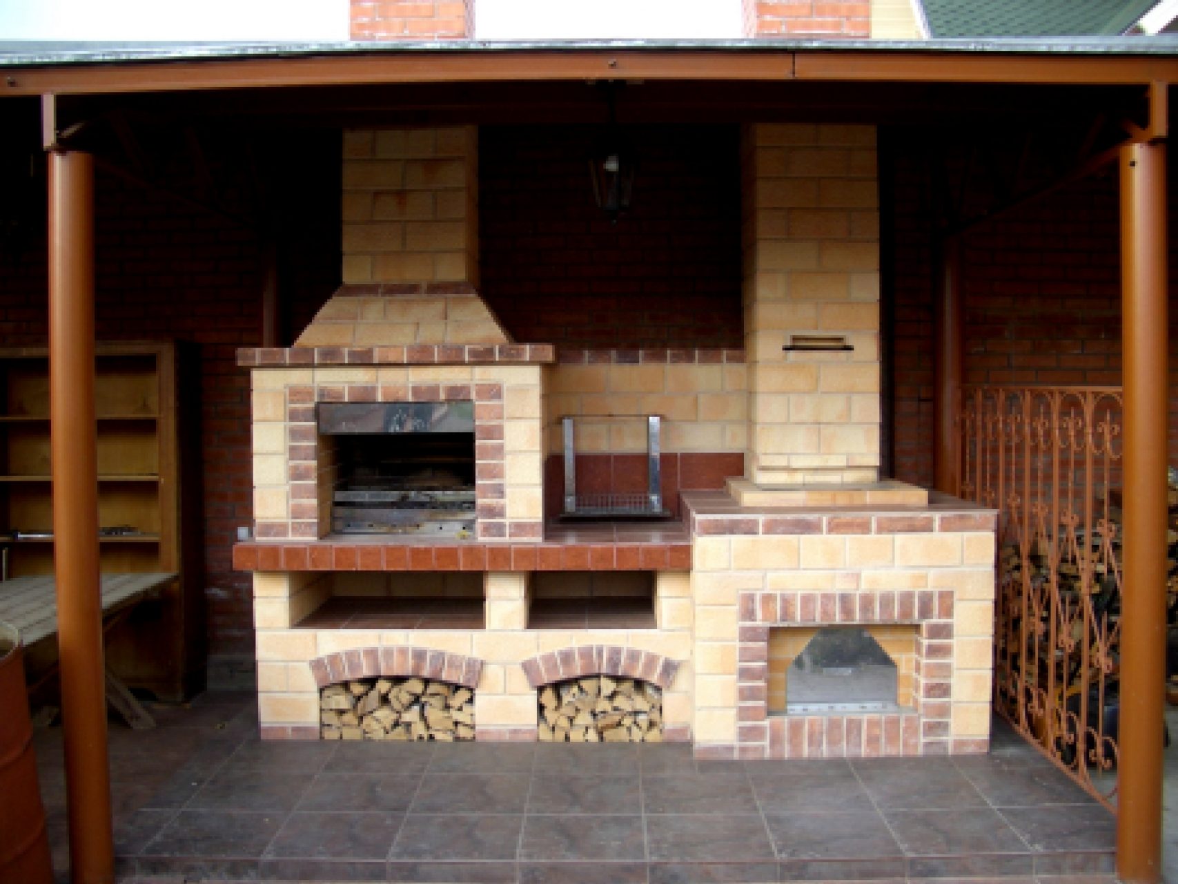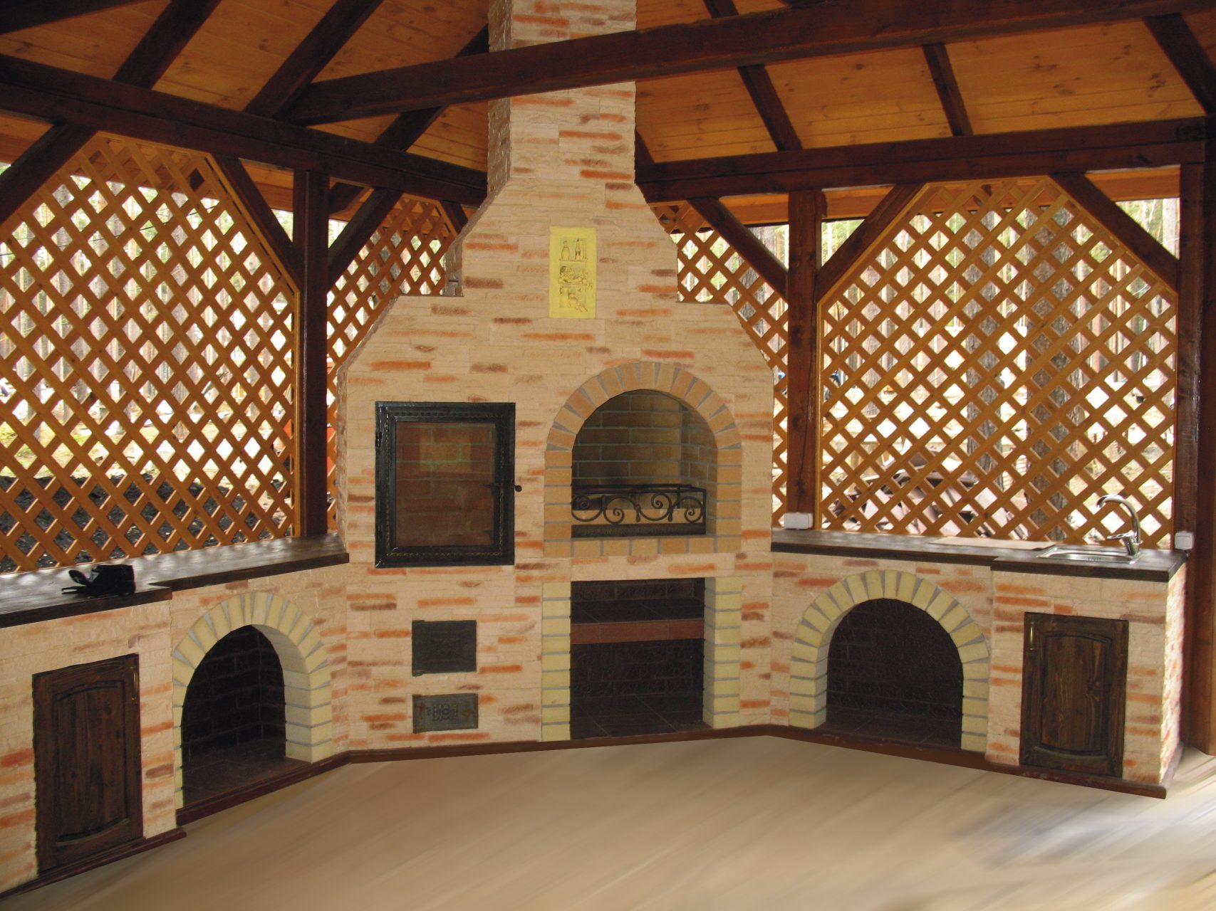 - Área de trabalho. Churrasco ou grill - muito simples, não faz sentido colocar um gazebo para eles. Mas a verdadeira lareira, fogão ou tandoor já é séria. Eles podem cozinhar não só carne, mas também pratos mais complexos. Se você tem um desejo, você pode até assar pão.