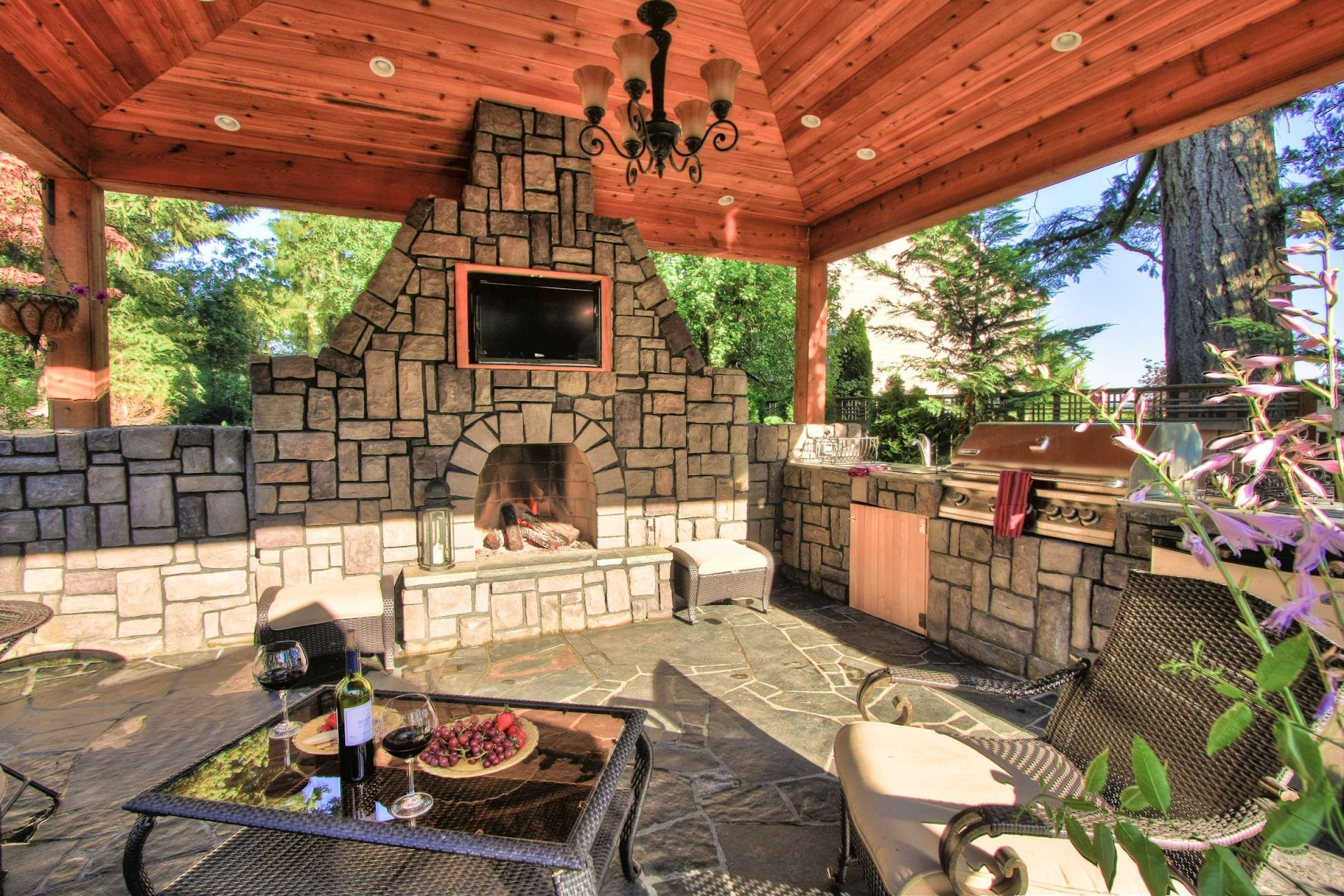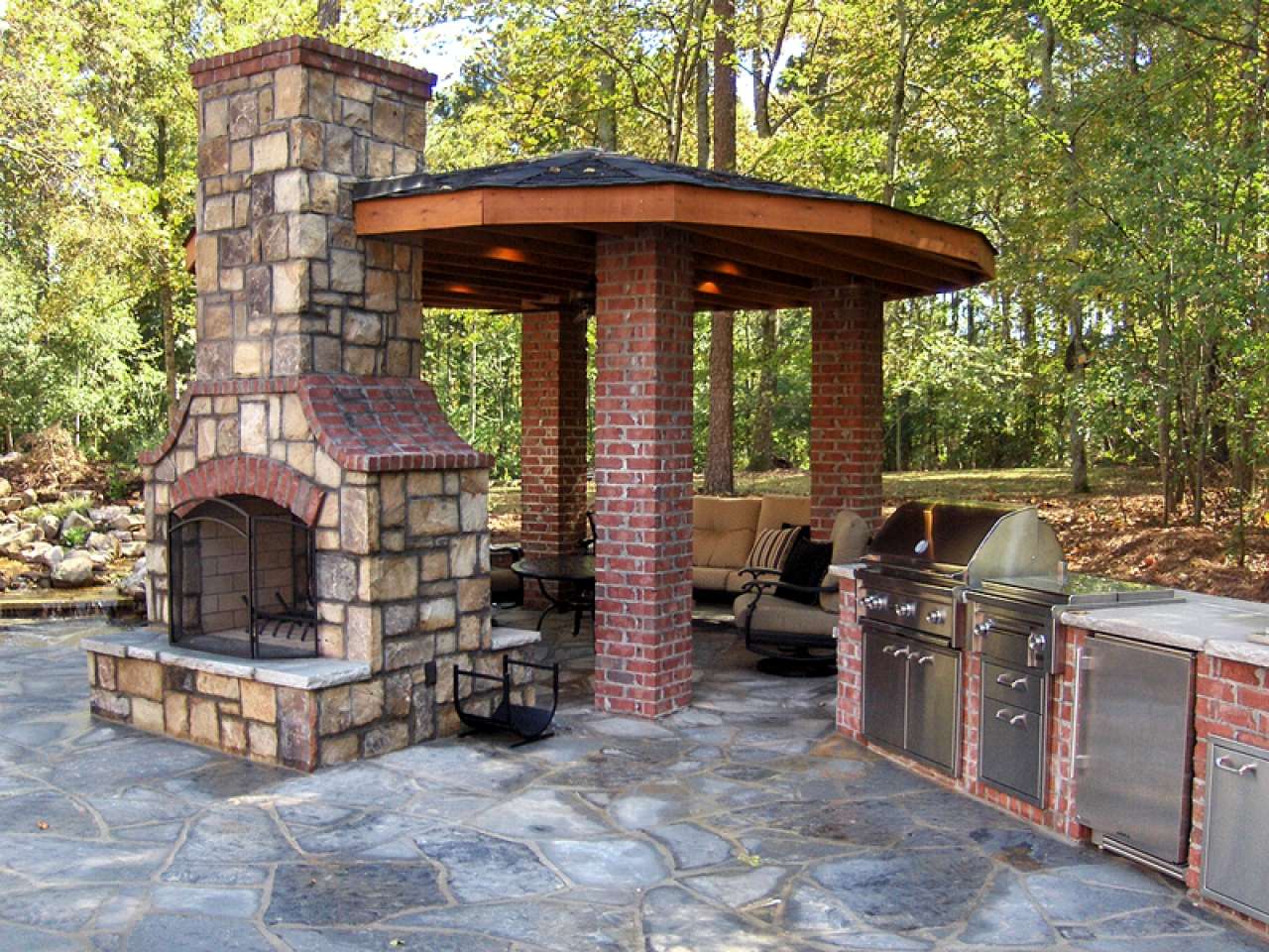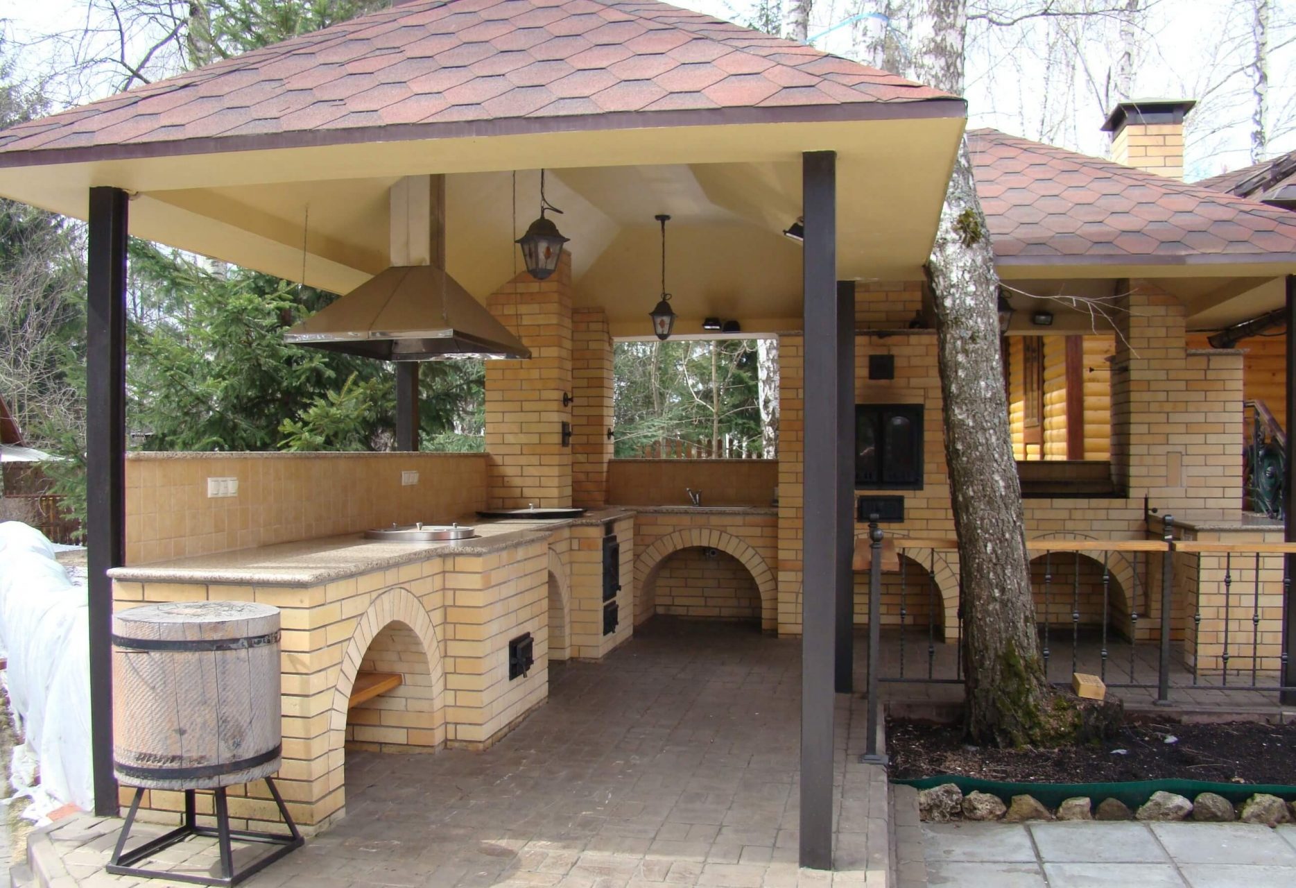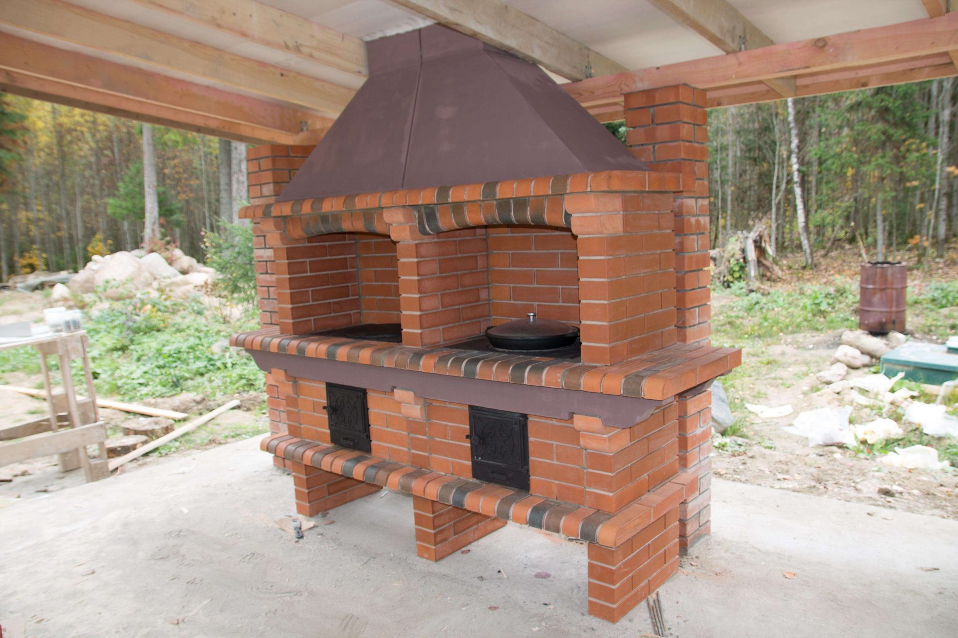 - Área de trabalho. Churrasco ou grill - muito simples, não faz sentido colocar um gazebo para eles. Mas a verdadeira lareira, fogão ou tandoor já é séria. Eles podem cozinhar não só carne, mas também pratos mais complexos. Se você tem um desejo, você pode até assar pão.