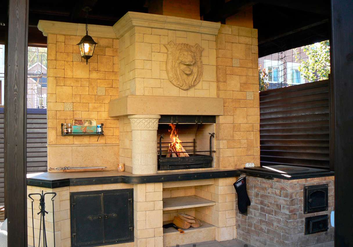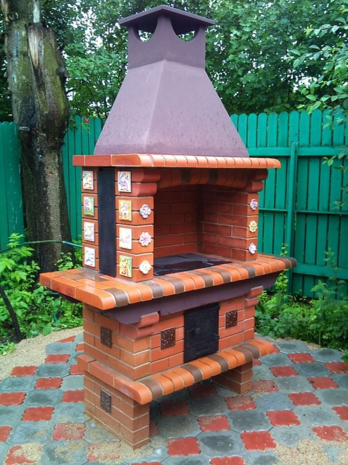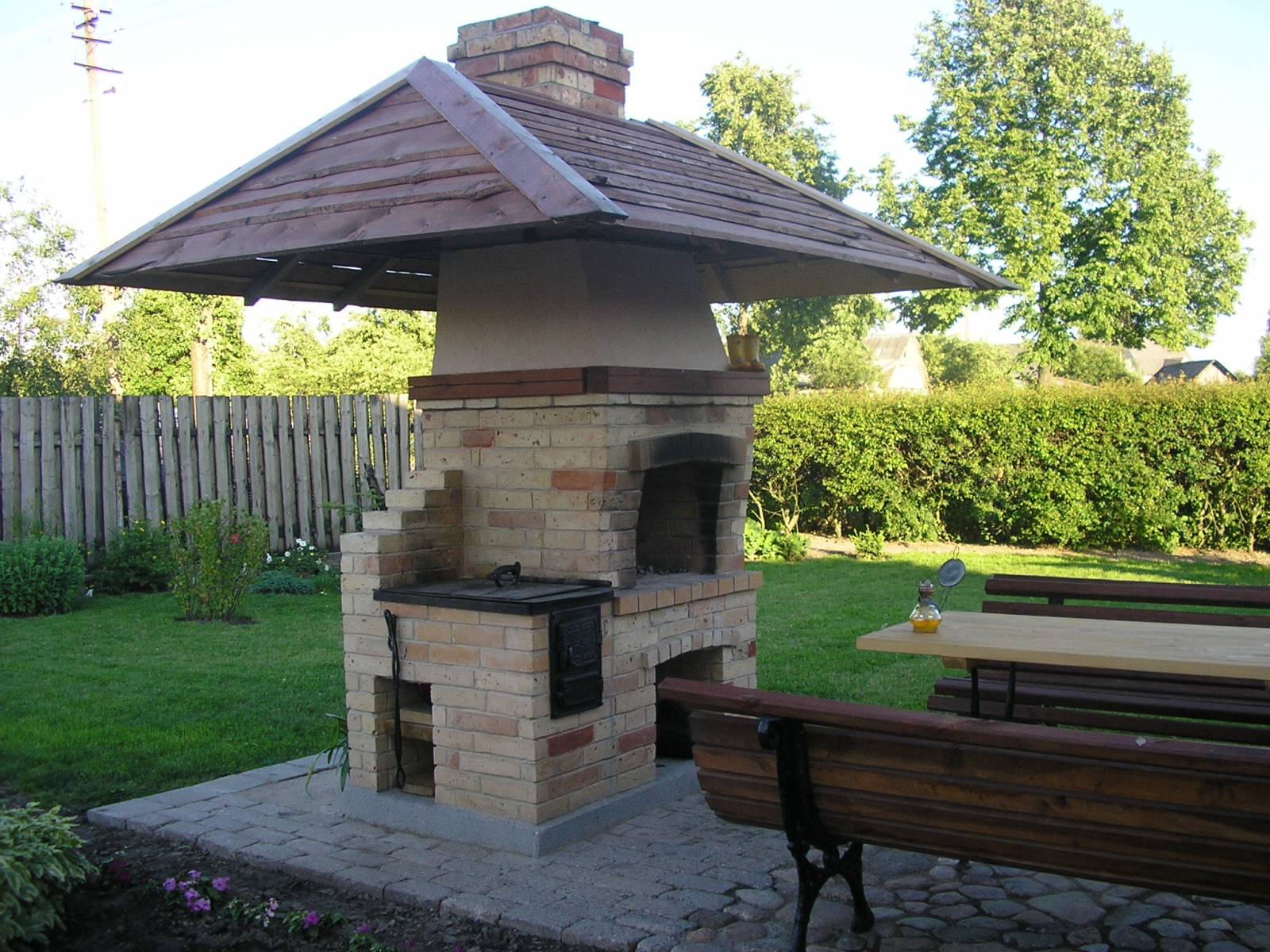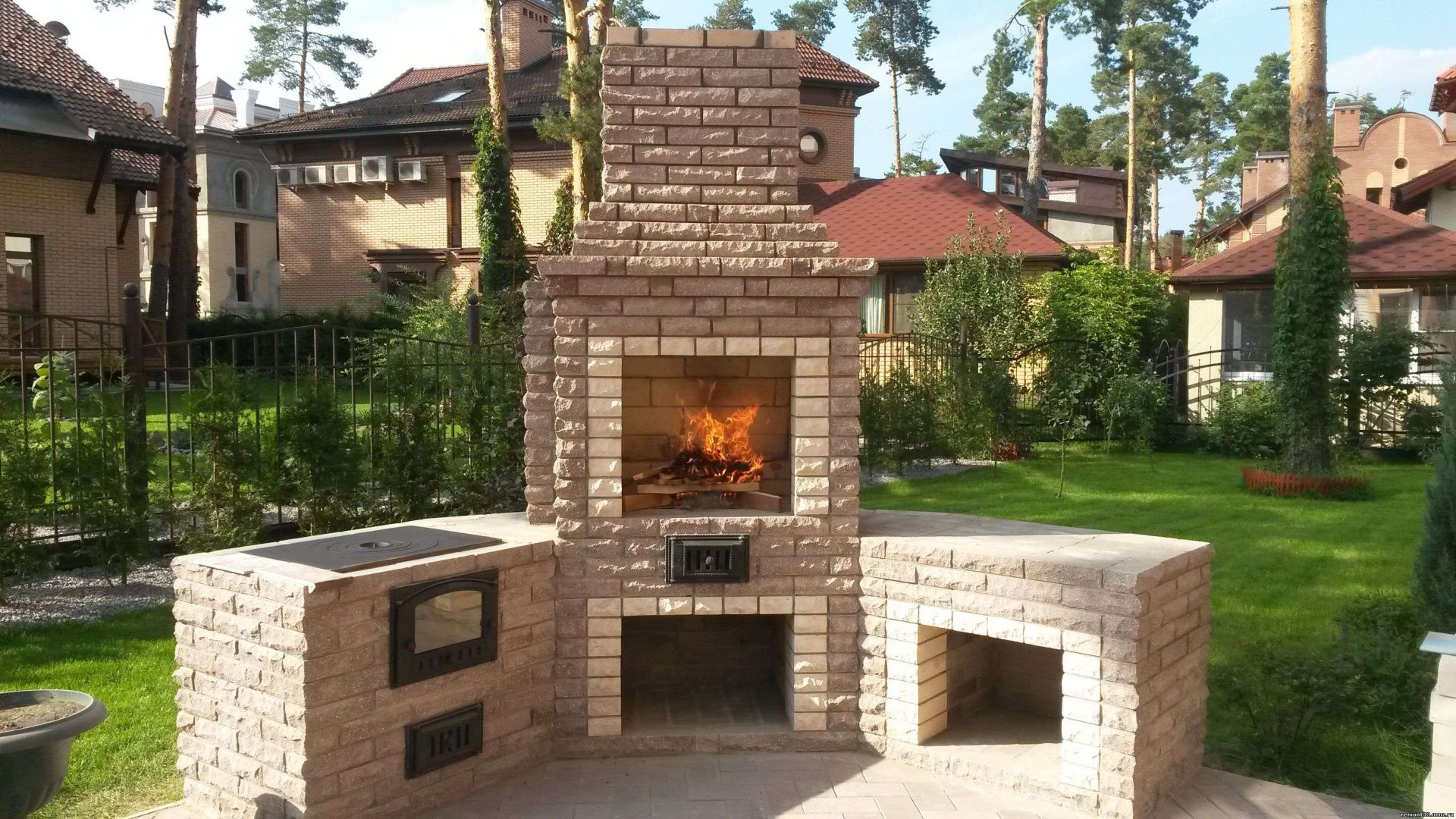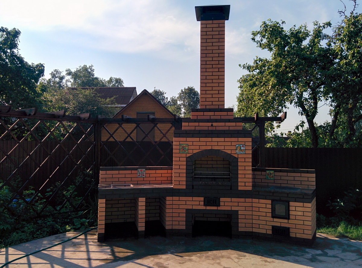 - Segurança. Independentemente do que você terá - seja a lareira, o braseiro, o forno de verdade - há um risco de incêndio. É por isso que o local geralmente é remendado com ladrilhos que não queimam e são colocados longe de tudo que pode pegar fogo, de cercas de madeira, árvores, arbustos e playgrounds.