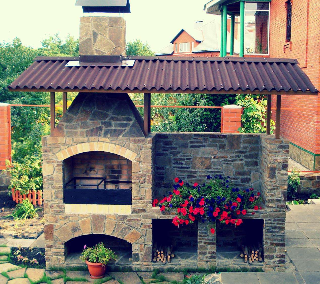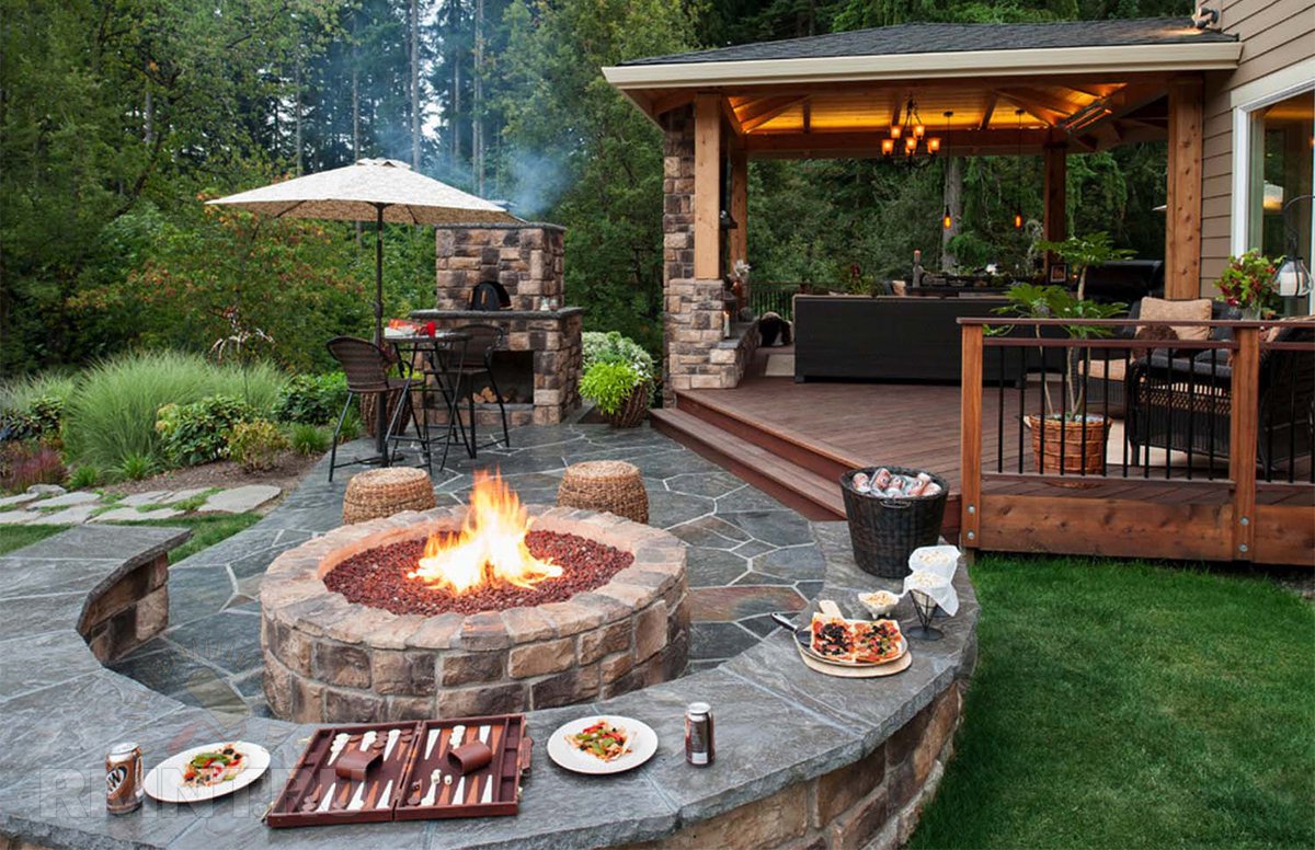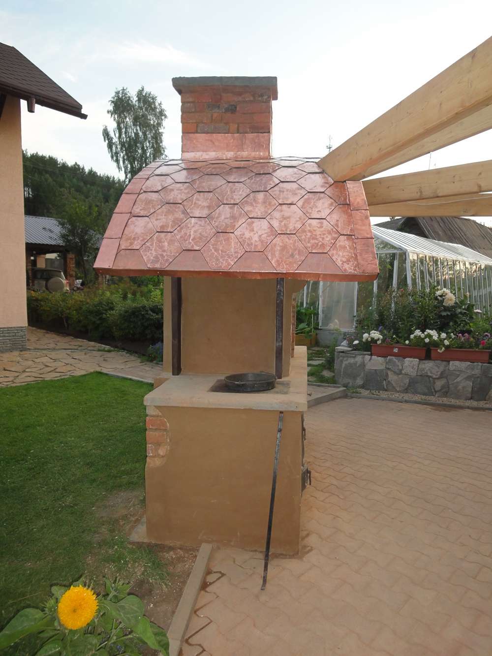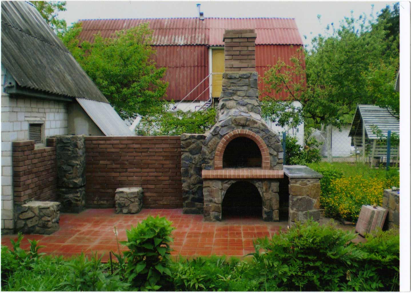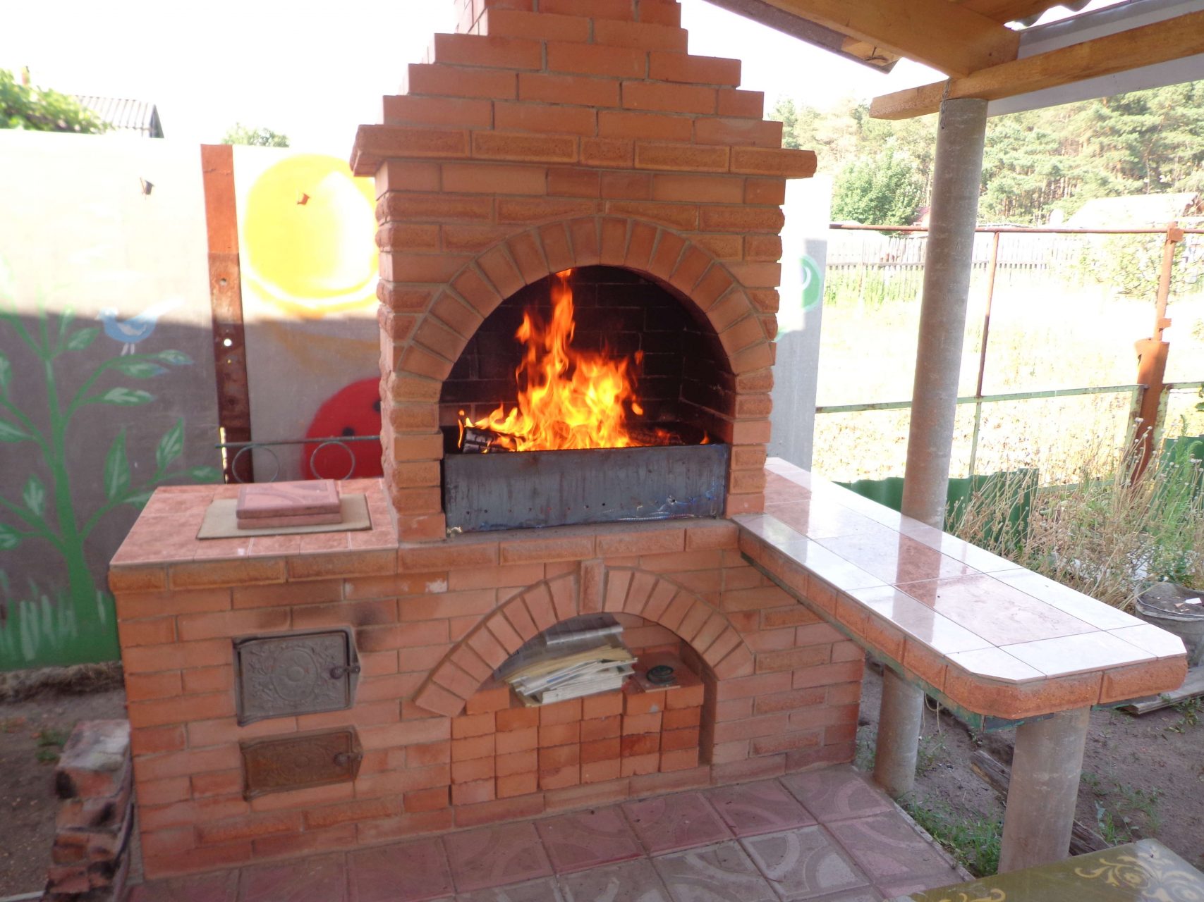- Segurança. Independentemente do que você terá - seja a lareira, o braseiro, o forno de verdade - há um risco de incêndio. É por isso que o local geralmente é remendado com ladrilhos que não queimam e são colocados longe de tudo que pode pegar fogo, de cercas de madeira, árvores, arbustos e playgrounds.