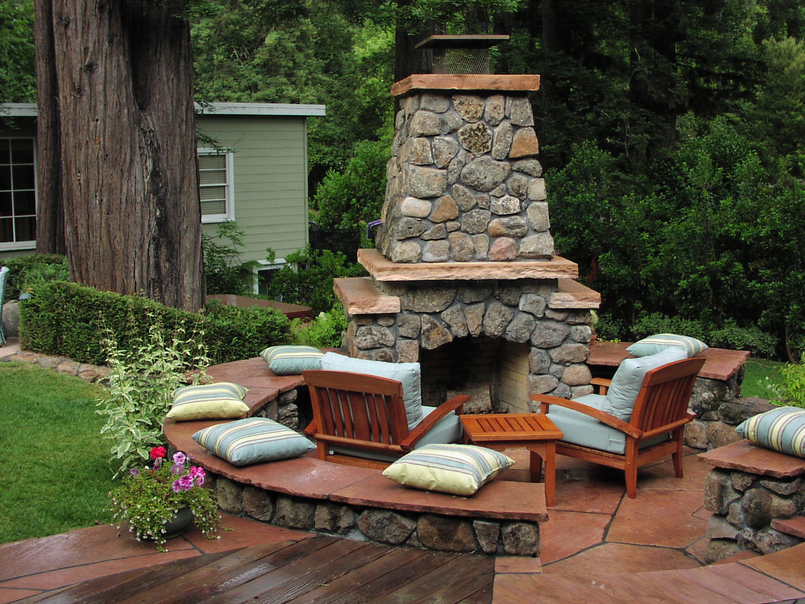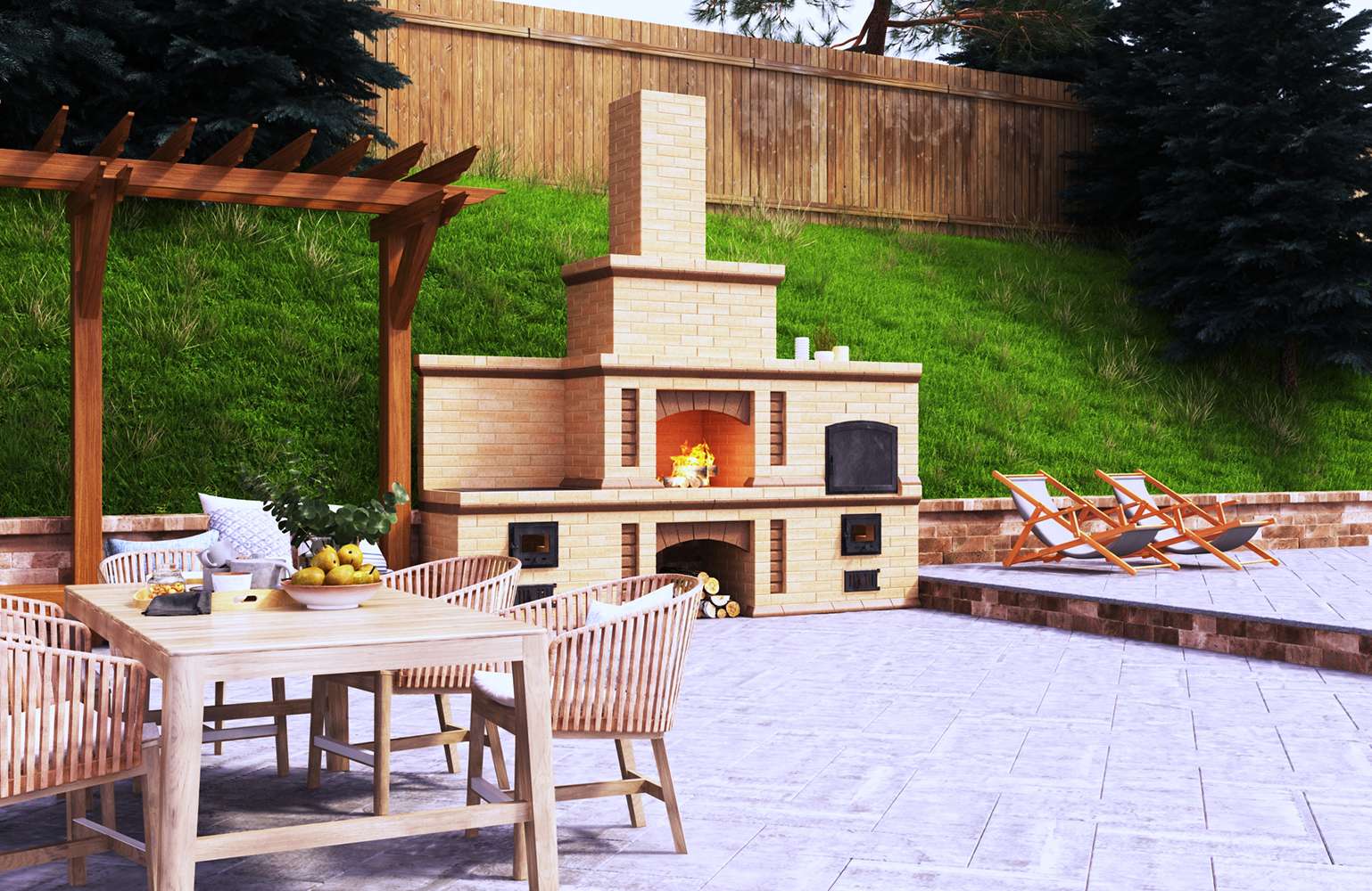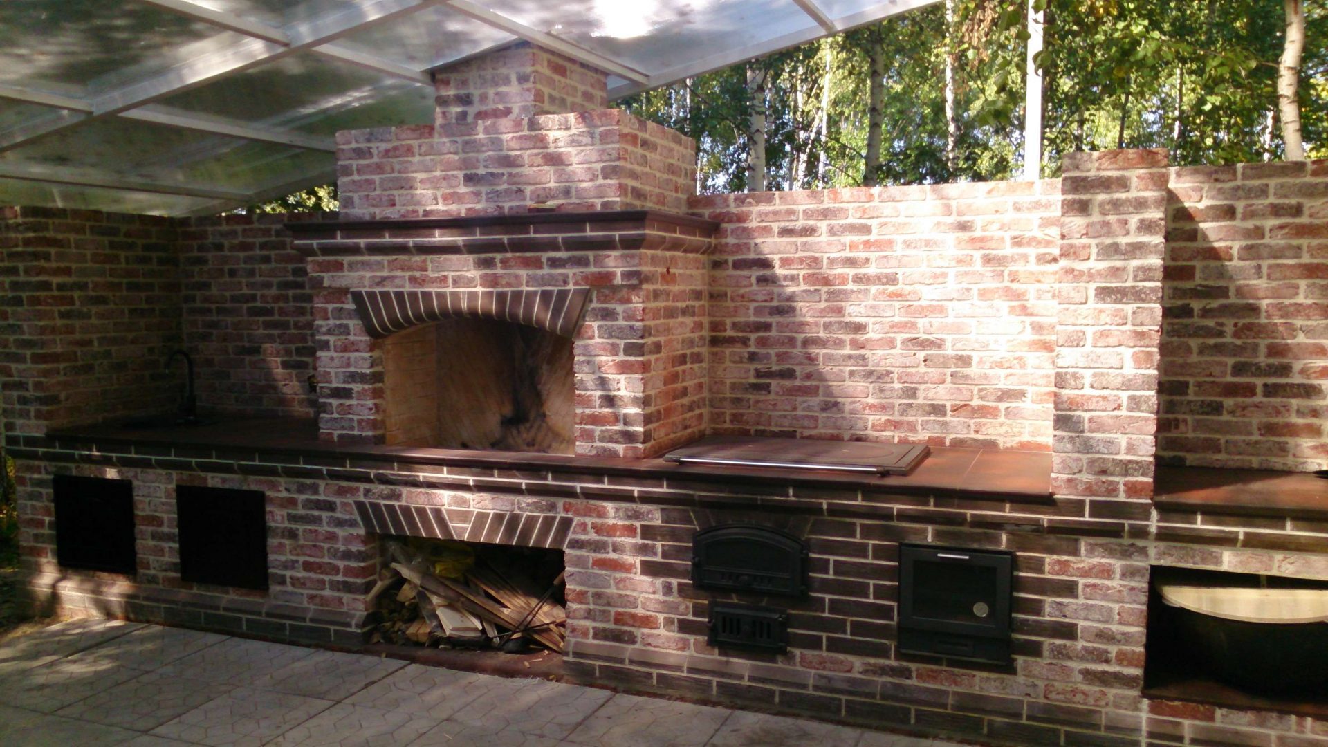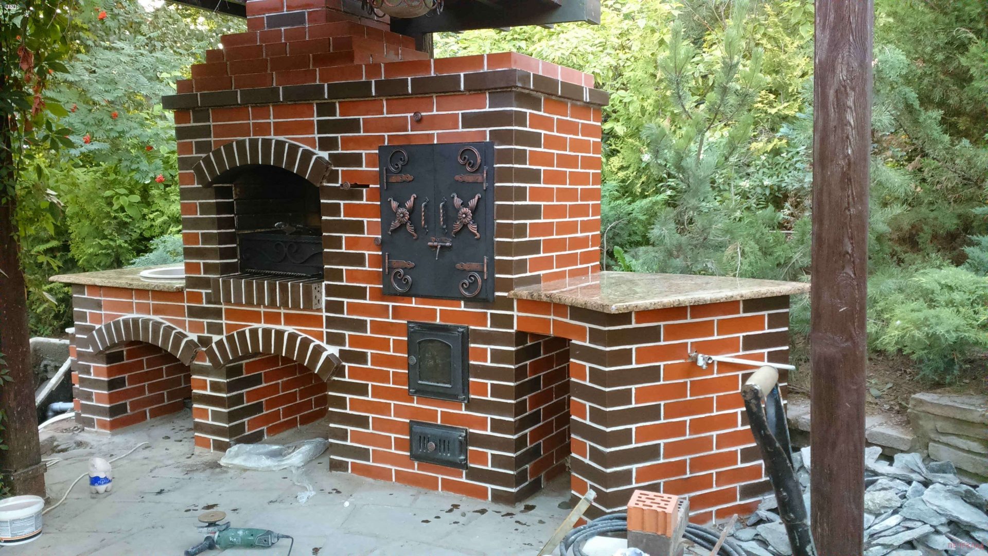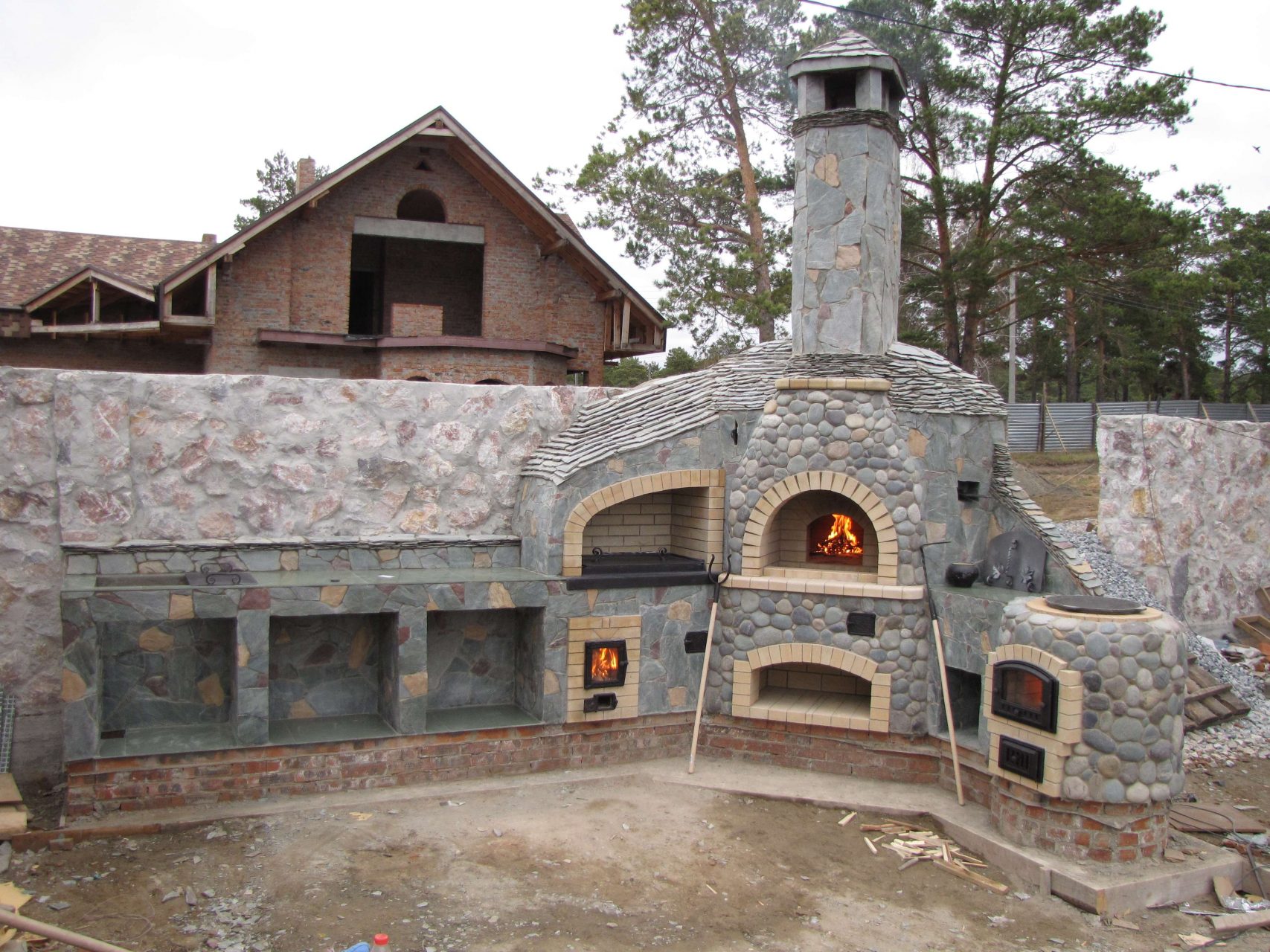 - Segurança. Independentemente do que você terá - seja a lareira, o braseiro, o forno de verdade - há um risco de incêndio. É por isso que o local geralmente é remendado com ladrilhos que não queimam e são colocados longe de tudo que pode pegar fogo, de cercas de madeira, árvores, arbustos e playgrounds.