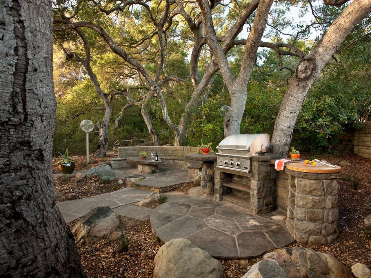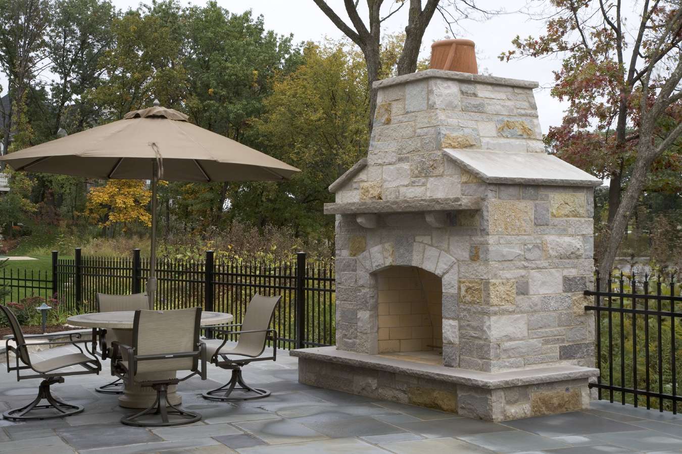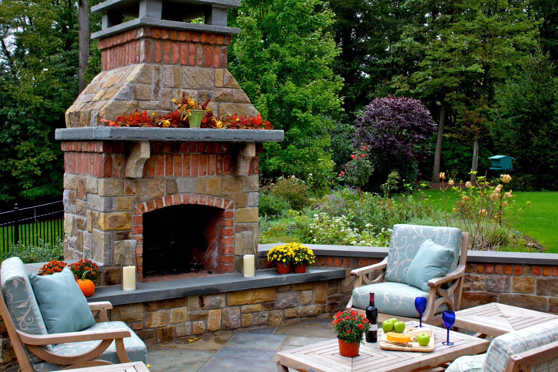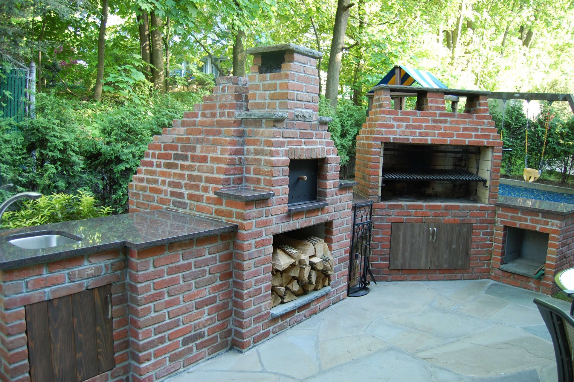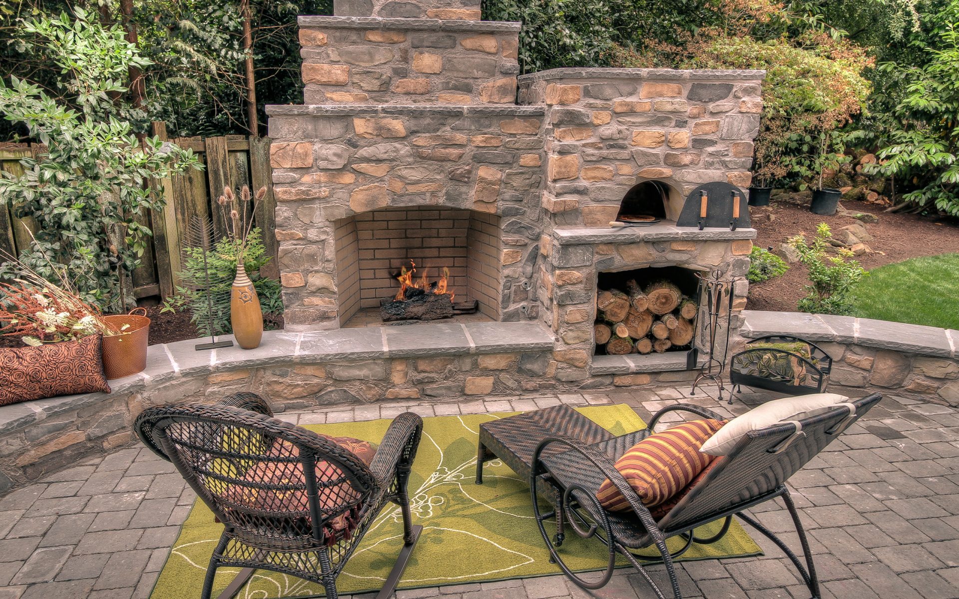 - Segurança. Independentemente do que você terá - seja a lareira, o braseiro, o forno de verdade - há um risco de incêndio. É por isso que o local geralmente é remendado com ladrilhos que não queimam e são colocados longe de tudo que pode pegar fogo, de cercas de madeira, árvores, arbustos e playgrounds.