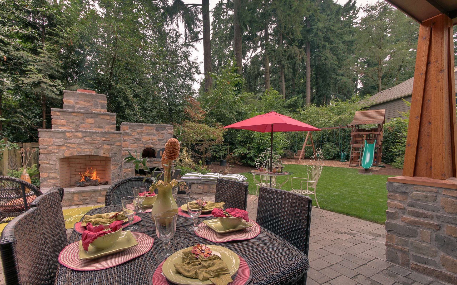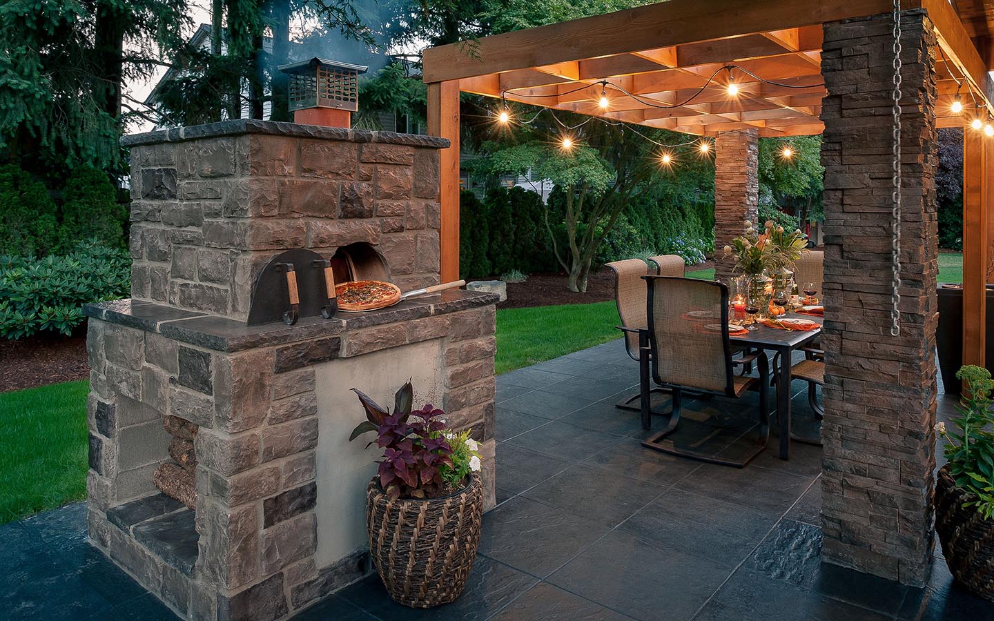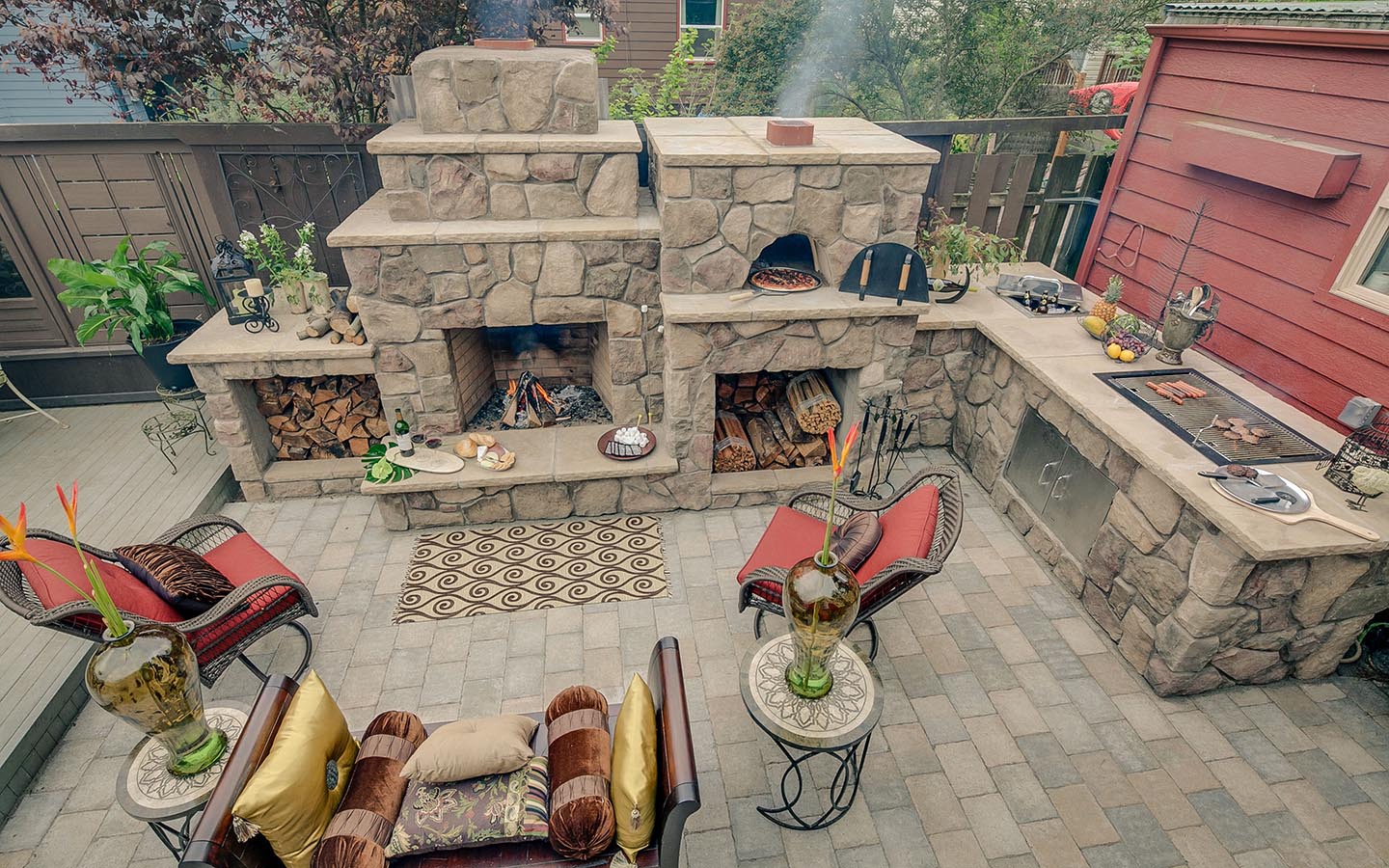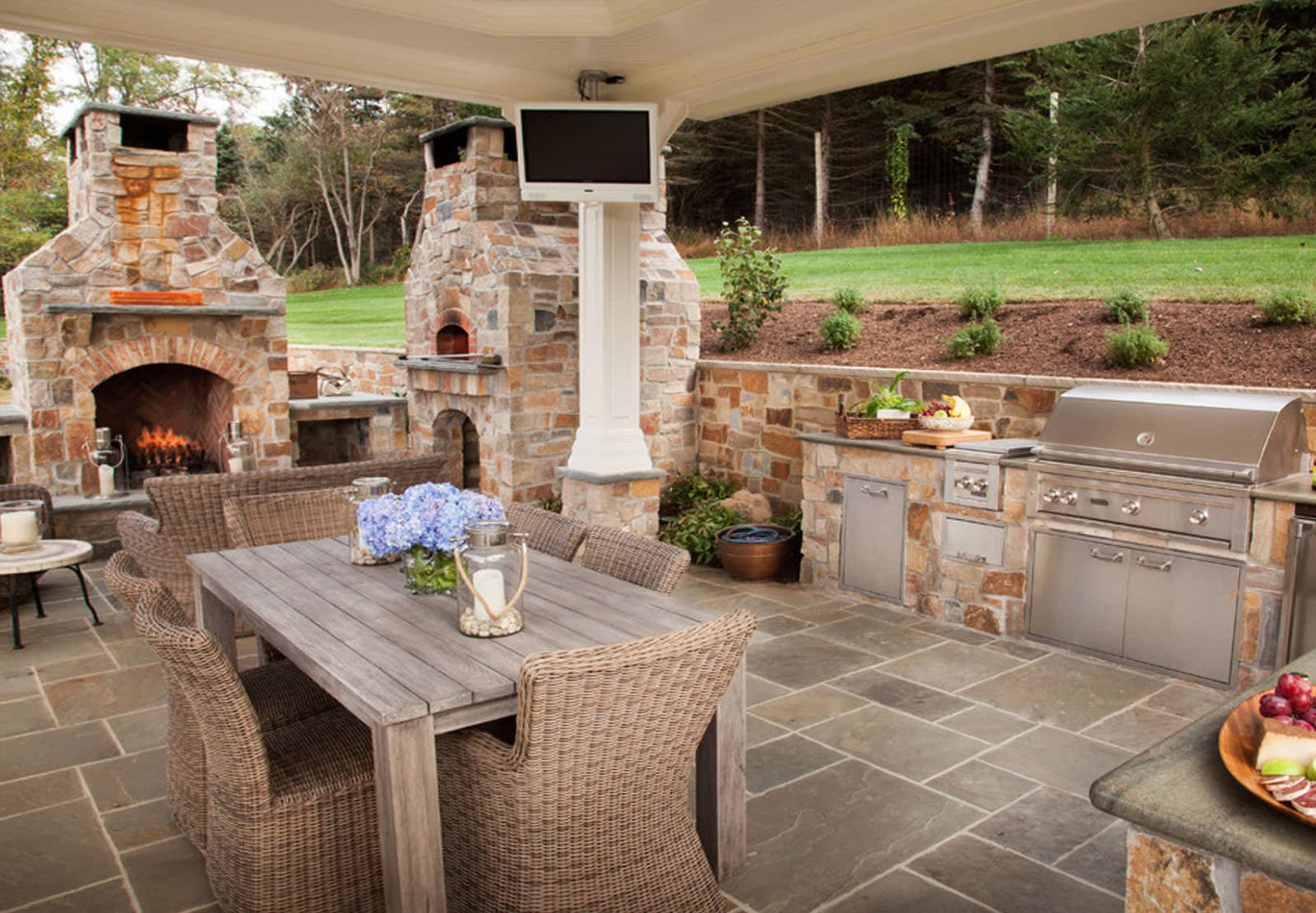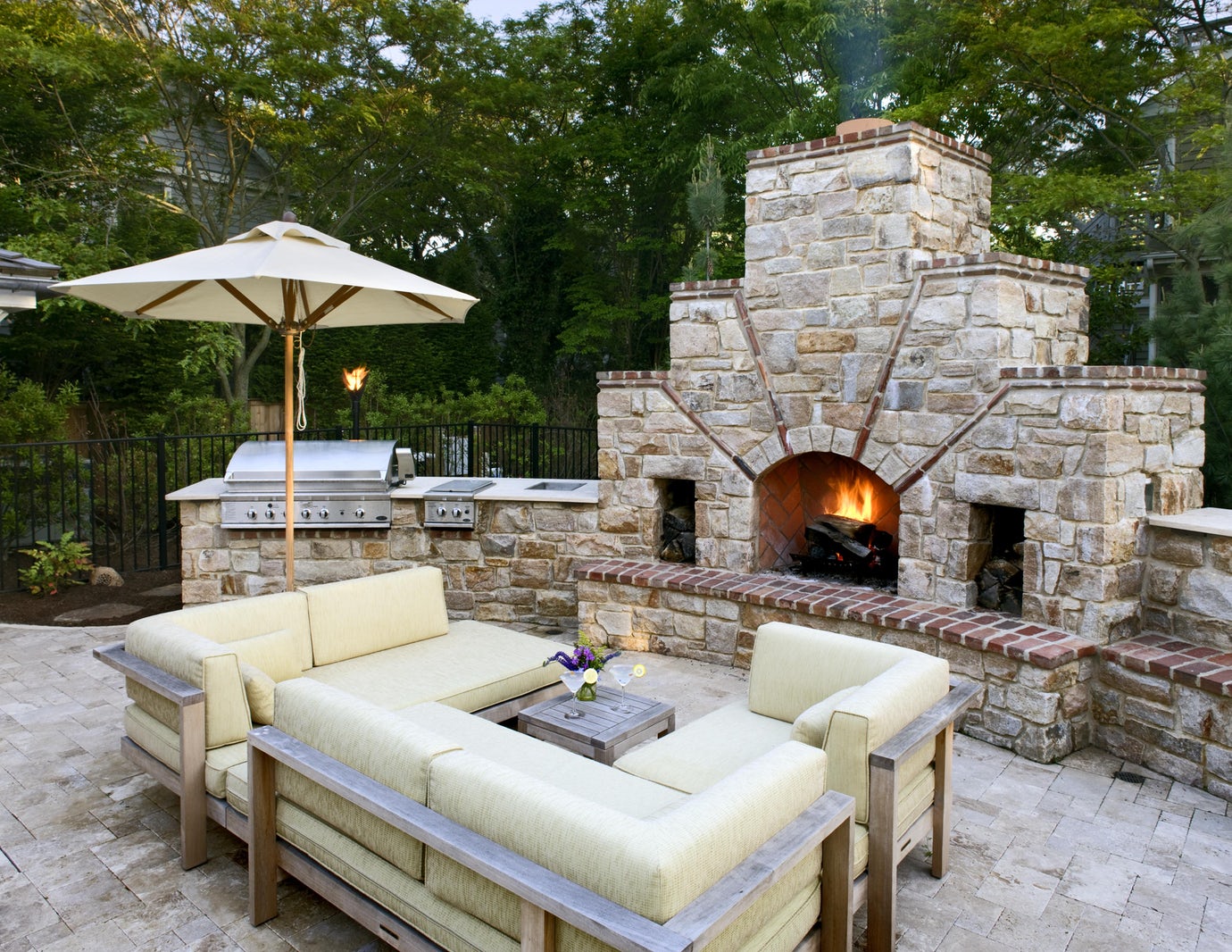 - Segurança. Independentemente do que você terá - seja a lareira, o braseiro, o forno de verdade - há um risco de incêndio. É por isso que o local geralmente é remendado com ladrilhos que não queimam e são colocados longe de tudo que pode pegar fogo, de cercas de madeira, árvores, arbustos e playgrounds.