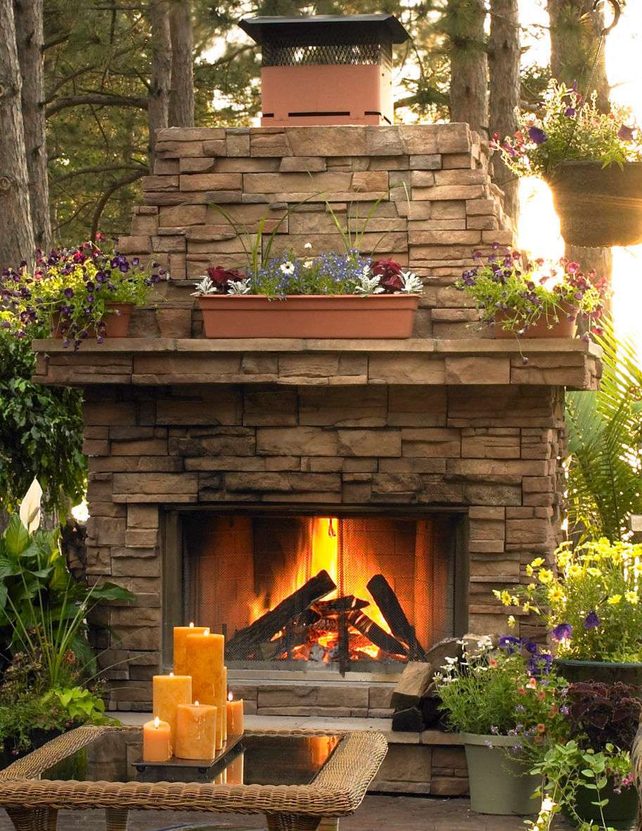 - Lareira aberta. É uma lareira disposta no perímetro com pedra natural ou tijolo. Permite que você frite salsichas em galhos, assar batatas - trazer romance caminhadas em um jardim comum.