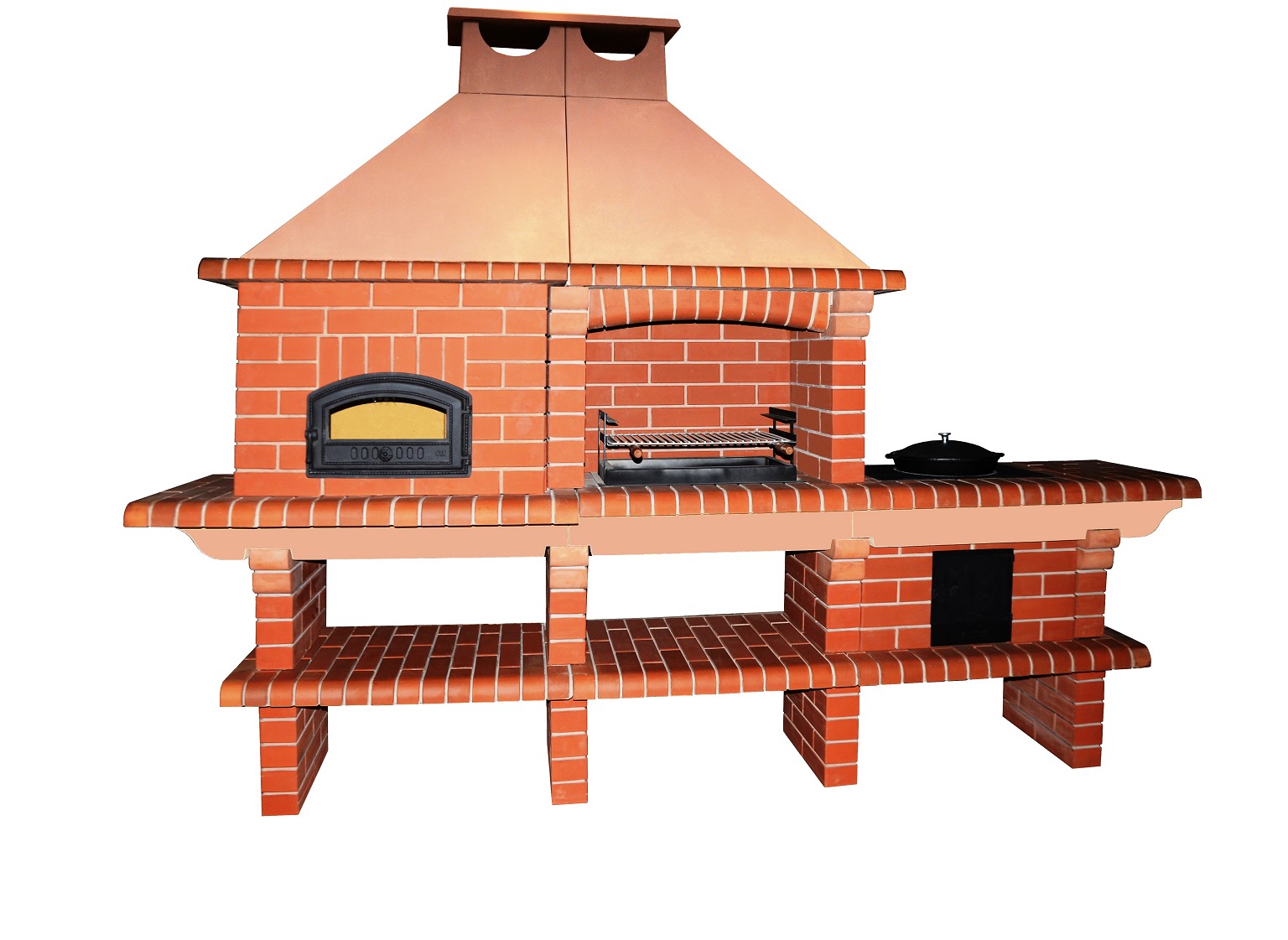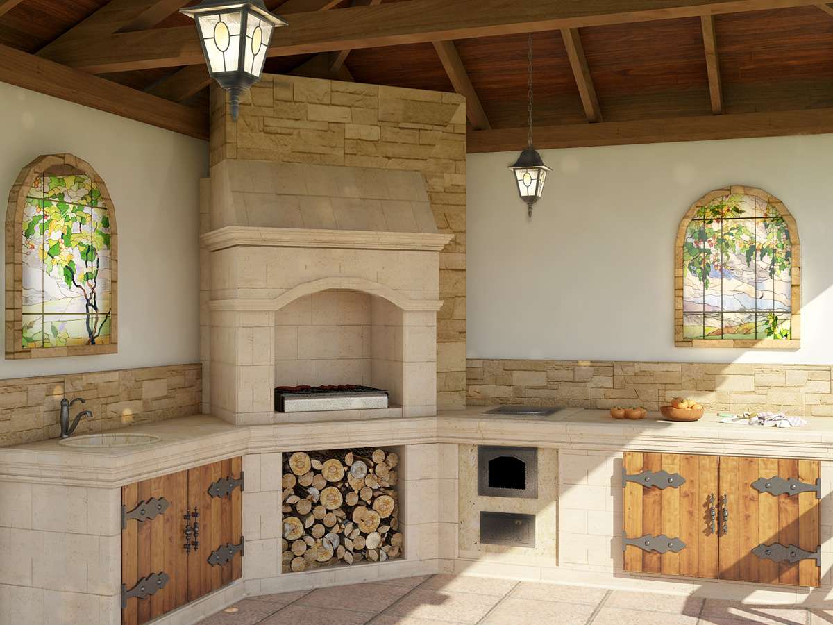 - Área de trabalho. Nele você pode colocar uma grelha ou grill, e você pode ter um forno real ou lar aberto, dependendo do seu gosto. O site universal justifica seu nome nesta questão.