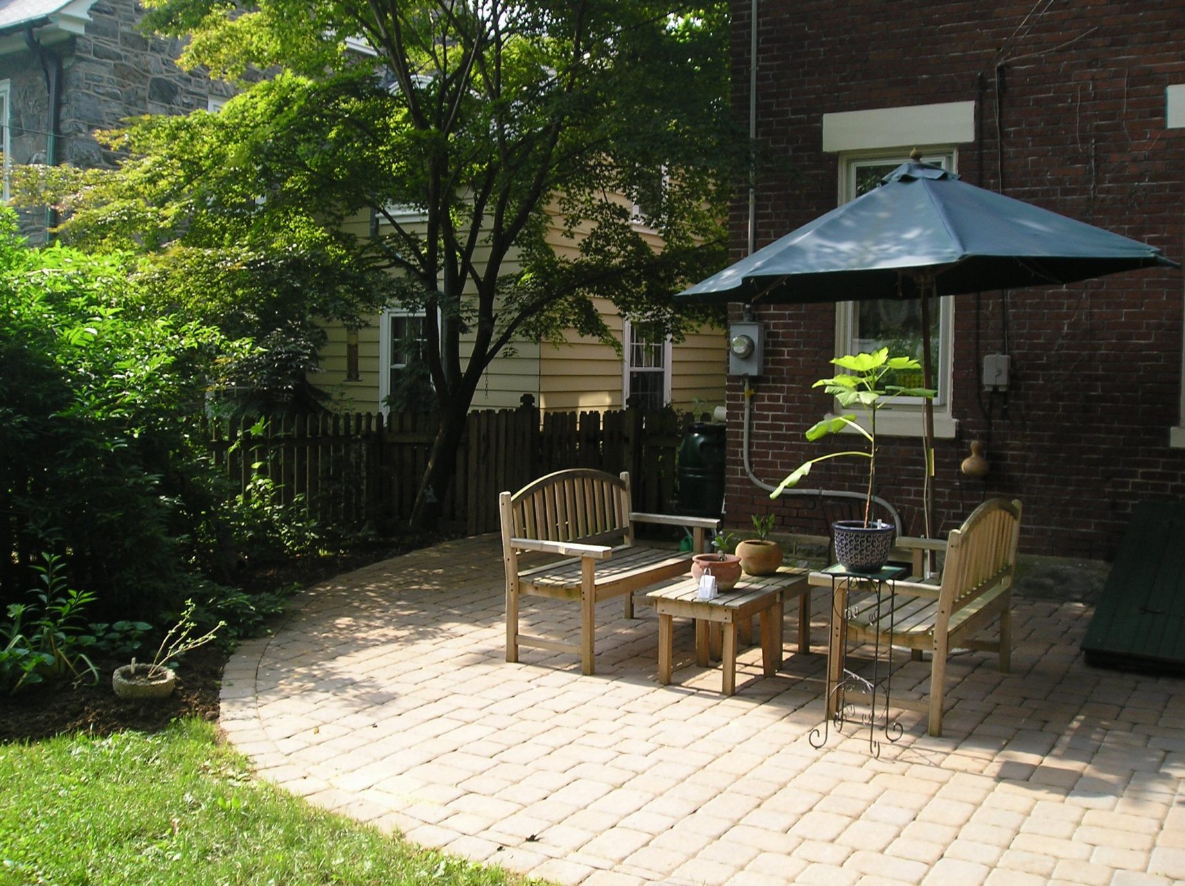 - Presença de parede. Neste caso, uma área no pátio se aproxima da parede, enquanto a outra é separada, isoladamente.