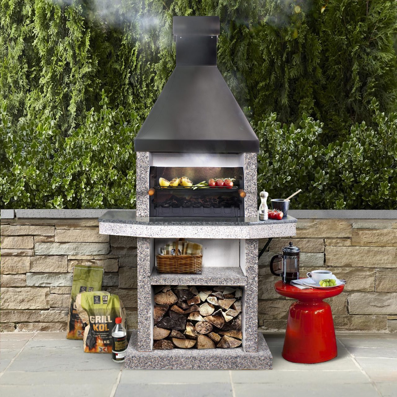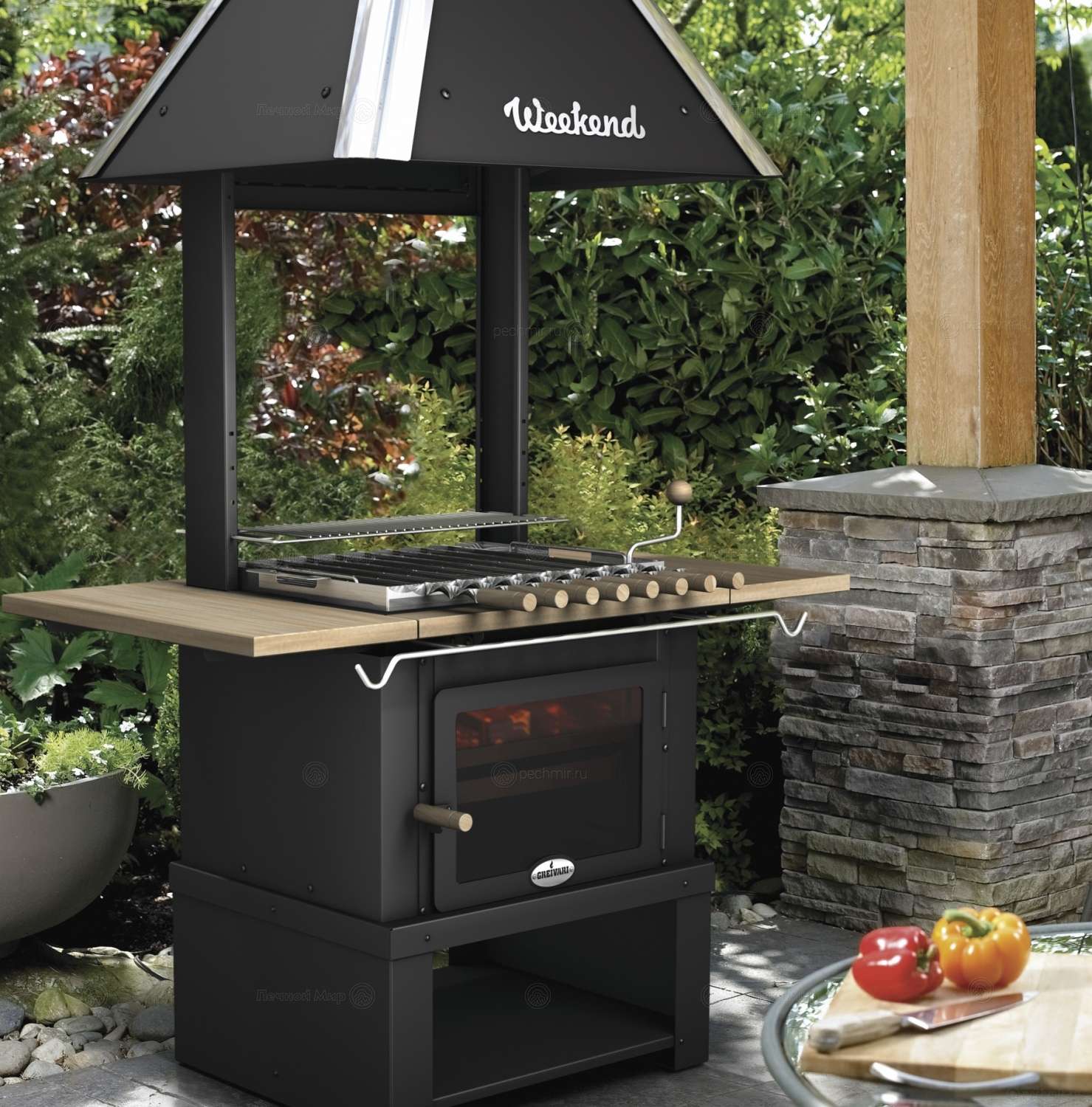 - Fogão de jardim. Uma boa idéia para o pátio, porque é equipado com uma chaminé, o que significa que a fumaça durante o cozimento não entrará na casa. Não se destina a kebabs, você pode cozinhar nele apenas em pratos - mas você pode experimentar uma variedade de ensopados, cereais, bolos e maravilhas culinárias semelhantes.
