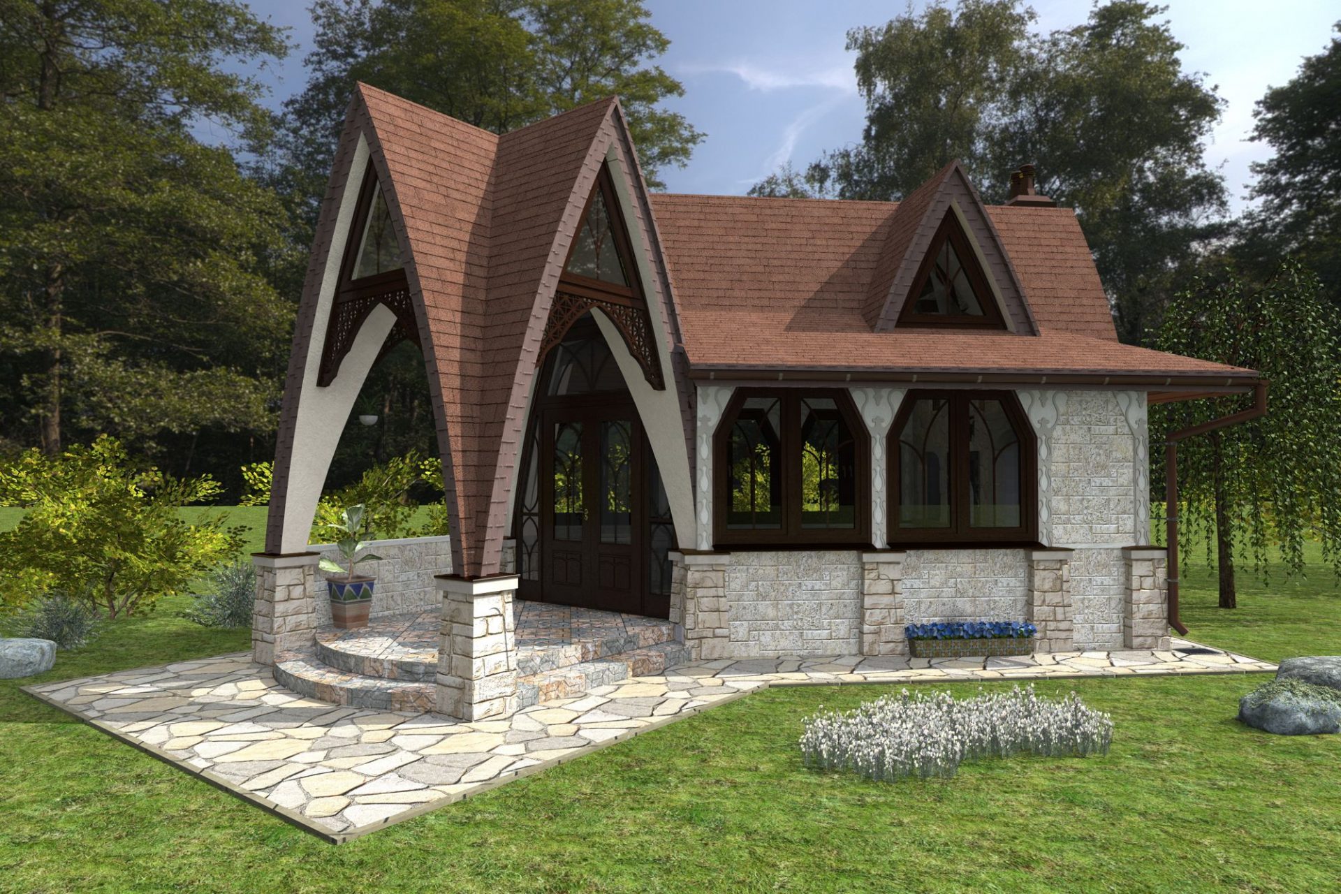 - Pedra natural. Não parece tão interessante quanto o tile, mas é muito bonito à sua maneira. Se você vai fazer uma área aberta, cercada por áreas verdes ou com um toldo de plantas trepadeiras, então a pedra natural será combinada com as melhores. Pode servir pelo menos cem anos, mas pesado e caro.