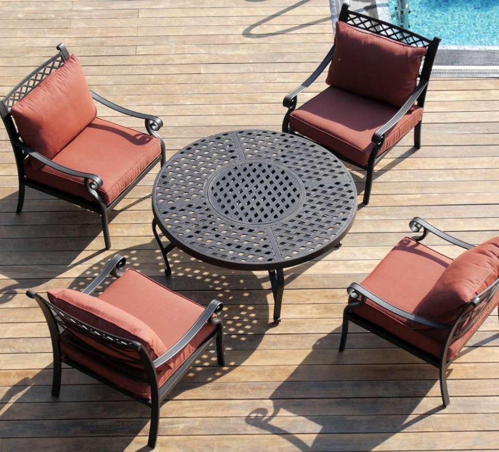 - Sala de jantar. Tabela e cadeiras ao redor - nada mais é necessário. No inverno, mais uma vez, eles podem ser levados para a sala, e o frio e a chuva não os prejudicarão se você escolher bem o material.