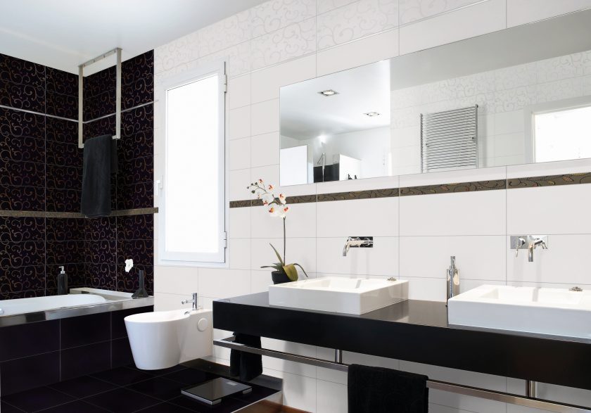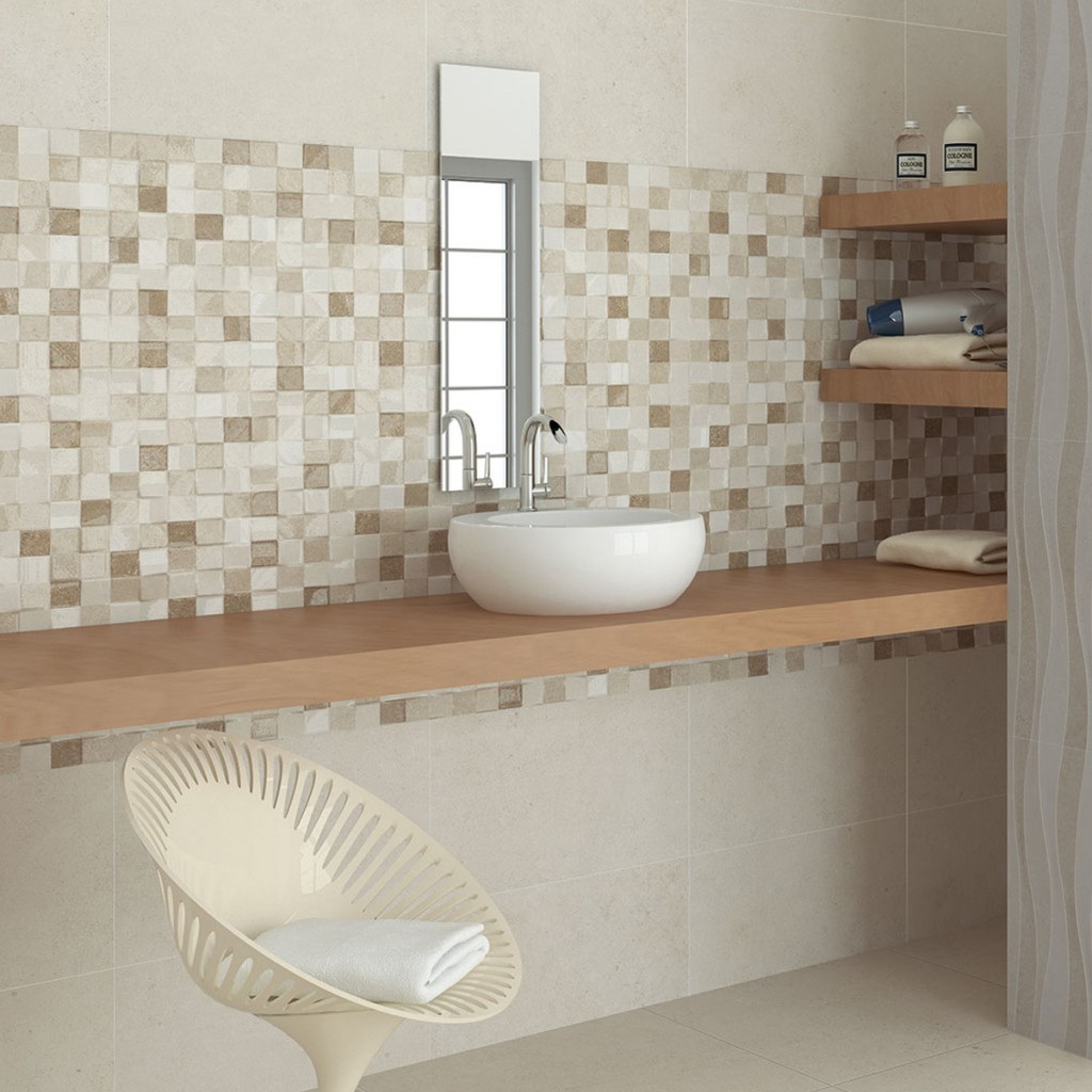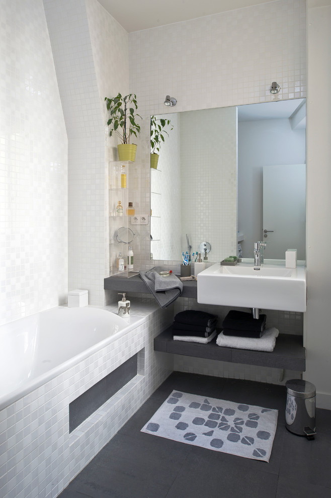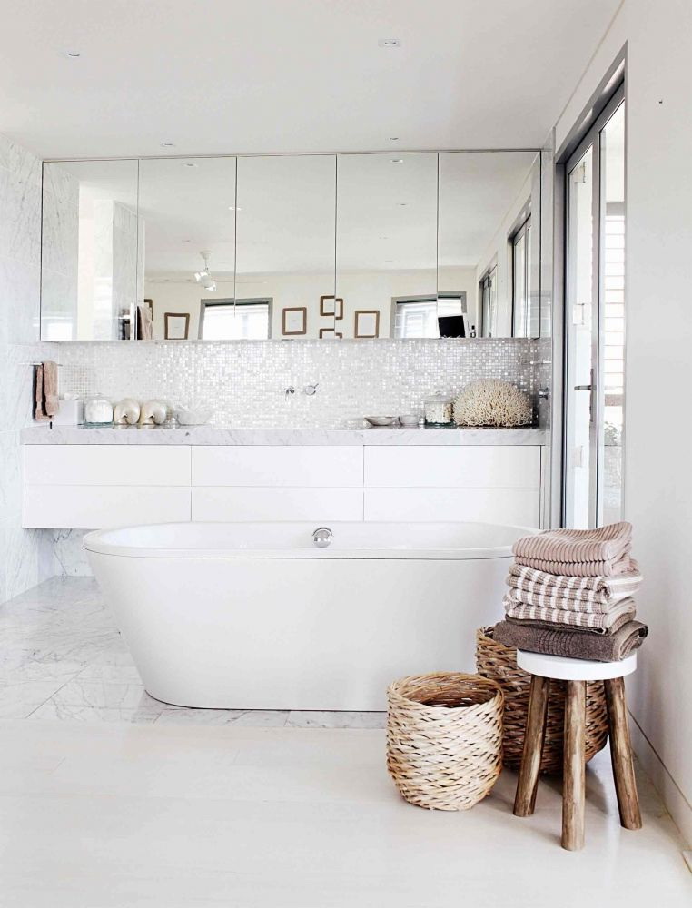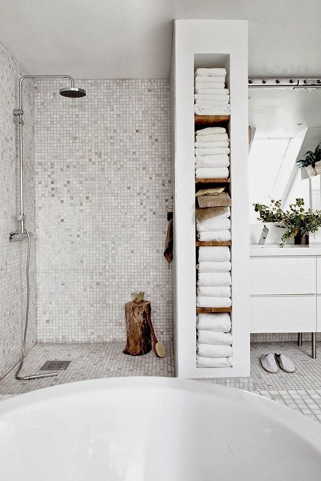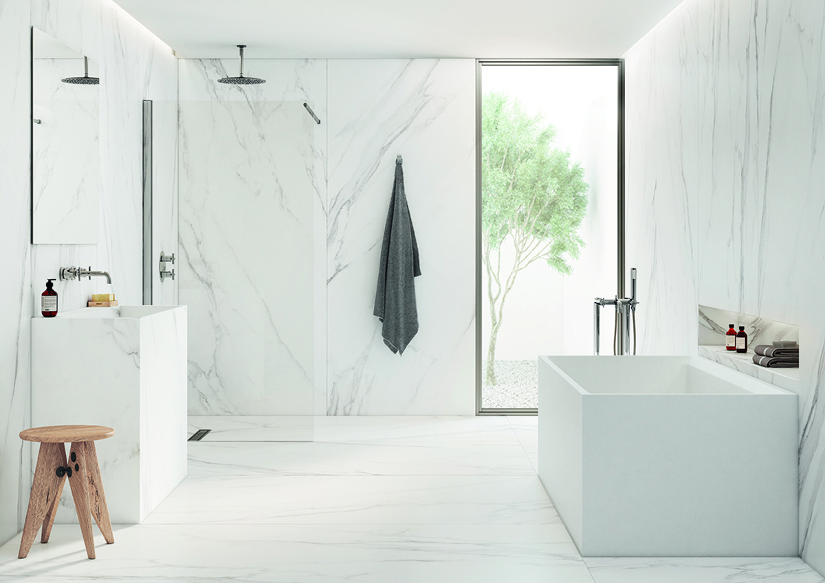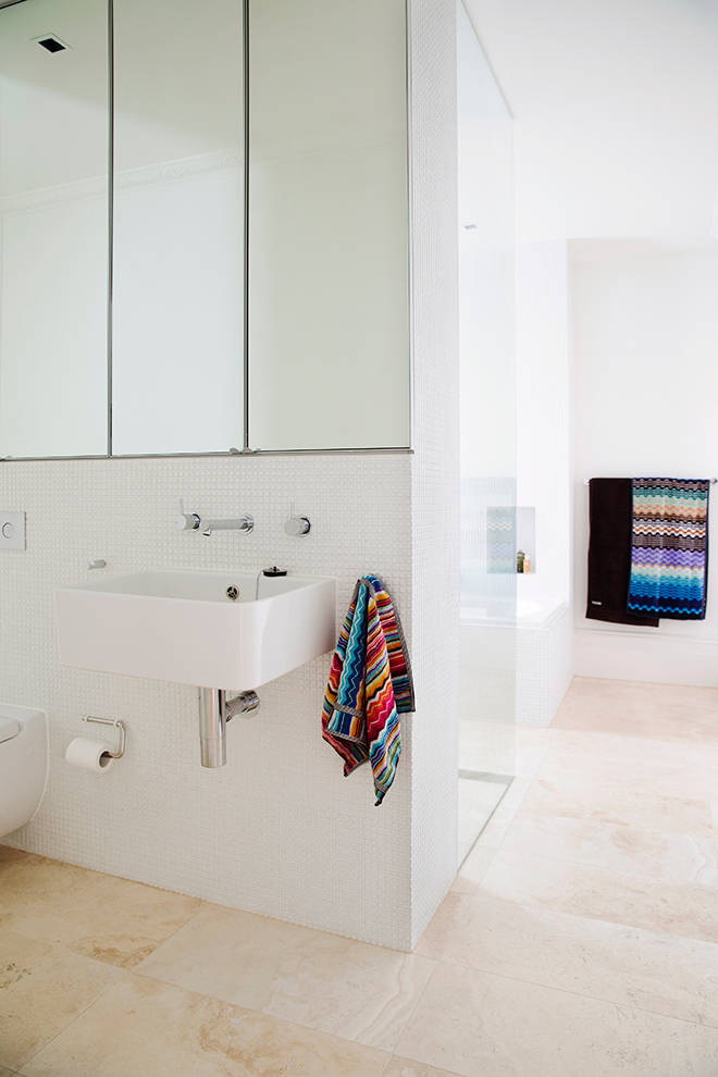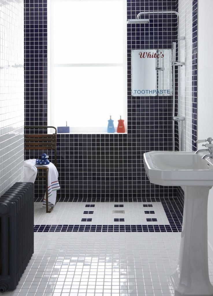 Quando se utiliza apenas branco de neve no desenho de uma casa de banho, pode criar-se uma atmosfera fria. Para evitar isso, é possível folhear telhas com uma ligeira areia ou outro tom.