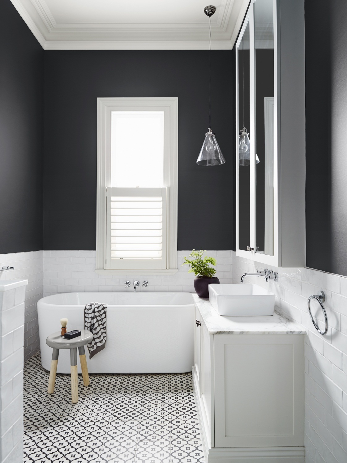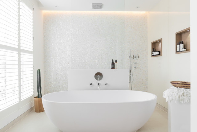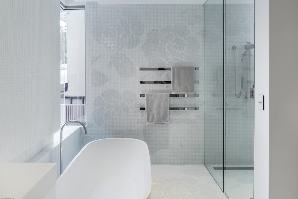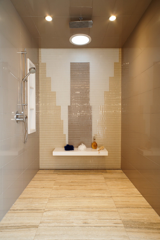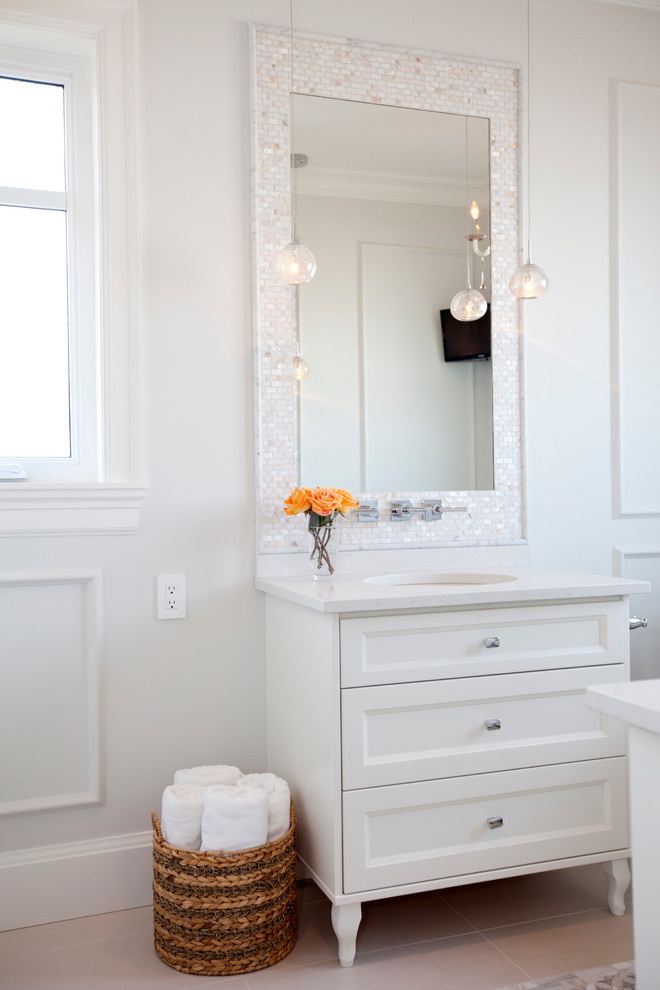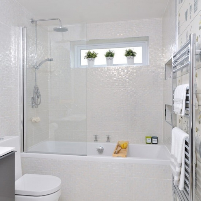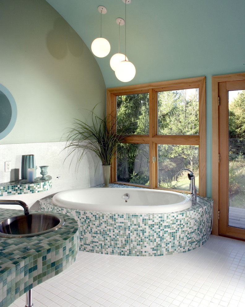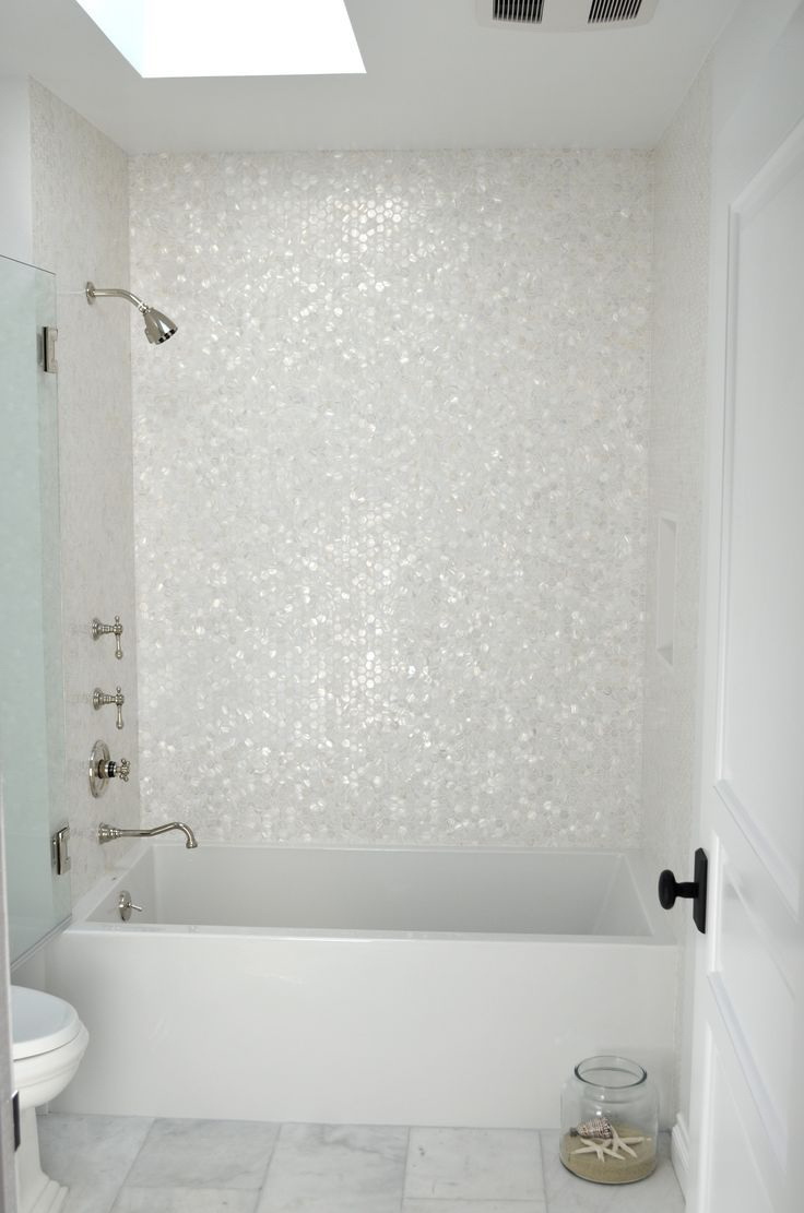 Quando se utiliza apenas branco de neve no desenho de uma casa de banho, pode criar-se uma atmosfera fria. Para evitar isso, é possível folhear telhas com uma ligeira areia ou outro tom.