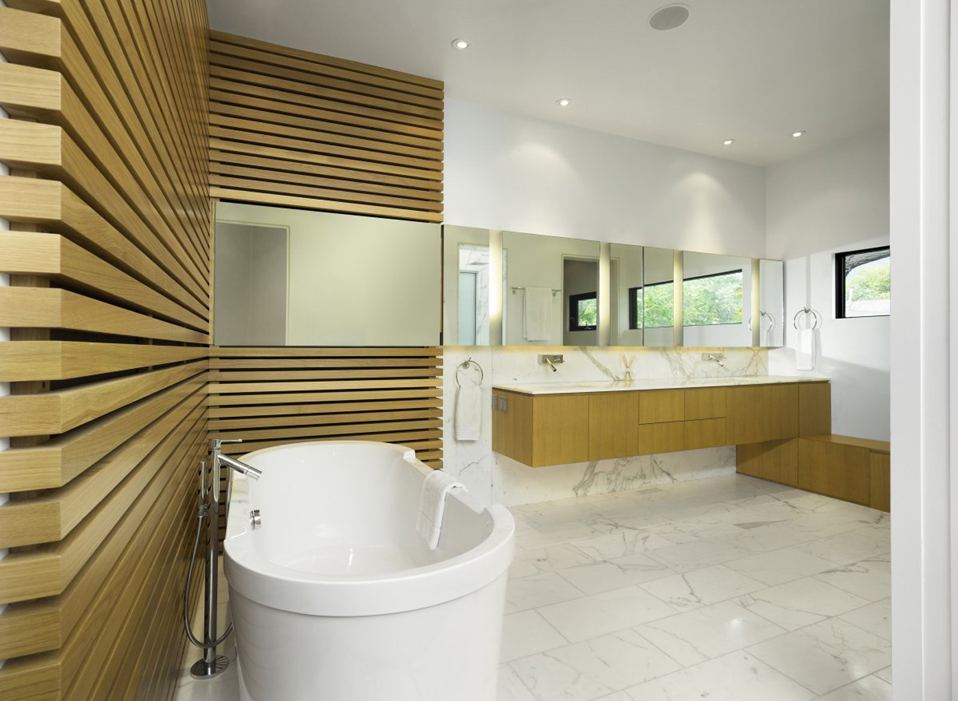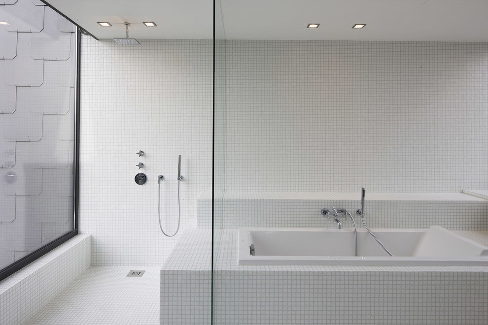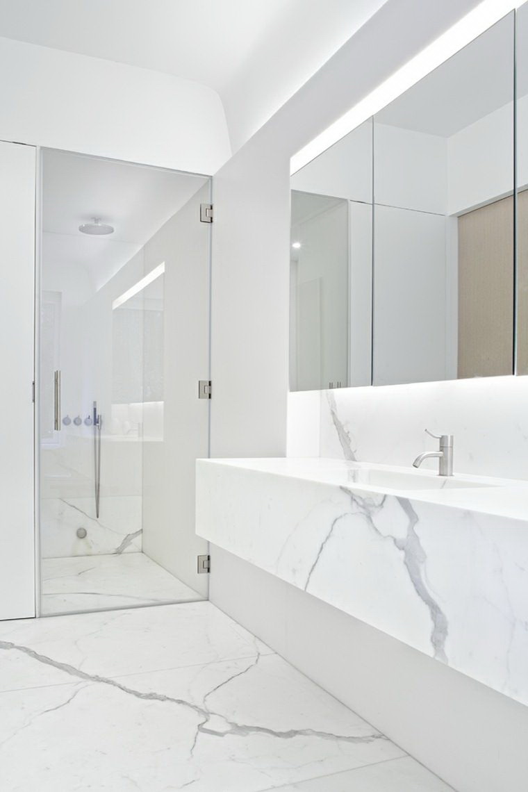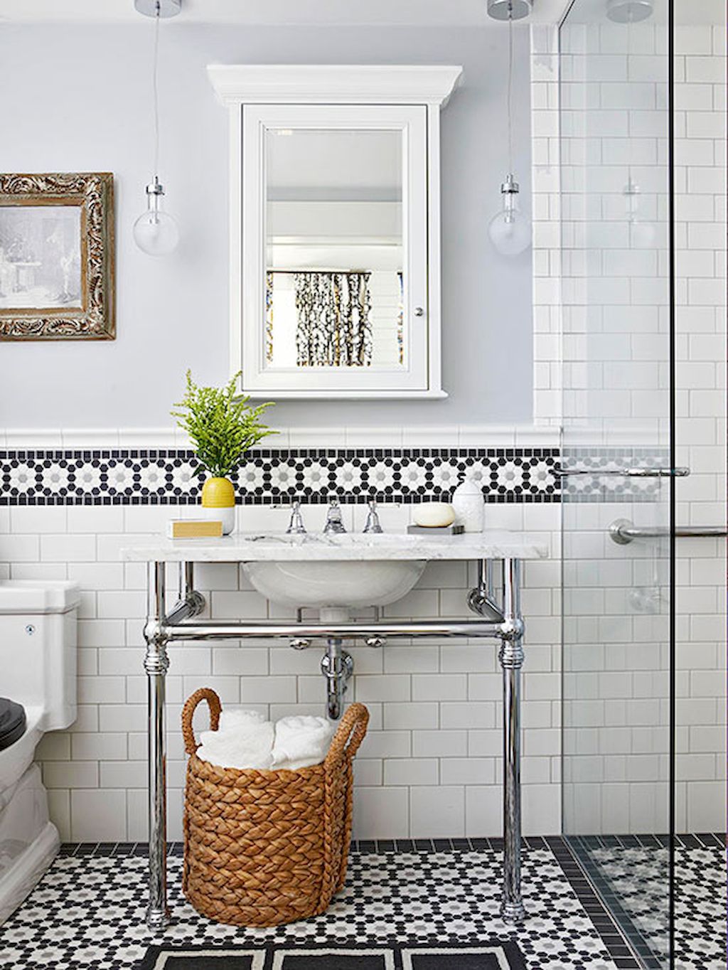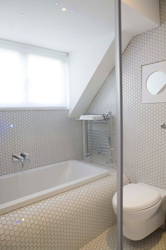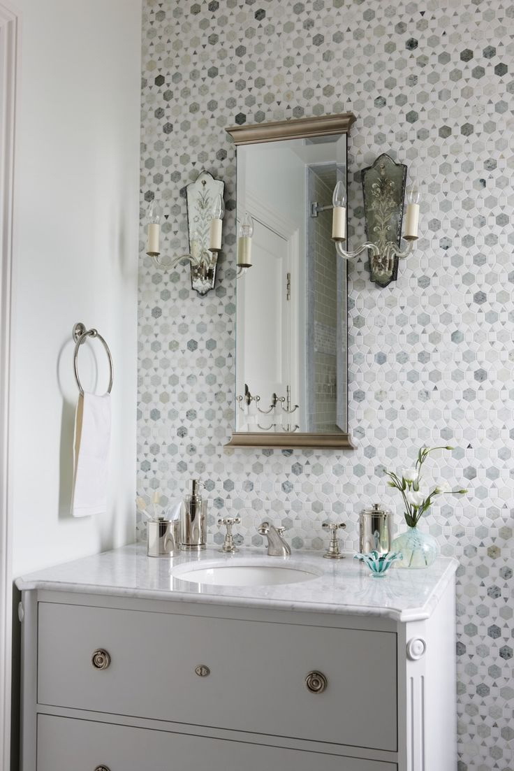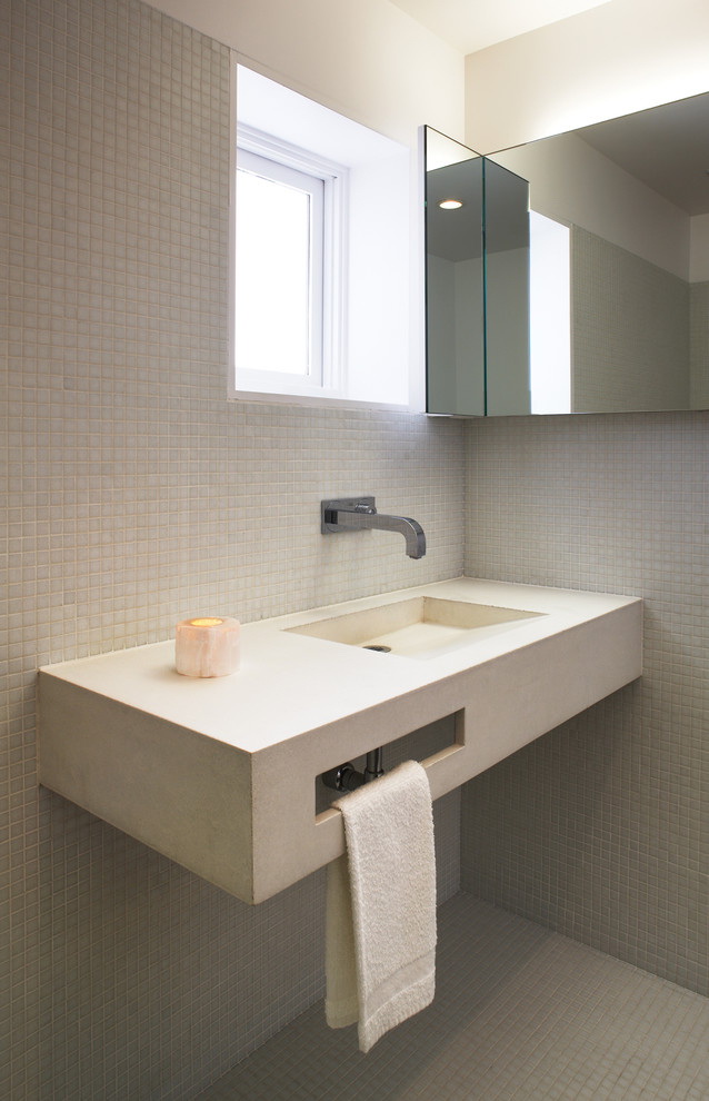 Quando se utiliza apenas branco de neve no desenho de uma casa de banho, pode criar-se uma atmosfera fria. Para evitar isso, é possível folhear telhas com uma ligeira areia ou outro tom.