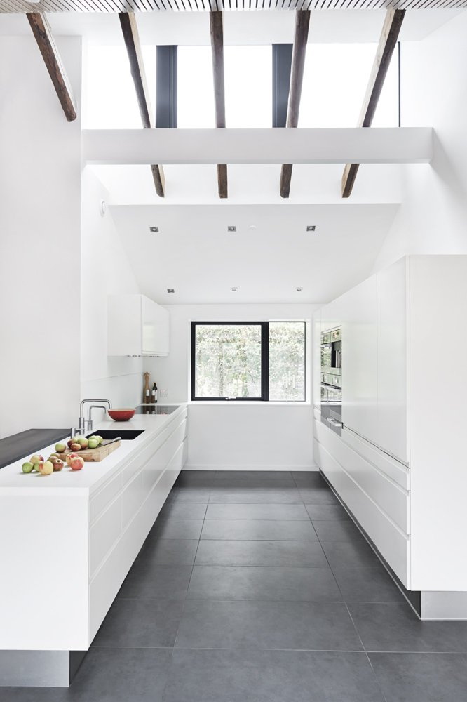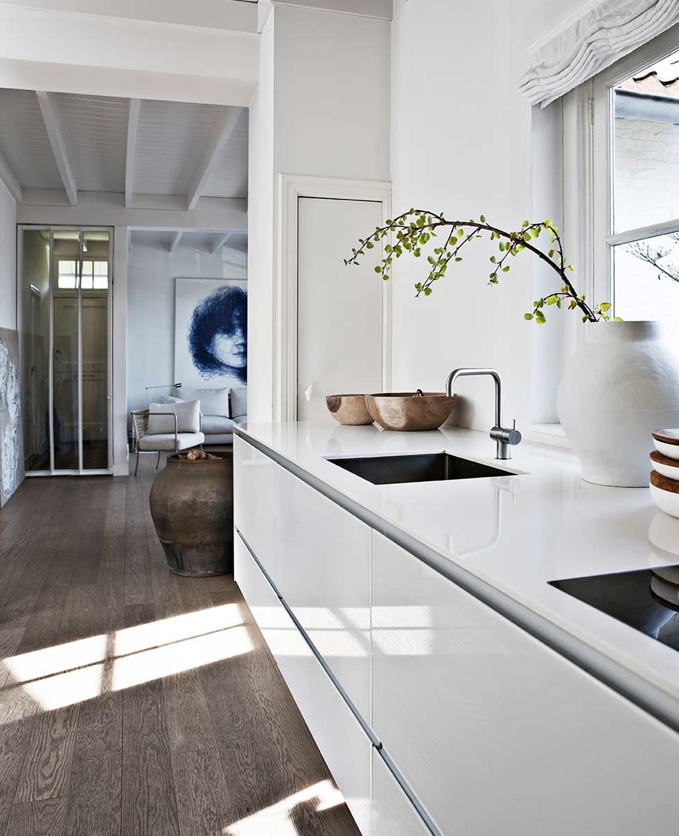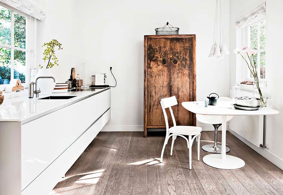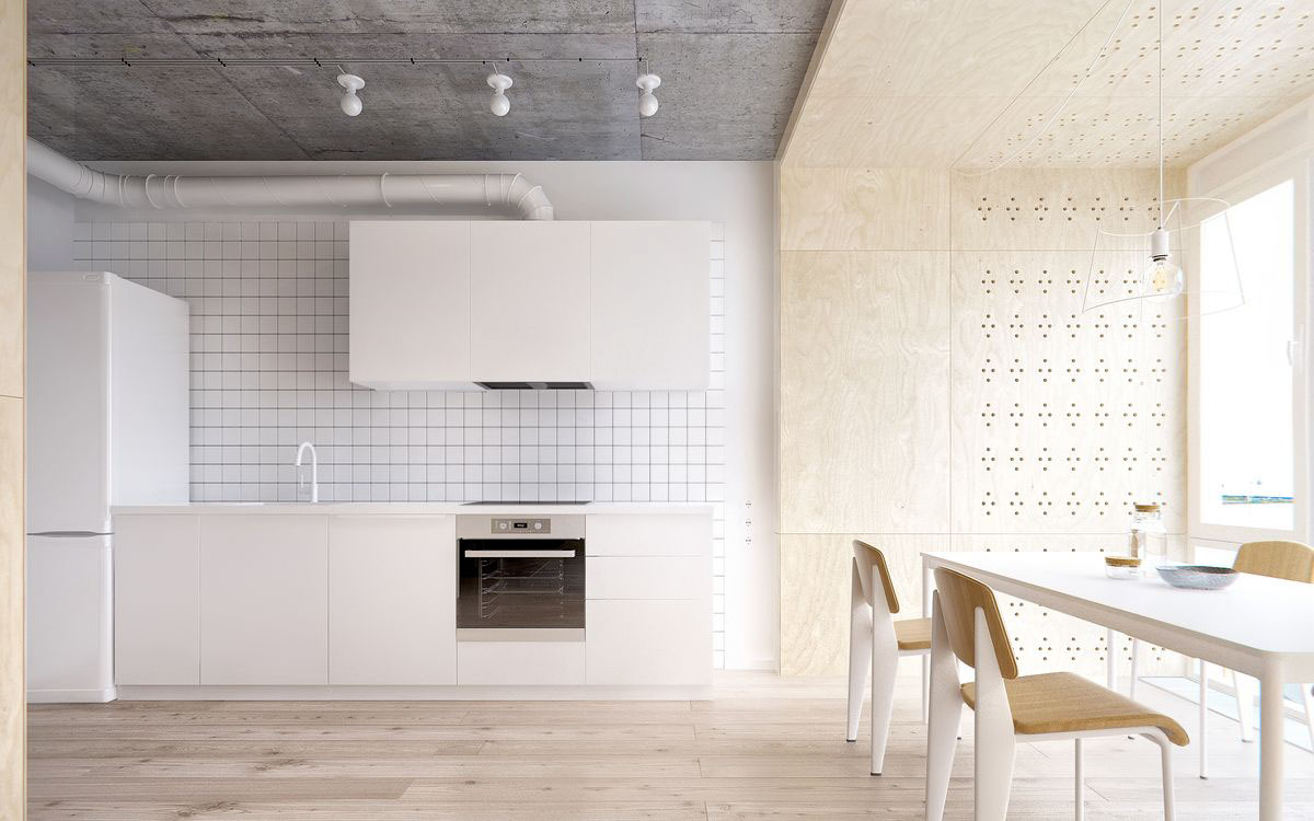 Na cozinha, o conforto pode ser adicionado com elementos têxteis, a cor das frentes de móveis e tampos de mesa. No banheiro é possível amolecer a sombra branca como a neve: