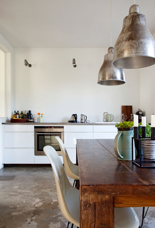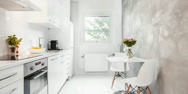 Para que isso não aconteça, usamos uma combinação. Nós combinamos branco com outros tons nas paredes, chão, avental de cozinha.