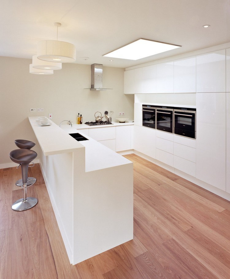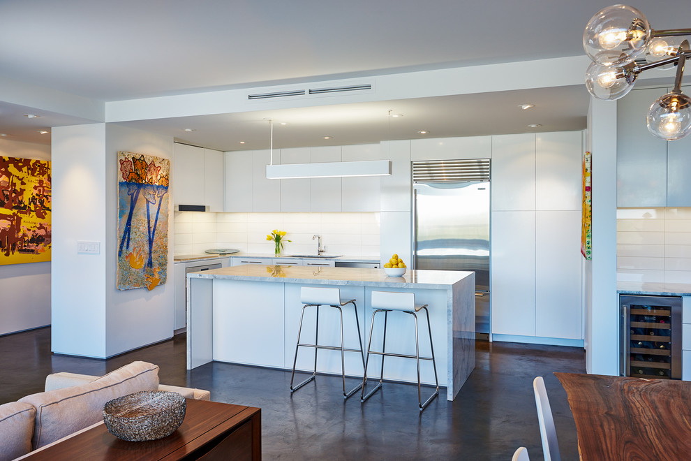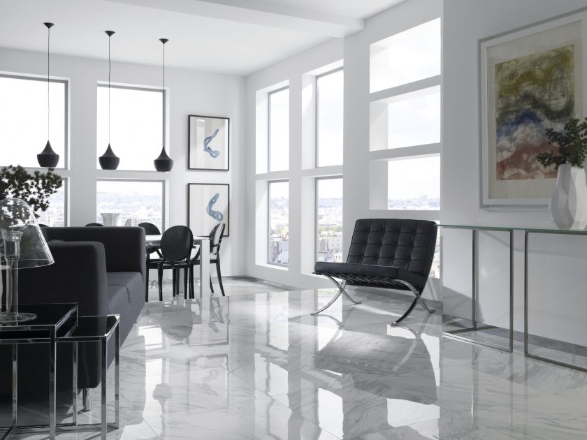 O piso branco acrescenta elegância ao ambiente, torna-o maior e mais interessante. Prós e contras de tal uso: