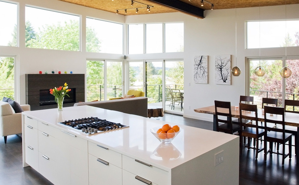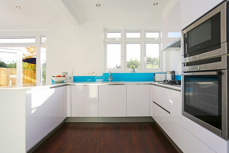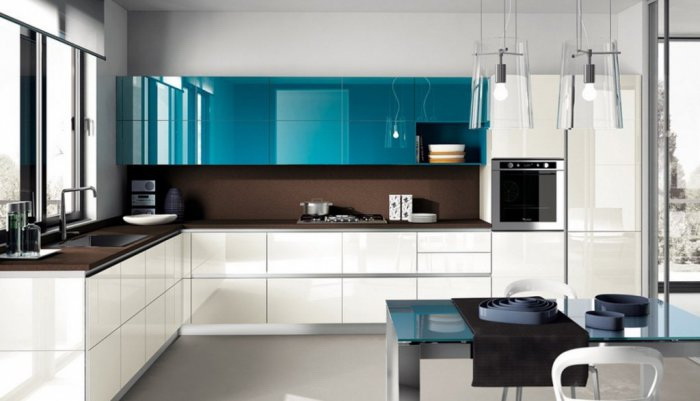 Para o interior da cozinha, a superfície da parede fosca é muitas vezes escolhida em vez de brilho. Ela não é tão inteligente, mas ajuda a criar uma atmosfera de paz e pacificação.Em combinação com mobiliário elegante, a superfície branca mate do avental ficará elegante e moderna.