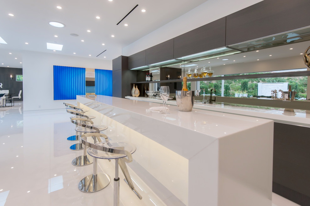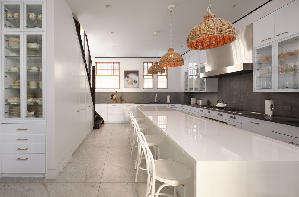Argamassa brilhante pode ser uma decisão de design incomum. E o interior branco está mudando diante de nossos olhos.