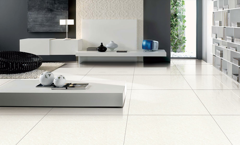 Branca de Neve é a melhor solução. Em um fundo limpo e brilhante, vestígios de salpicos e pingos de água são quase invisíveis. A cor branca no chão cria uma sensação de conforto e limpeza.