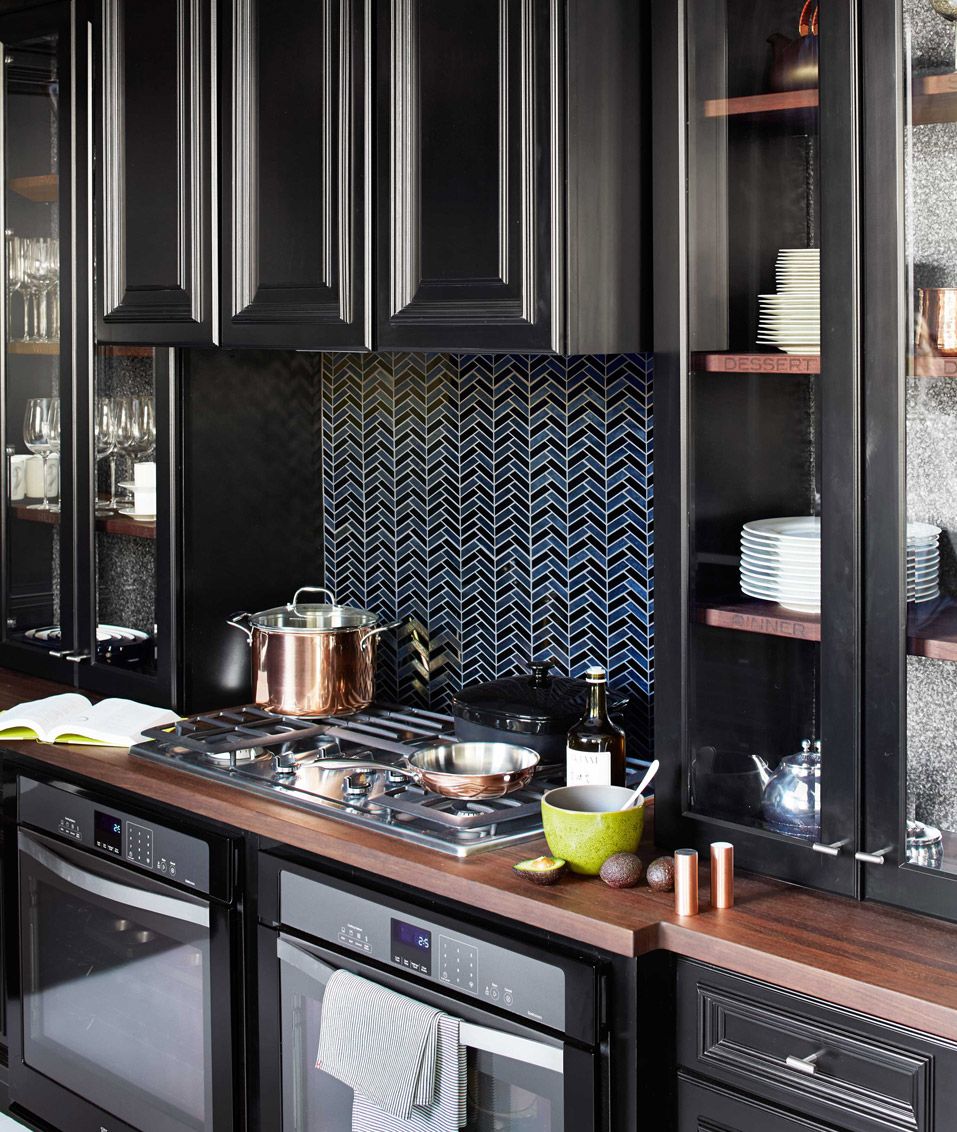 Se você está instalando armários de cozinha novos ou atualizando a aparência dos existentes, você pode considerar uma escolha ousada de estilo: armários de cozinha pretos. Como a maioria das cozinhas geralmente tem cores mais claras, esses gabinetes podem fornecer um contraste atraente e brilhante.