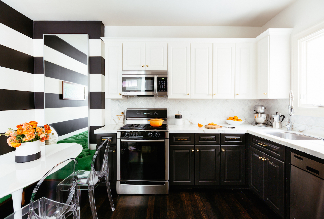 Todos nós temos necessidade de aparelhos. Da gama popular de refrigeradores para fornos de microondas, aparelhos servem como elementos básicos de cozinha. Mesmo que seus aparelhos sejam antigos ou simplesmente ultrapassados, a cozinha branca com eletrodomésticos pretos é incrível. Também é conveniente que os dispositivos sejam muito fáceis de substituir e não custem muito dinheiro.