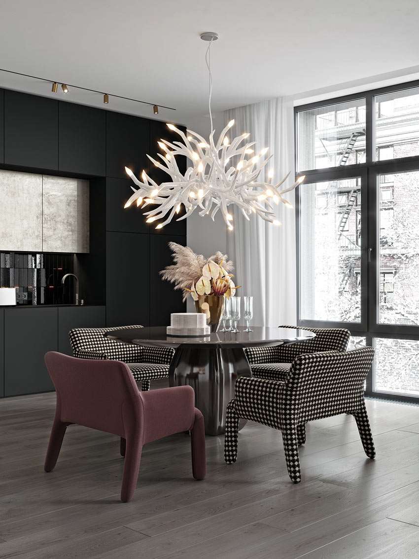 Naturalmente, as cores escuras em diferentes salas grandes e pequenas são percebidas de forma diferente: em algumas, ela pode enfatizar características arquitetônicas, enquanto em outras pode ser deprimente.