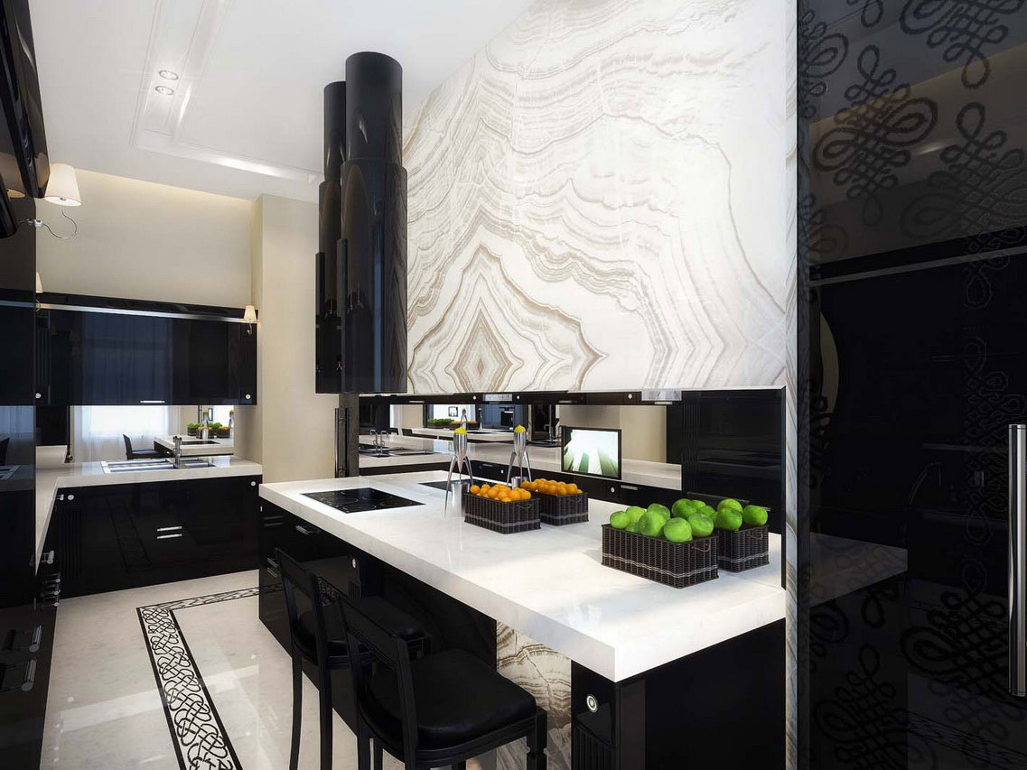 Quer fazer menos mudanças em sua cozinha, ainda querendo ficar na moda? Ver preto e branco mosaico atrás do seu local de trabalho ou afundar. Um avental ou mosaico não é apenas moda, eles vão atrair a atenção de seus convidados, eles farão o acréscimo necessário.