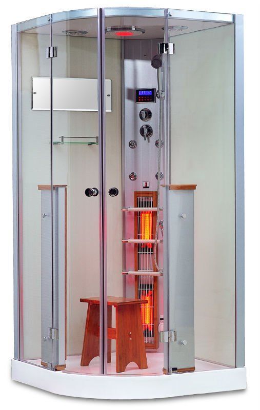 Chuveiros são confortáveis. Água morna neles aquece a panela e as paredes. O estande em si rapidamente se aquece. A hidromassagem é uma função adicional que cura e revigora o corpo. Acontece e o assento, você pode se sentar. O design dos estandes é diferente e bonito.