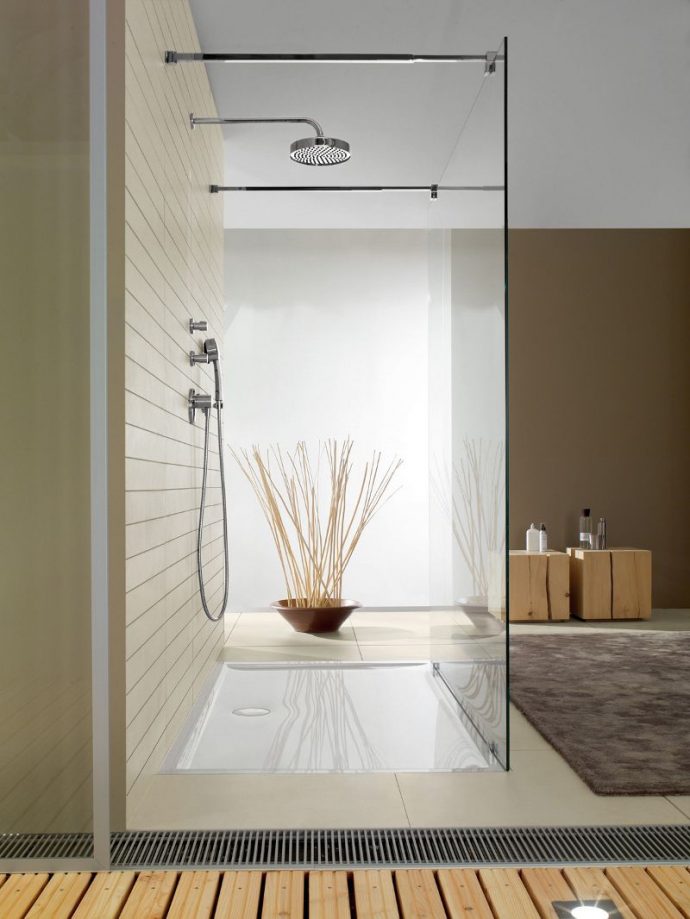 A principal vantagem de chuveiros abertos - eles fornecem uma oportunidade para economizar significativamente espaço utilizável.