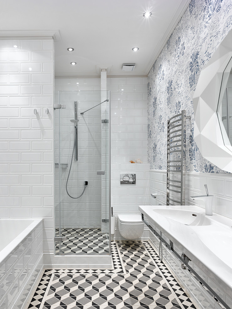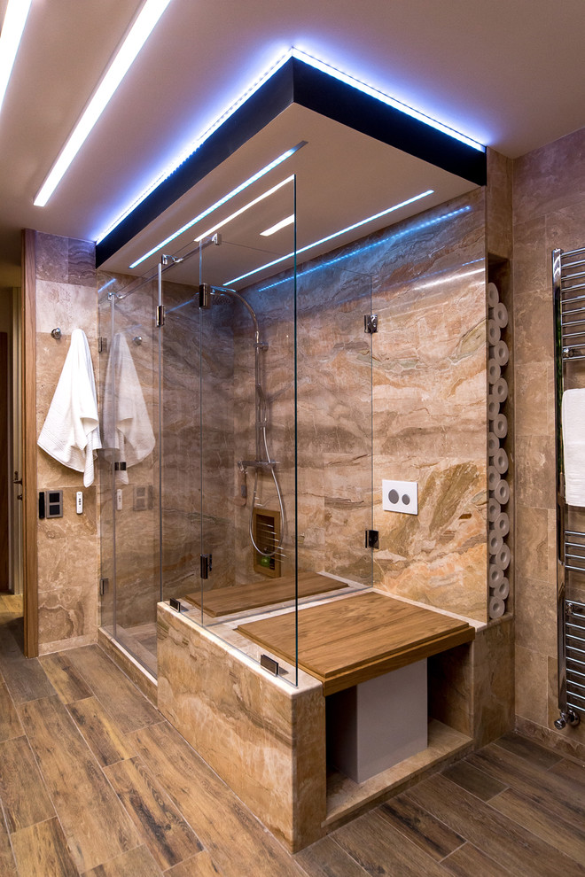 Consequentemente, dependendo do design e tamanho do banheiro, você pode escolher sua própria versão. Este projeto tem muitas outras vantagens inegáveis: