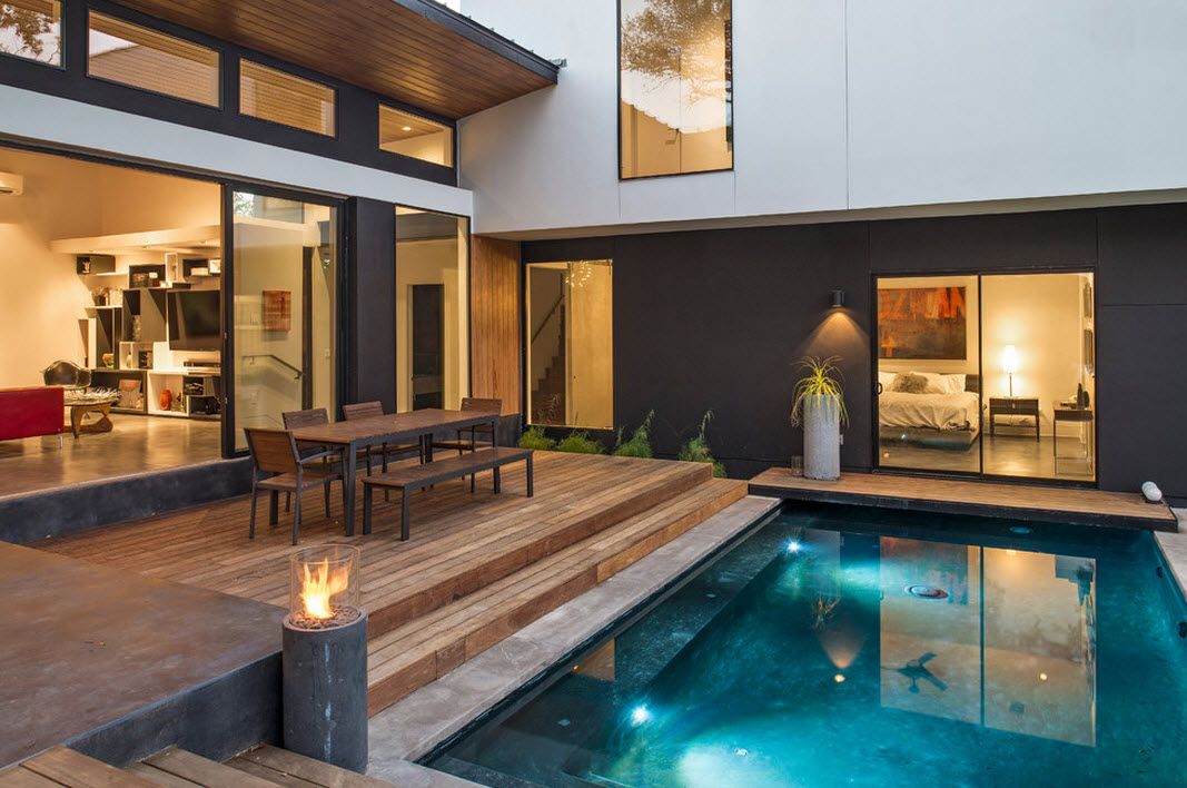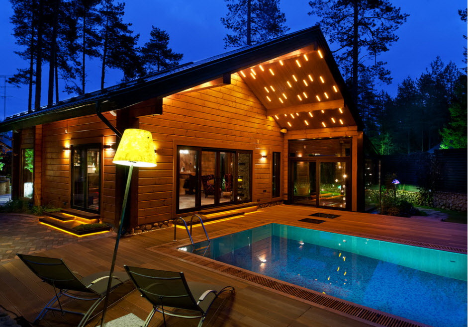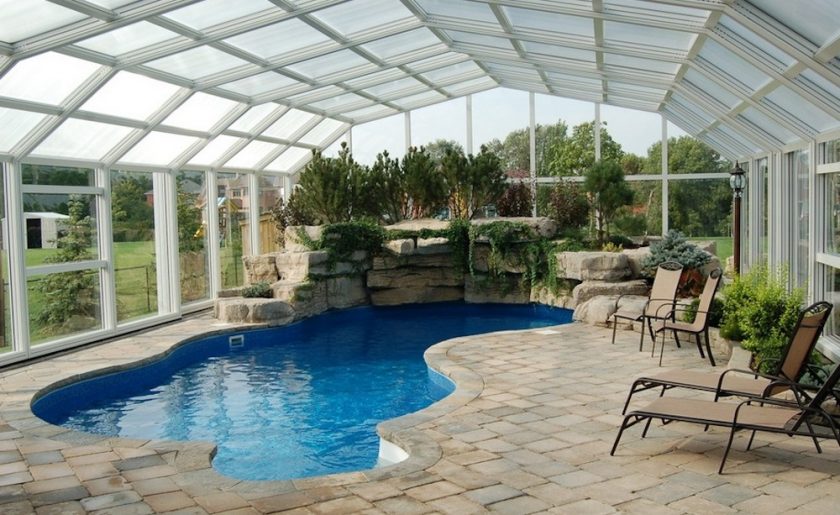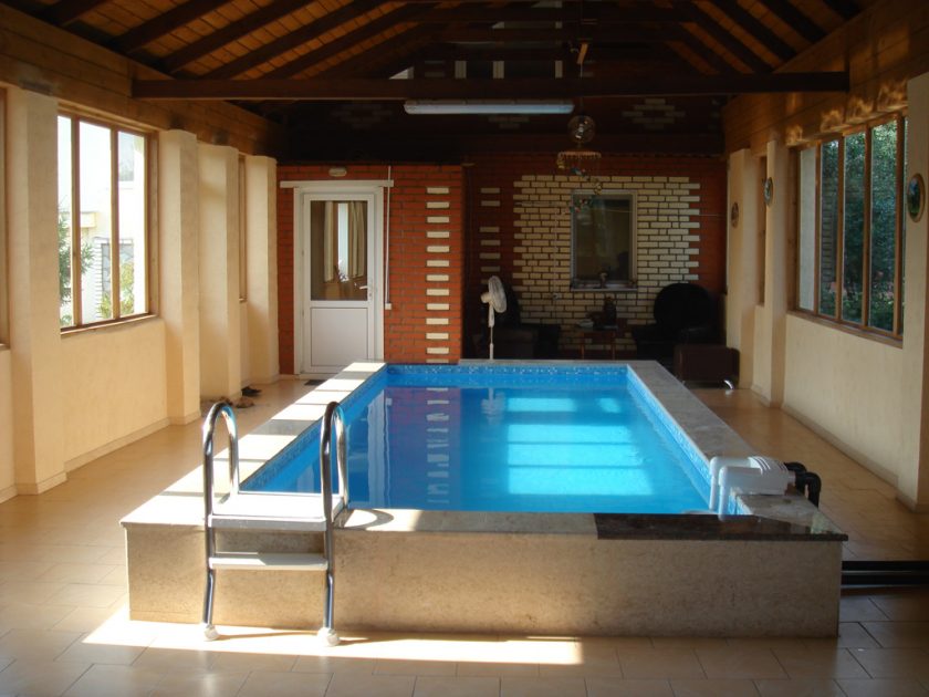 A piscina coberta na casa de campo tem muitas vantagens em relação ao exterior. O principal é que você pode nadar em qualquer época do ano. Para fazer isso, ele deve estar equipado com um sistema de aquecimento e ar condicionado. A lagoa artificial coberta é higiênica - não haverá pó, precipitação, folhas secas, outros objetos estranhos. É possível mudar a água com menos frequência.