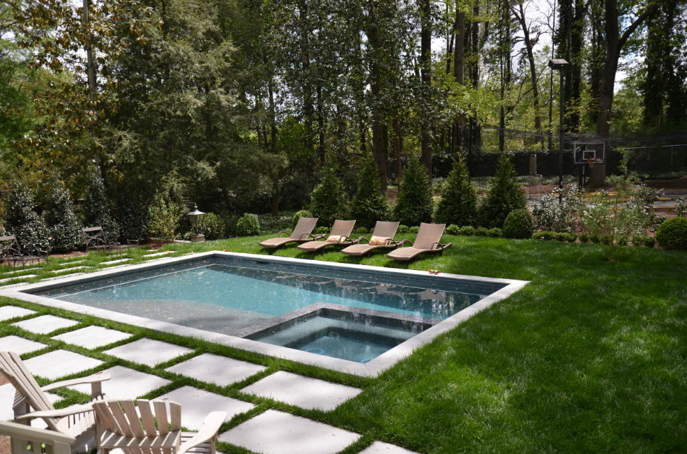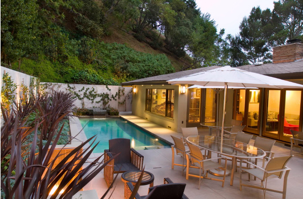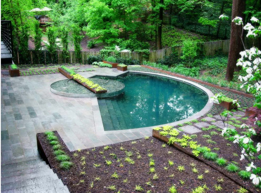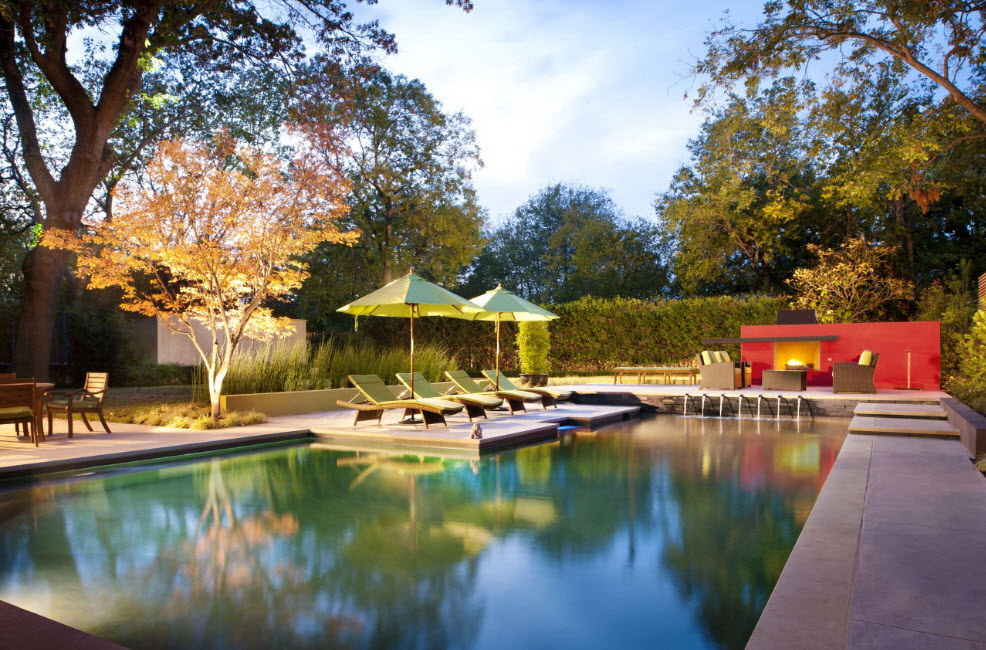 Se a área suburbana tiver uma inclinação, é melhor instalar a piscina no seu ponto mais alto. Localização não deve estar nas proximidades de árvores e arbustos.
